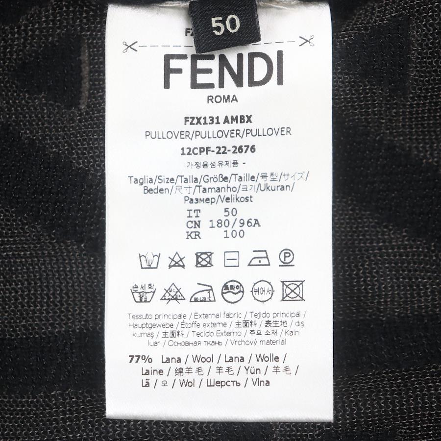 Unused FENDI x MARC JACOBS 2022 crew neck knit sweater (FZX131), 77% wool with an all-over logo print, brown and black, size 50, made in Italy. Authentic. Men's. [Pre-owned]