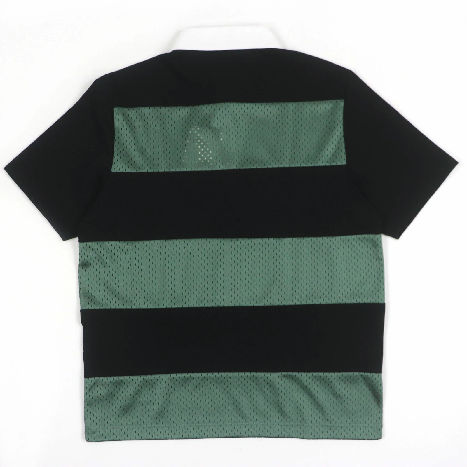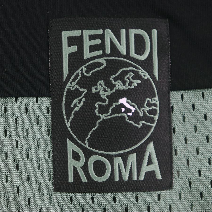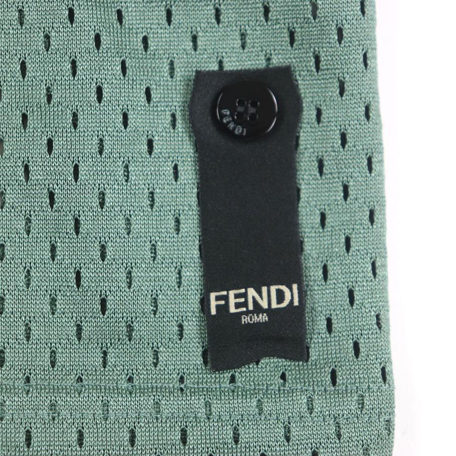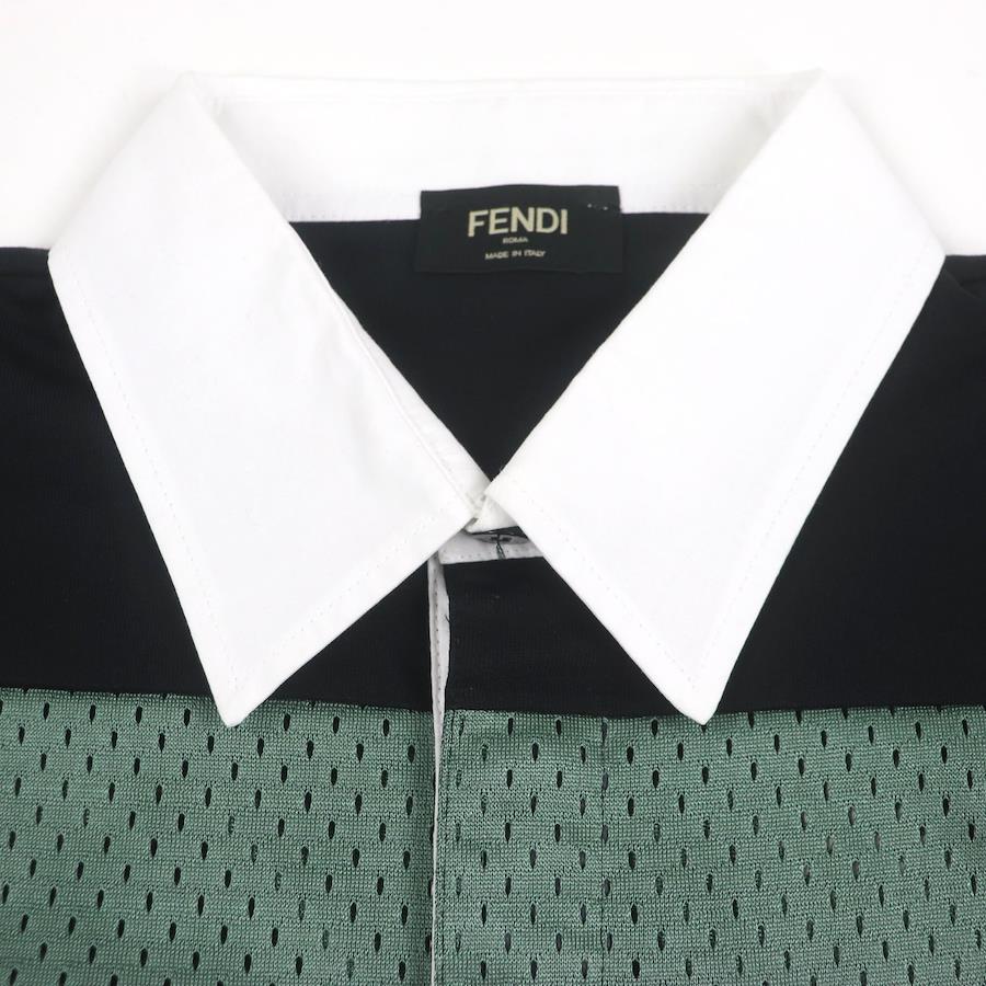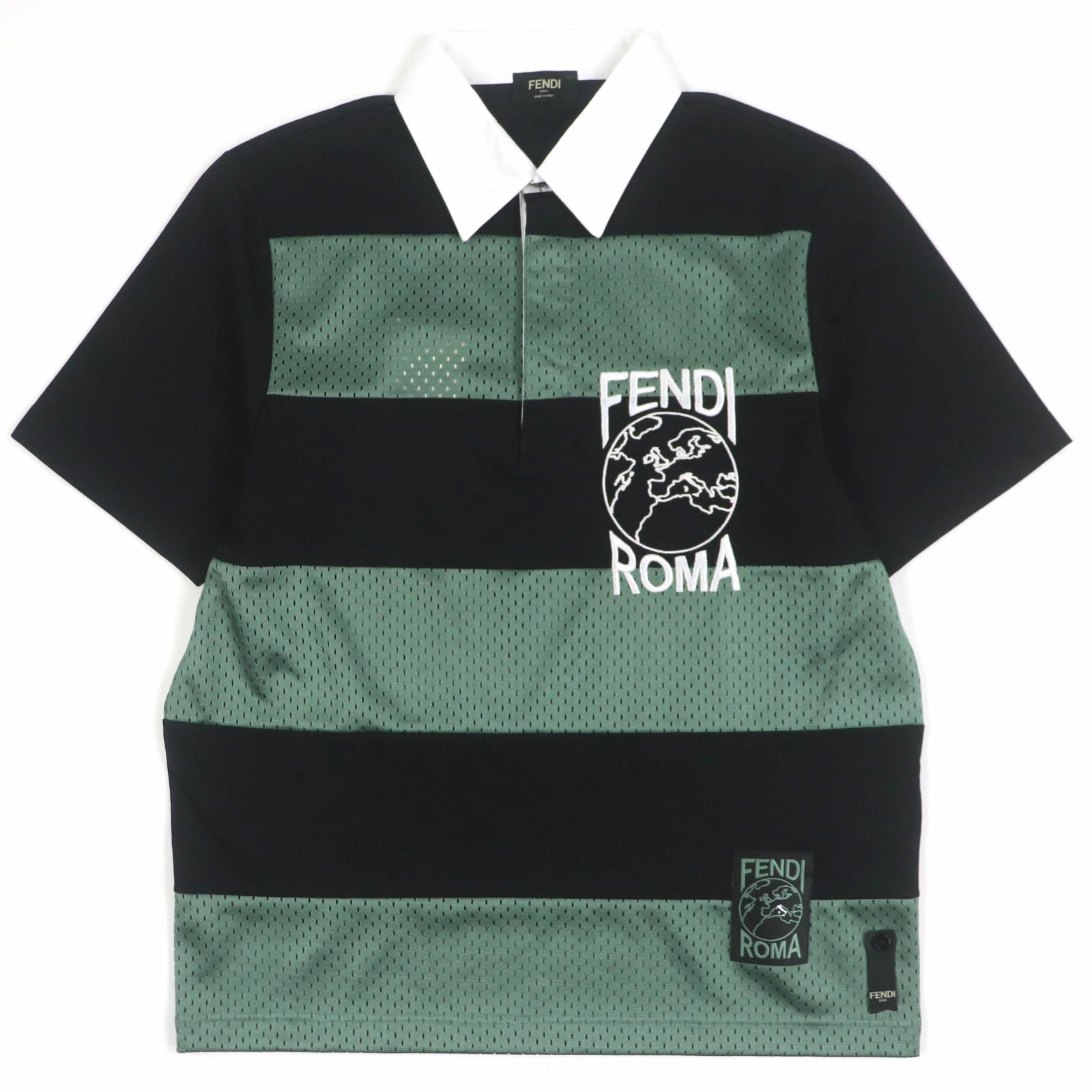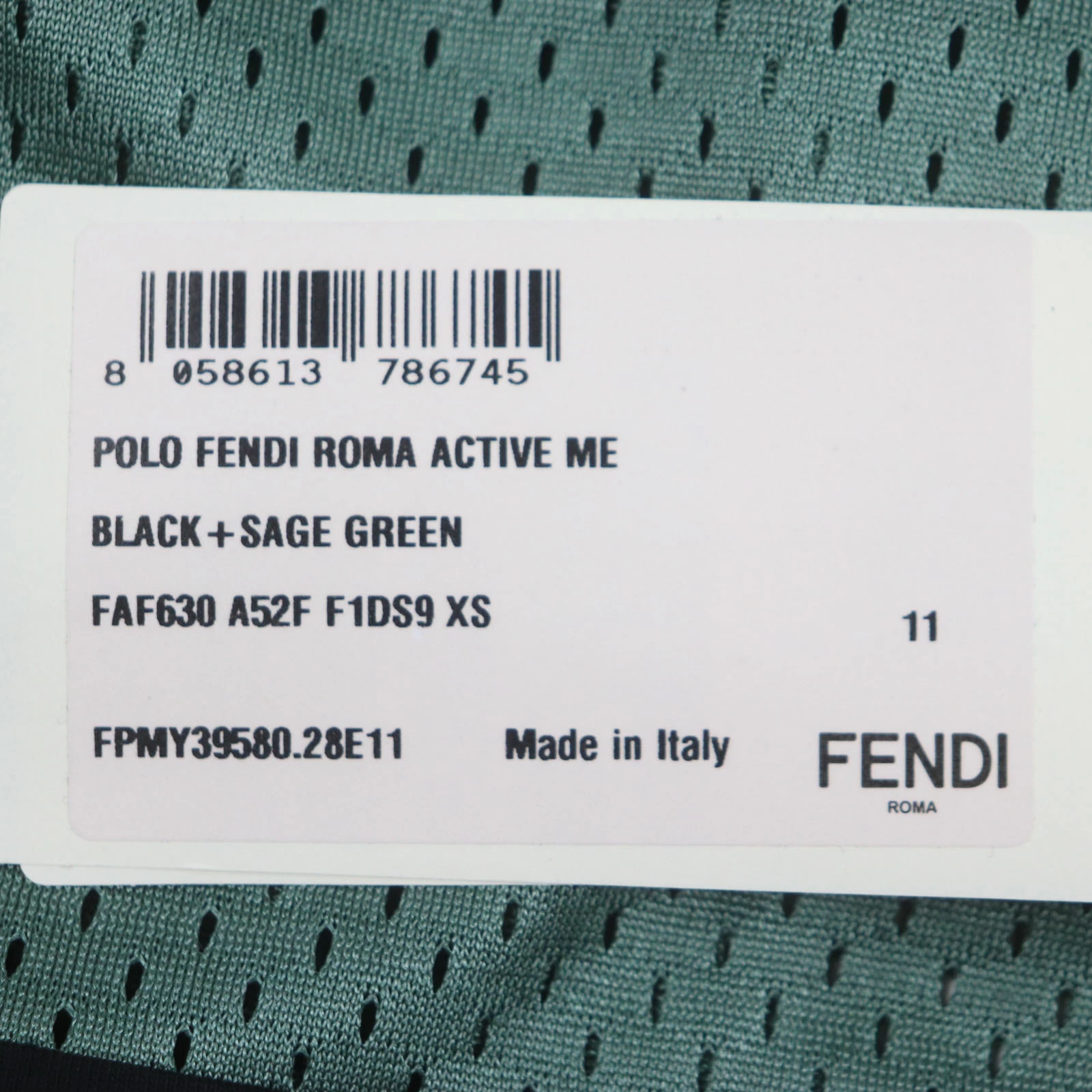 Unused FENDI 2020 FAF630 Striped Logo Embroidered Mesh Short Sleeve Polo Shirt in Green and Black, Size XS, Authentic, Made in Italy, Men's [Pre-owned]