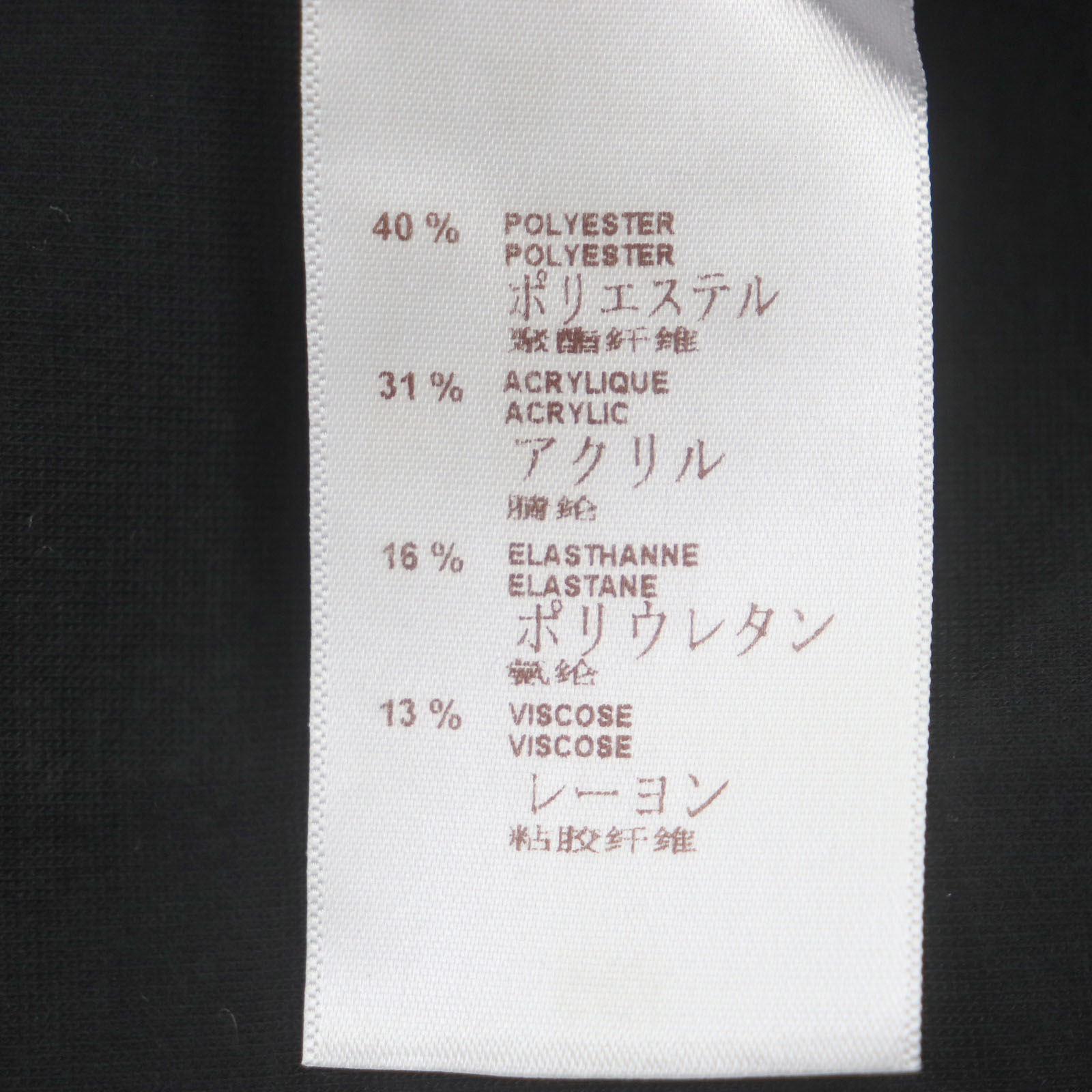 | 素材 (material) | 表地:ポリエステル40% :アクリル31% :ポリウレタン16% :レーヨン13% | ||||||||||||||||