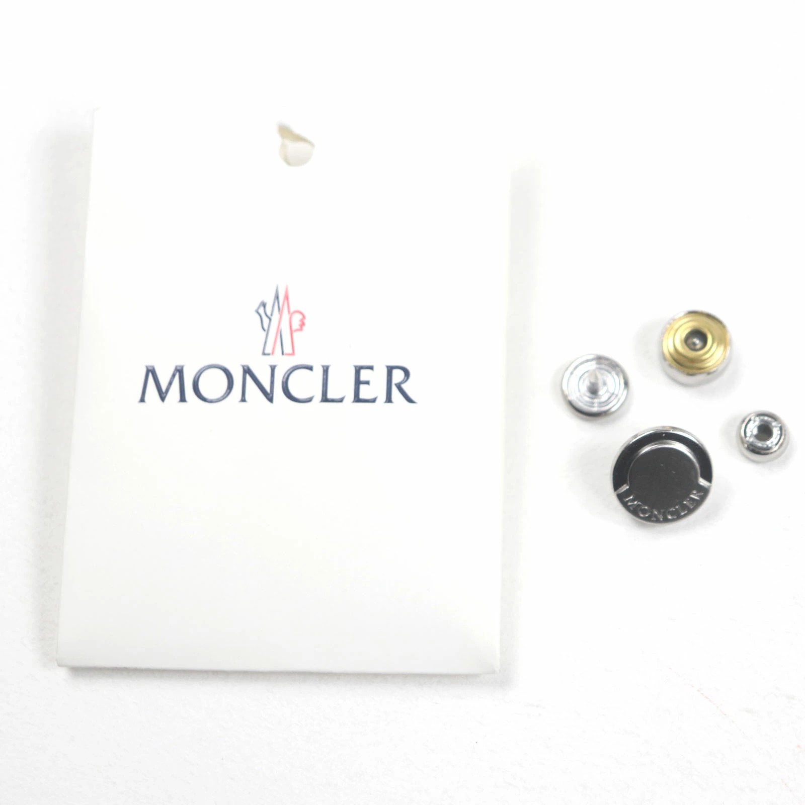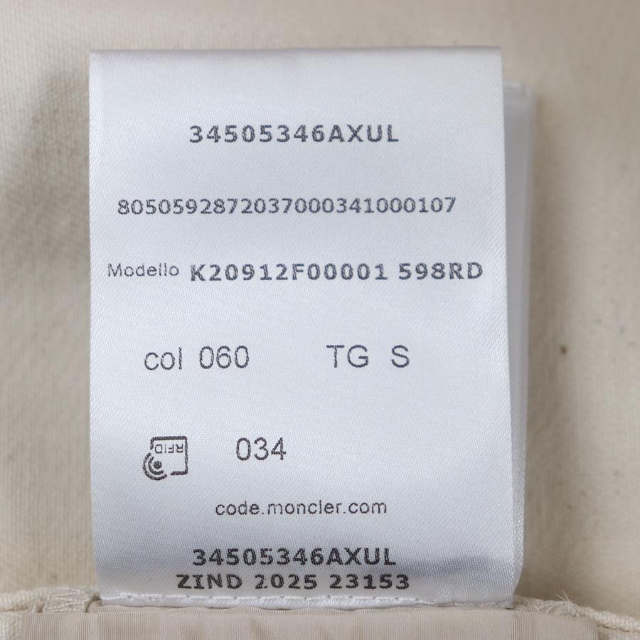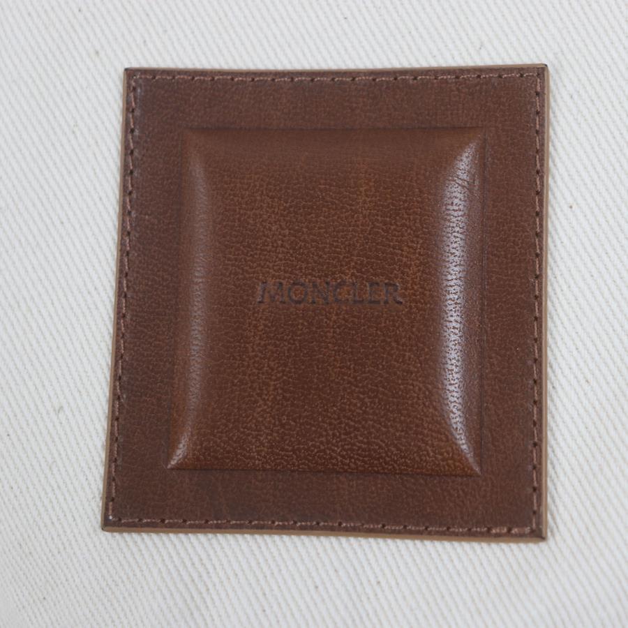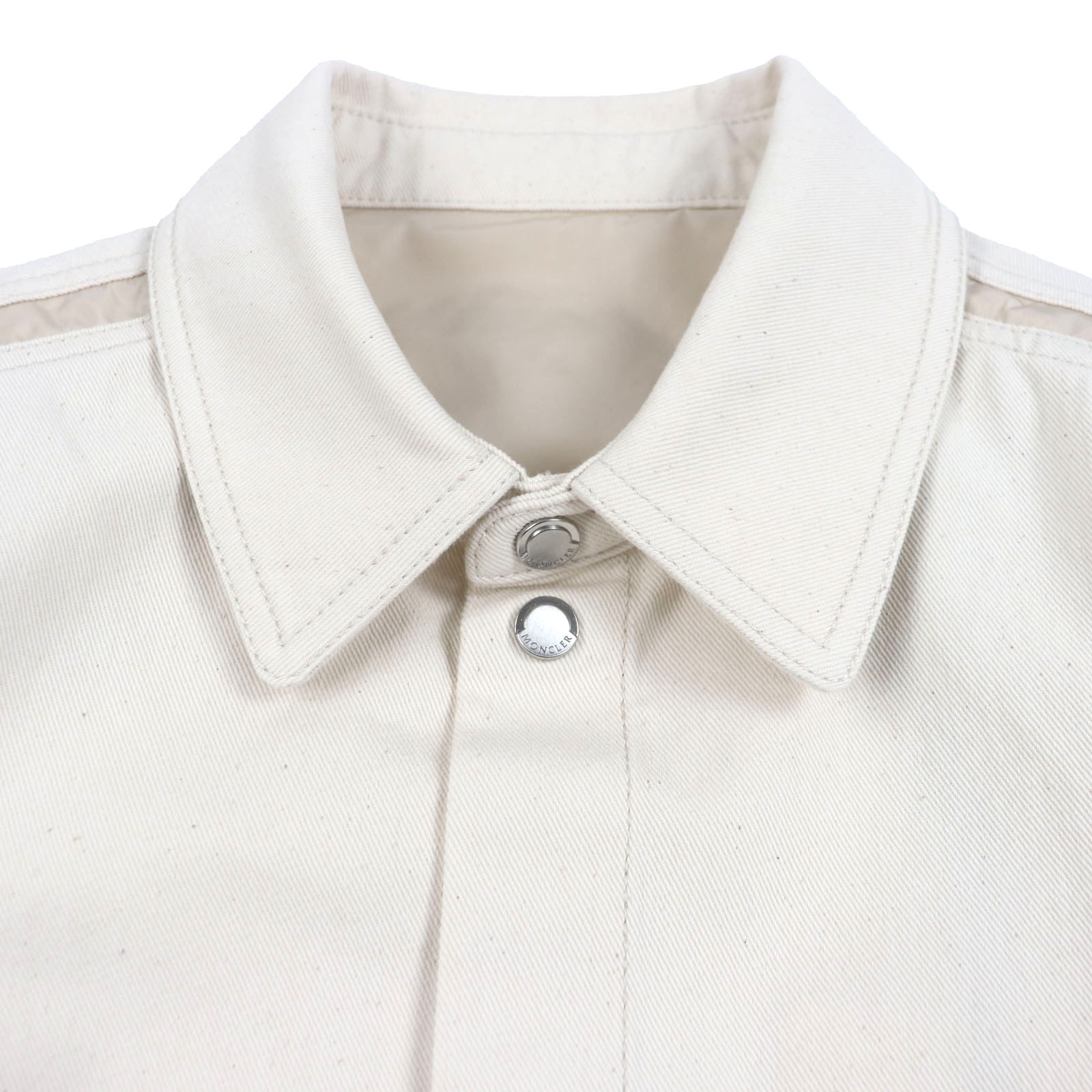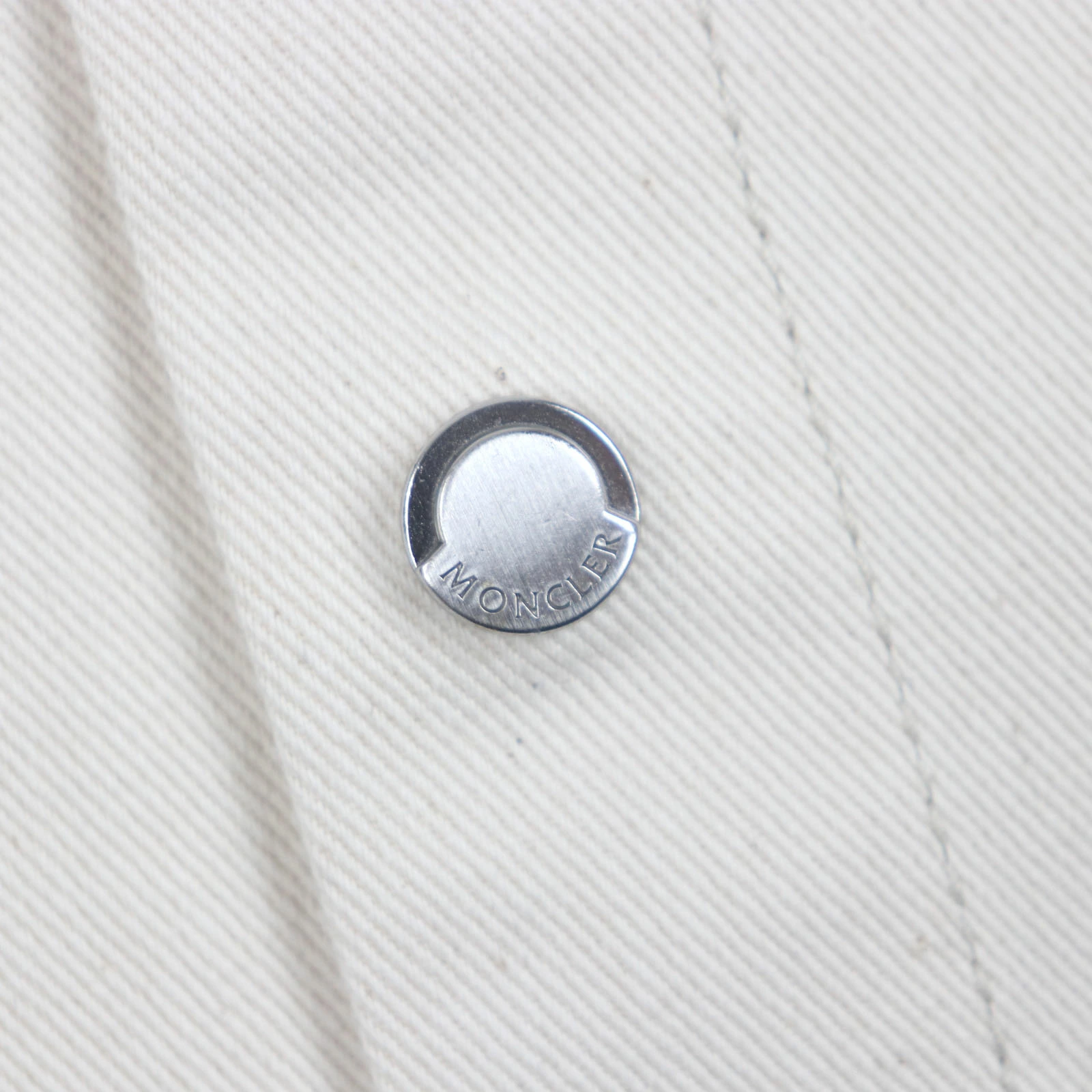 Unused MONCLER CAMICIA (2025) 100% cotton denim long-sleeve shirt with patch and leather patch, logo buttons, ivory, size S, authentic, made in Italy, men's.