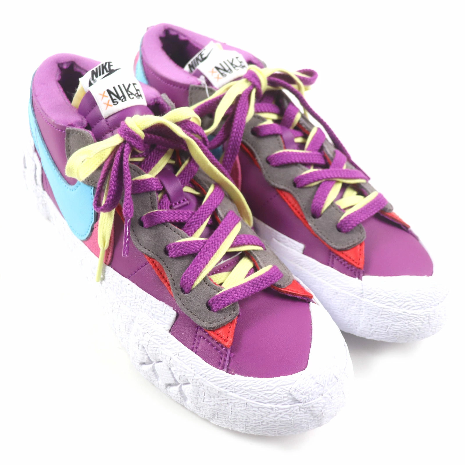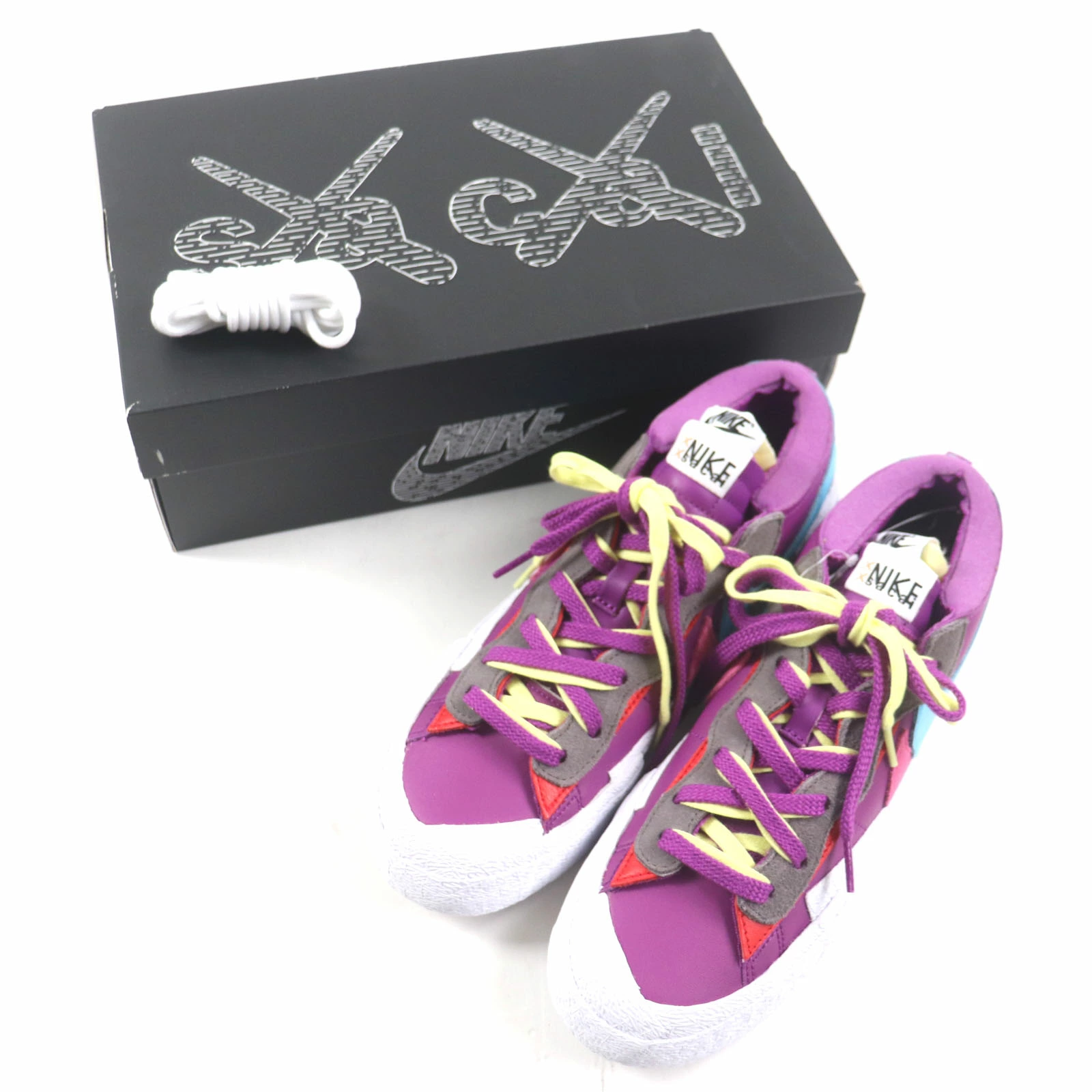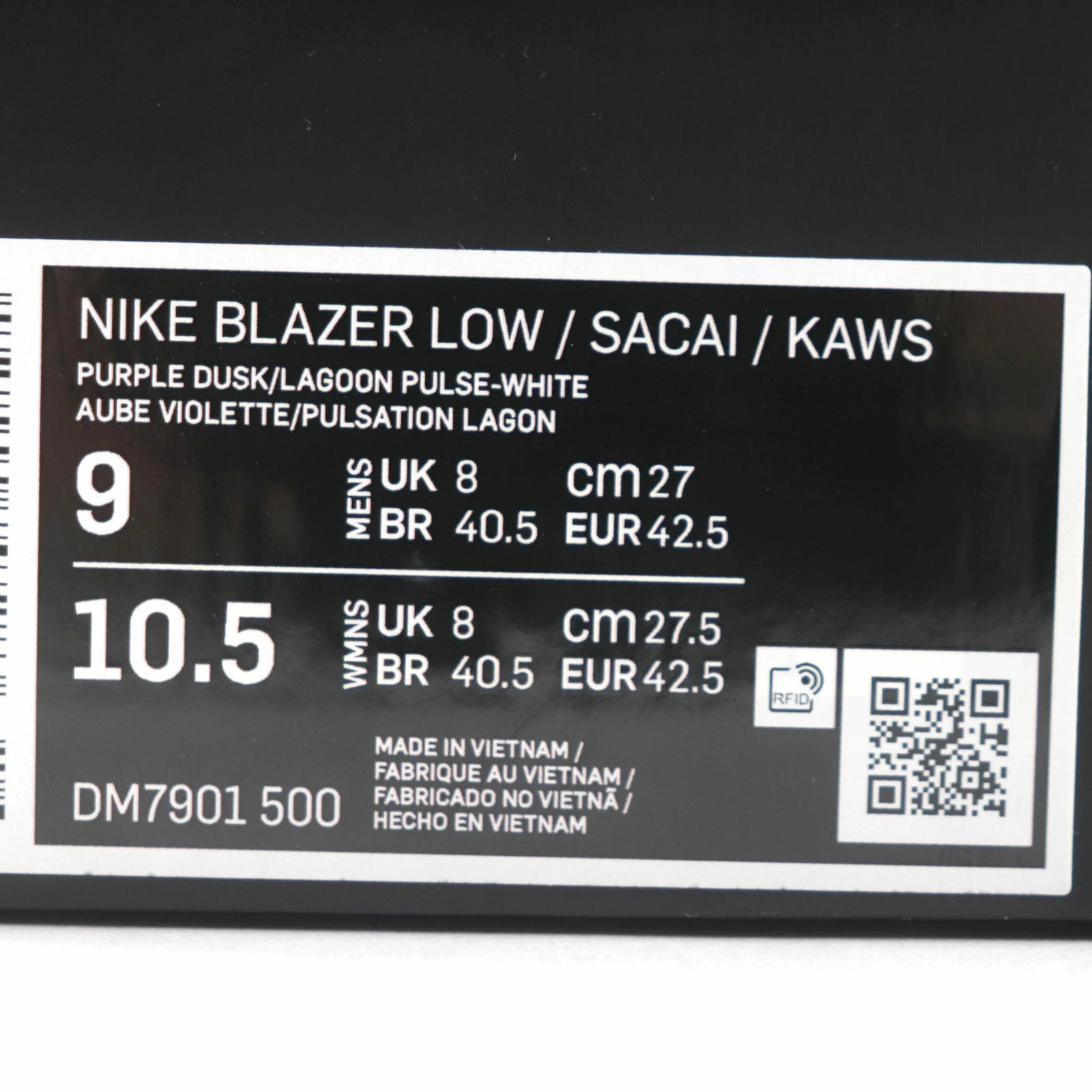 Unused Nike Kaws Sacai Blazer Low Purple Dusk suede leather sneakers, size 27, men's, DM7901-500, with box. [Pre-owned]