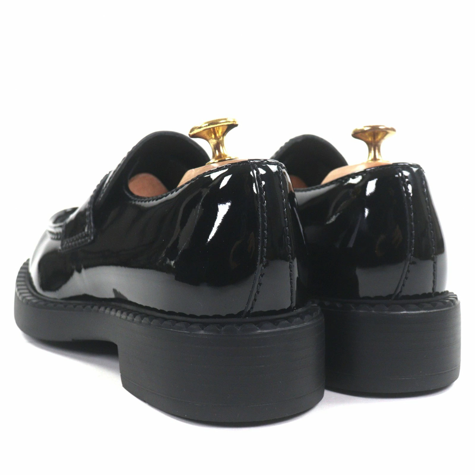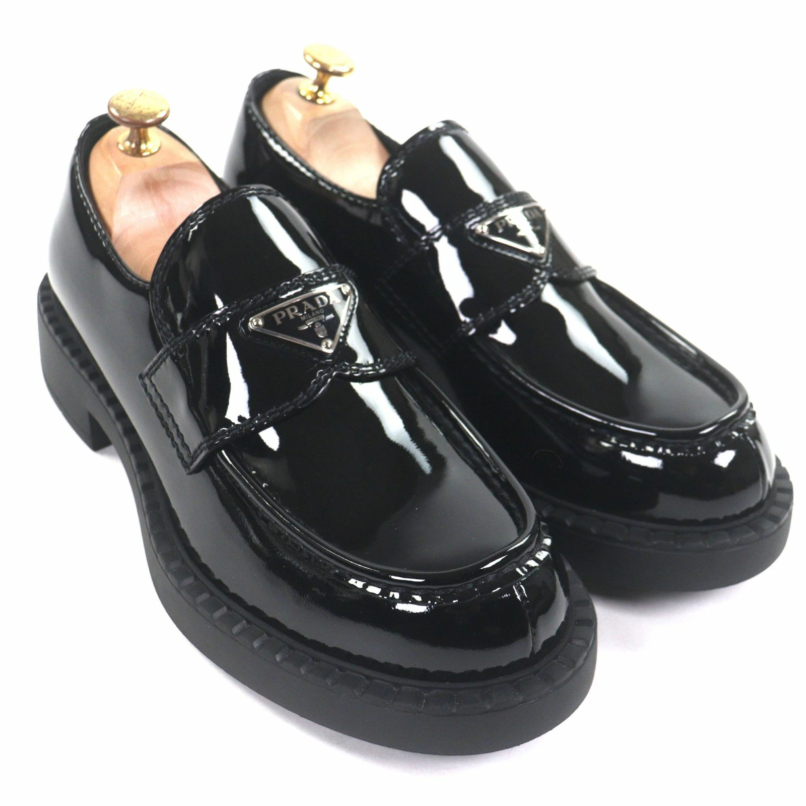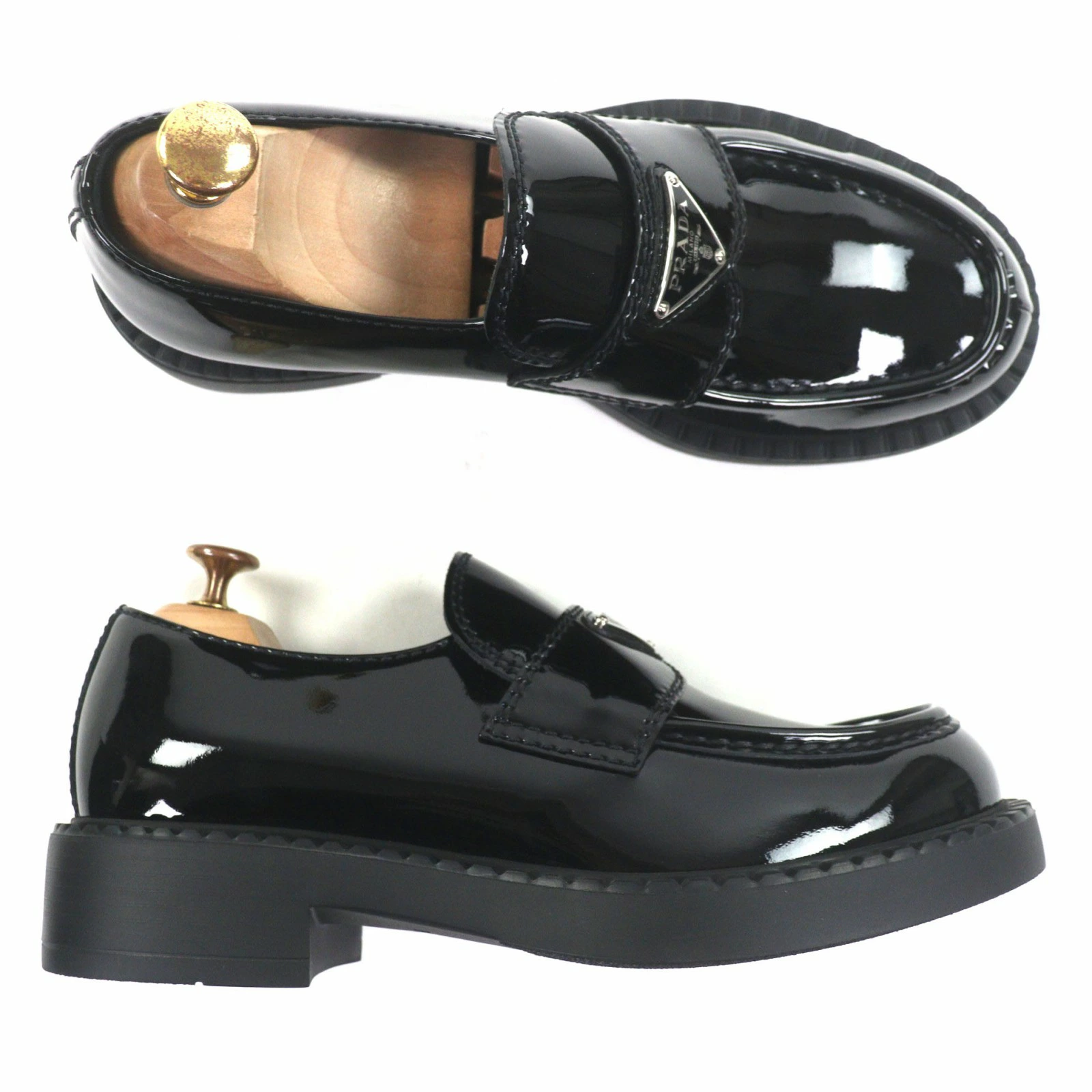 Unused item ▼PRADA 2DE127 Chocolate Patent Leather Triangle Logo Loafers Black 6.5 With Box Made in Italy Men's [Used]