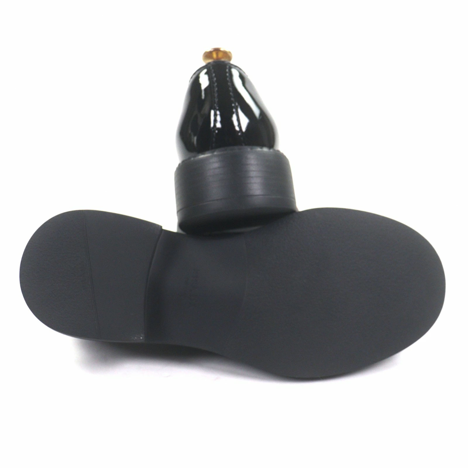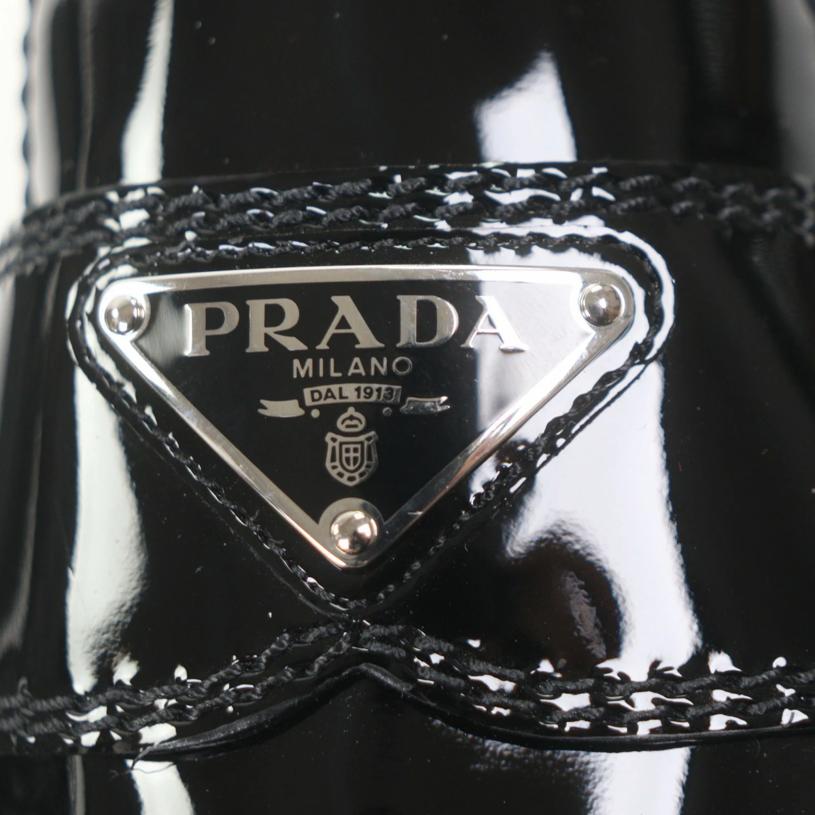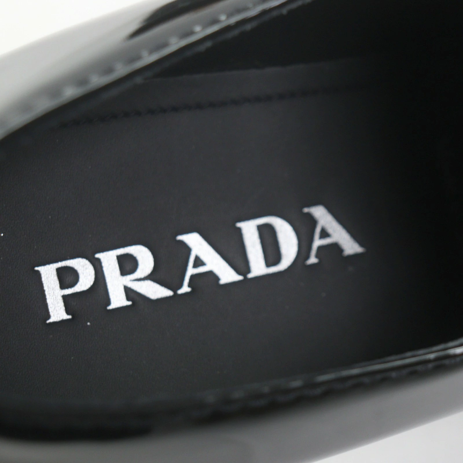 Unused item ▼PRADA 2DE127 Chocolate Patent Leather Triangle Logo Loafers Black 6.5 With Box Made in Italy Men's [Used]