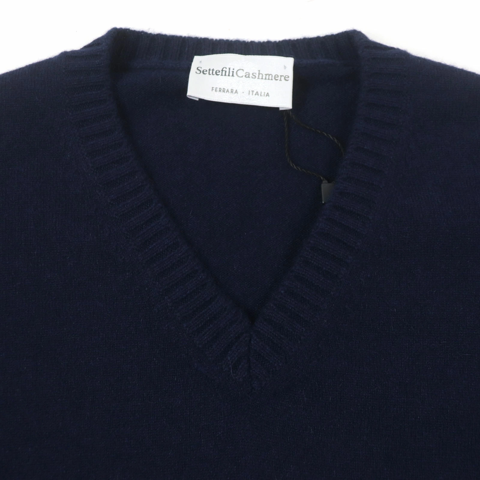 Unused Settefili Cashmere 133/1BS 100% Cashmere Relax Fit V-Neck Knit Sweater, Navy, Size S/48, Made in Italy, Authentic, Men's [Pre-owned]