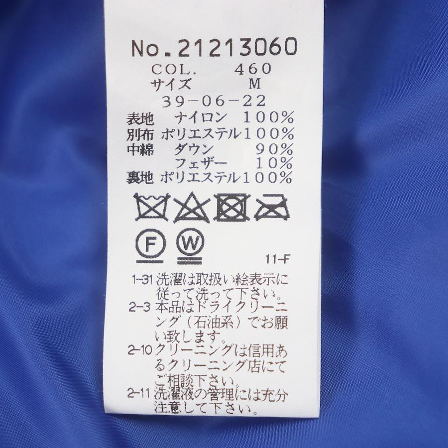 | 素材 (material) | 表地:ナイロン100% 一部:ポリエステル100% 中綿:ダウン90% :フェザー10% 裏地:ポリエステル100% | ||||||||||||||||