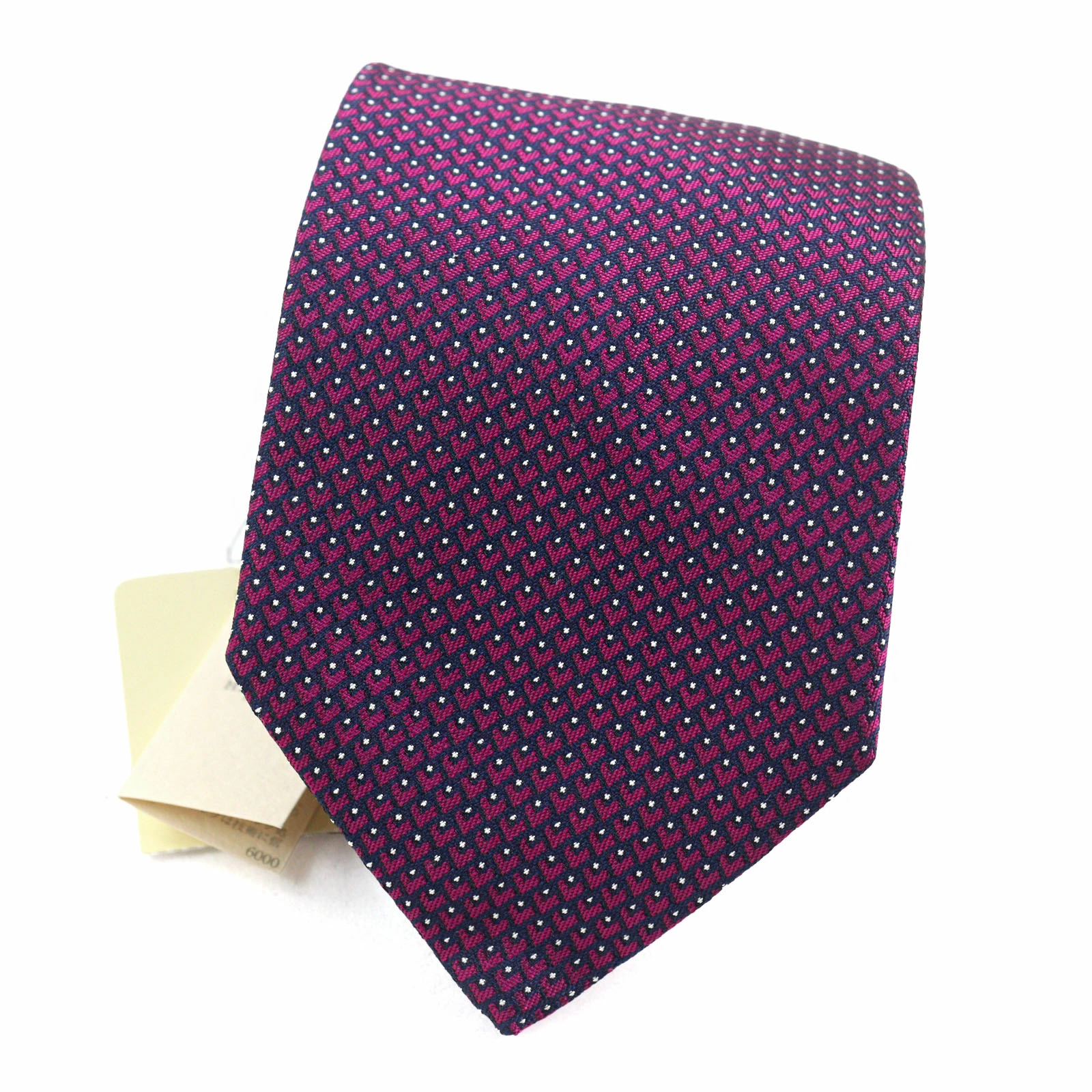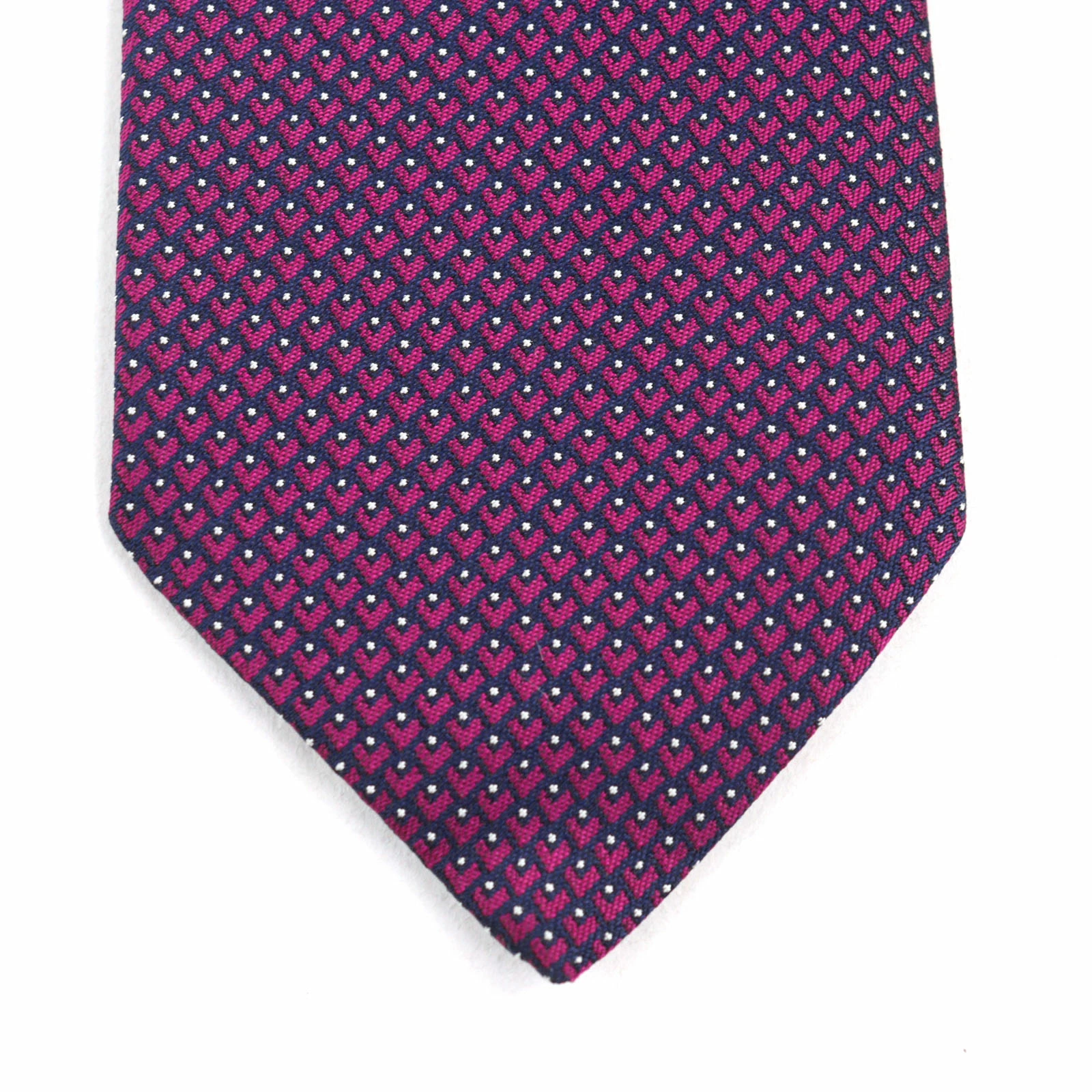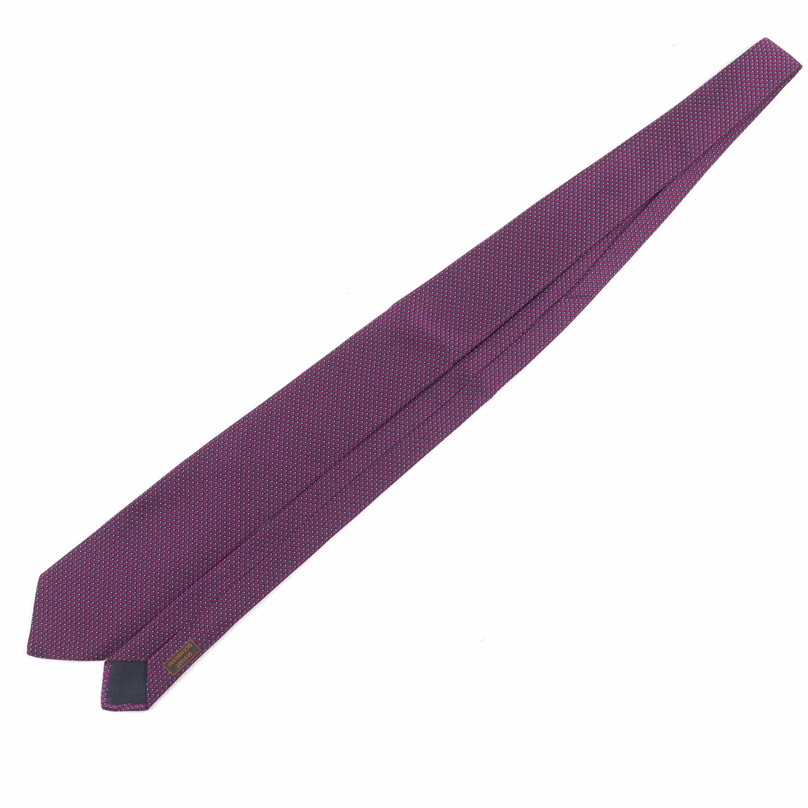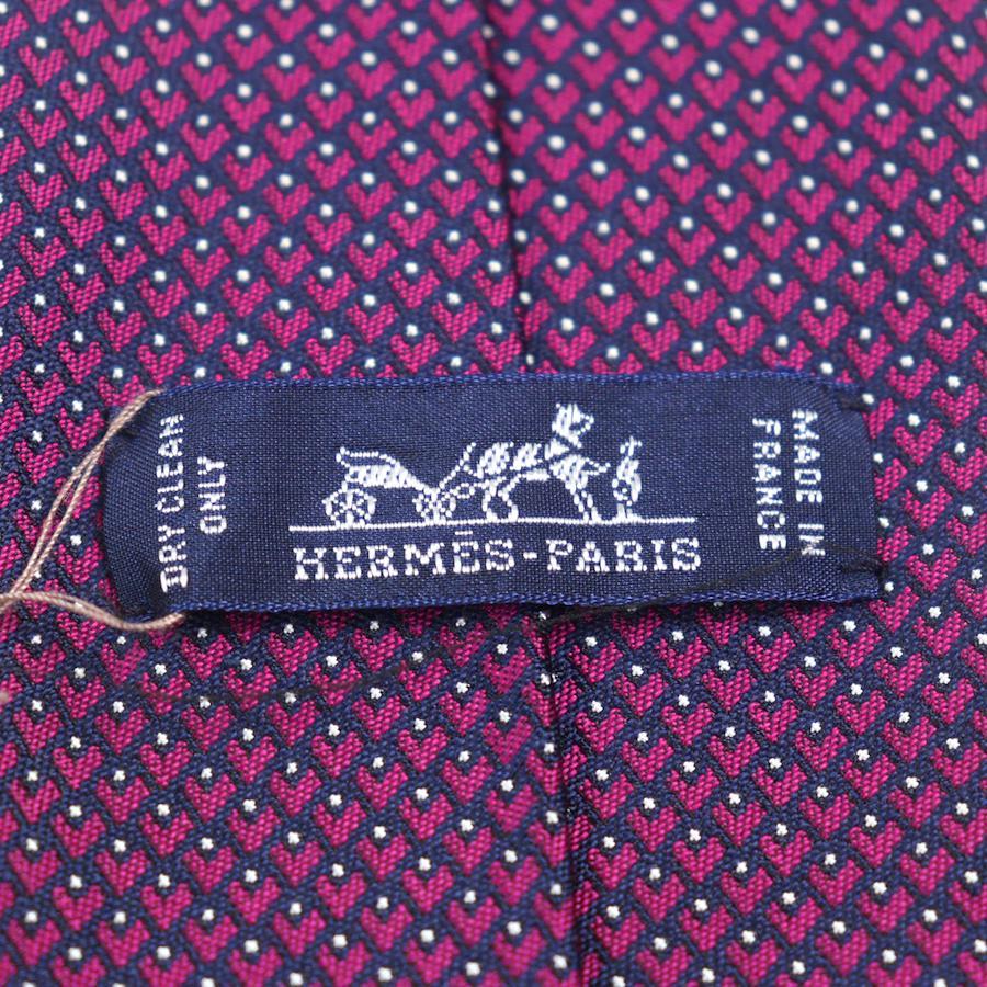 Unused Hermès 659122T CRAVATE 100% Silk Tie by Marine Framboise Blanc, featuring an all-over heart embroidery and an H logo on the lining. Purple. Comes with box. Made in France. Pre-owned.