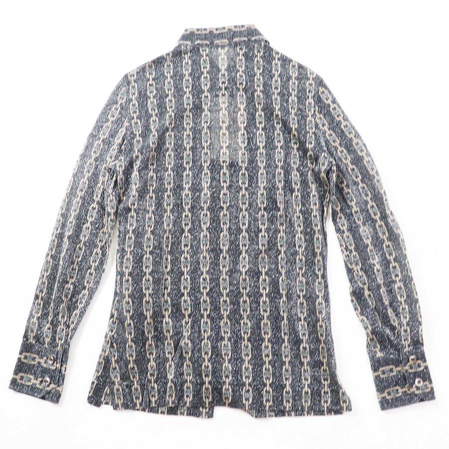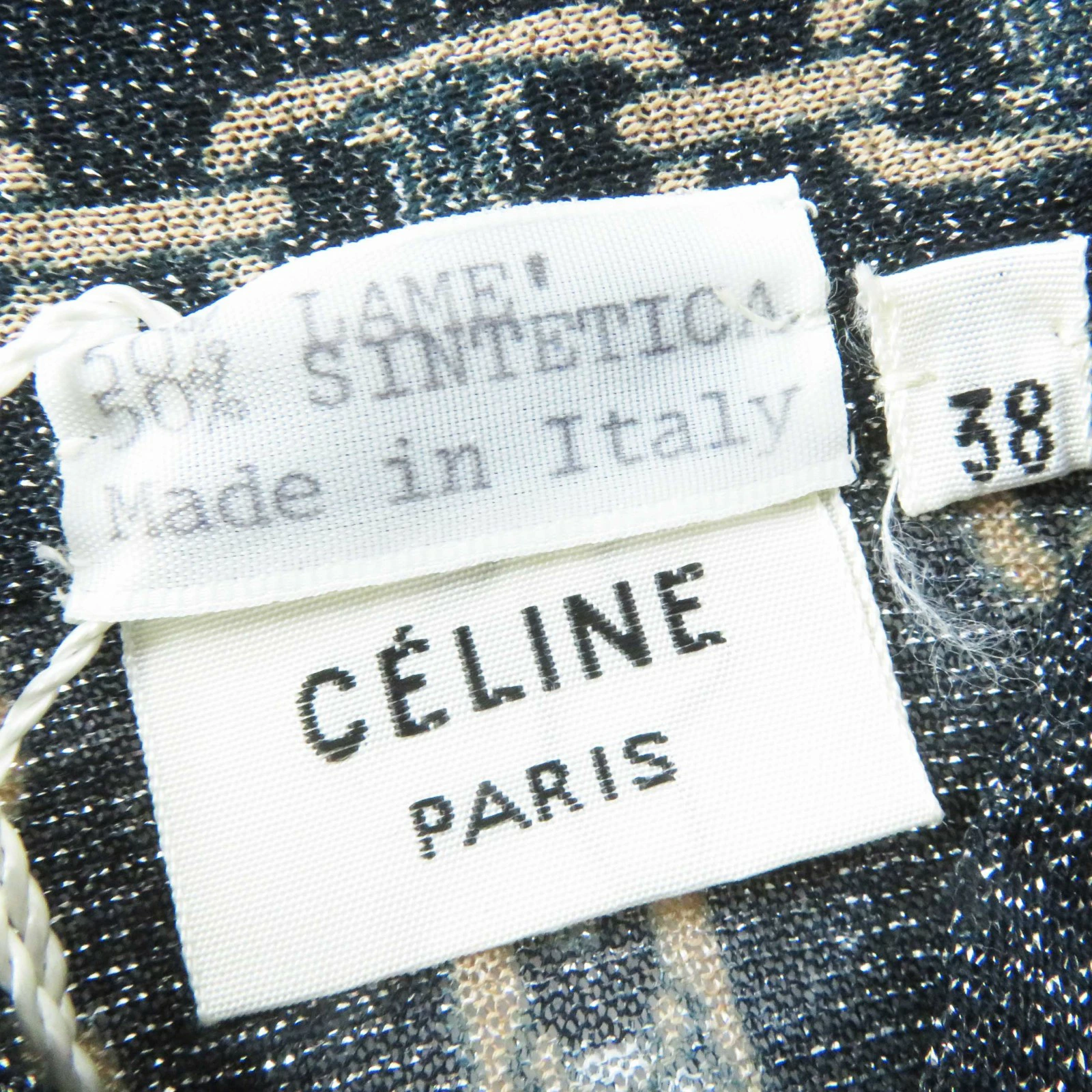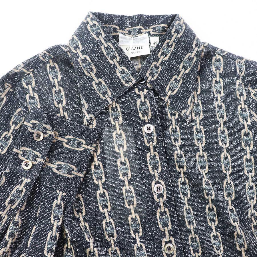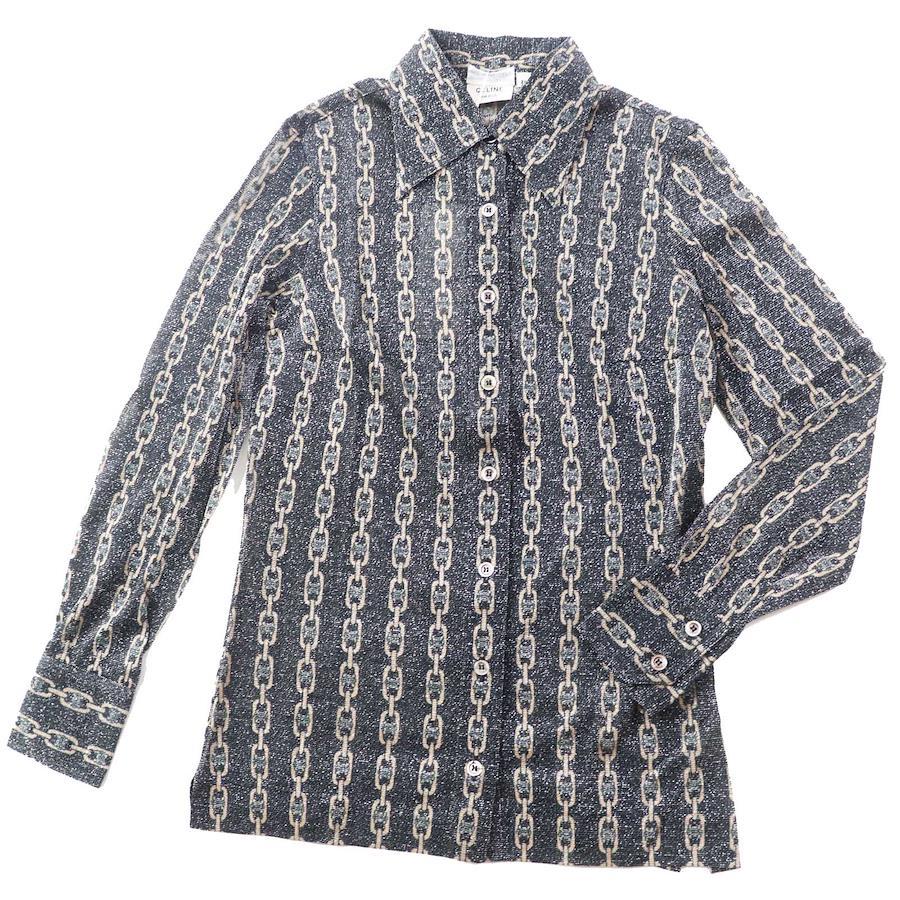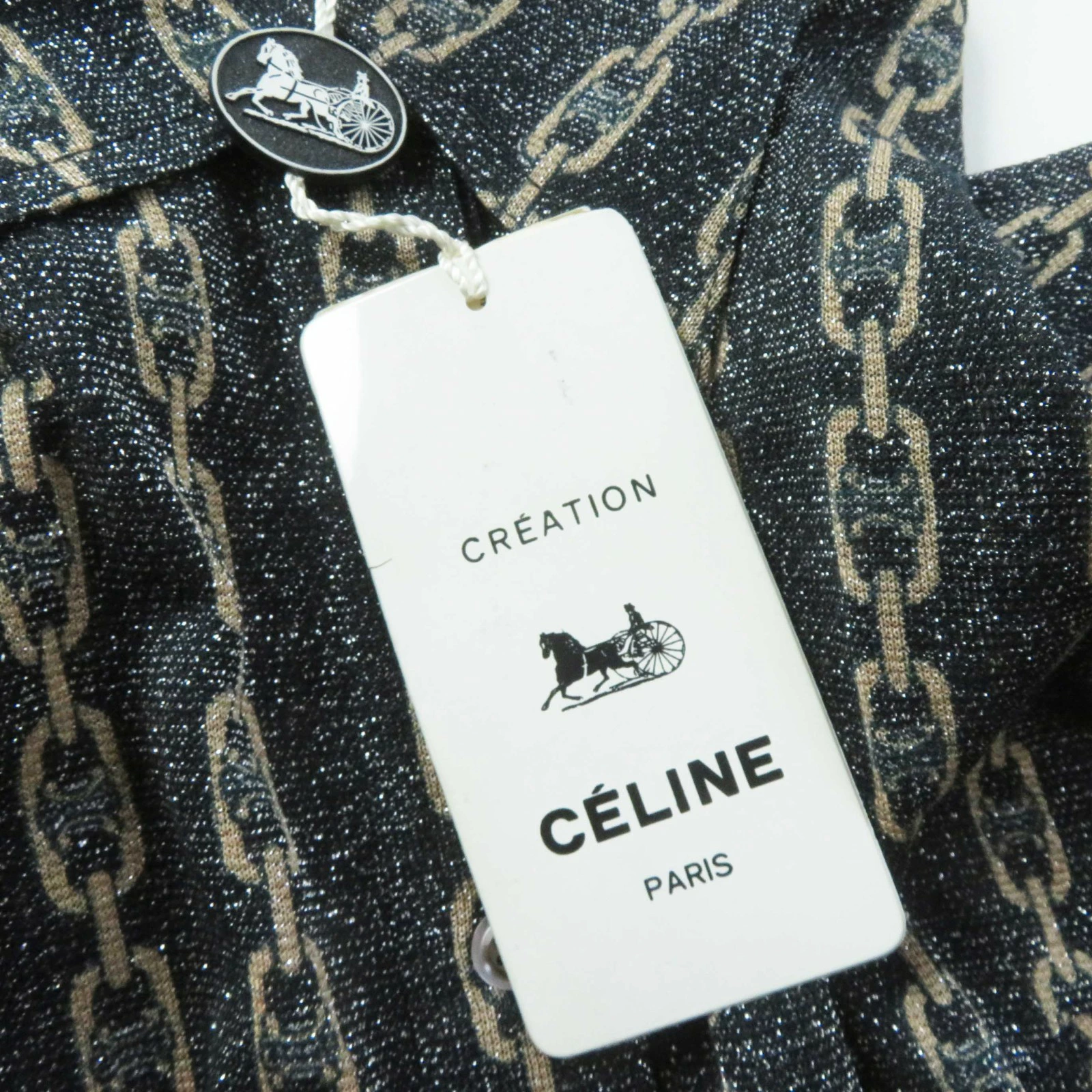 Unused Celine Triomphe Chain Print Long Sleeve Shirt with Glitter, Black and Beige, Size 38, Made in Italy, Women's [Pre-owned]