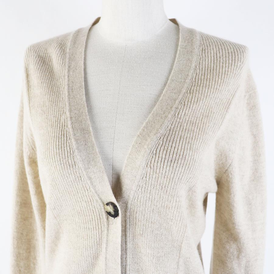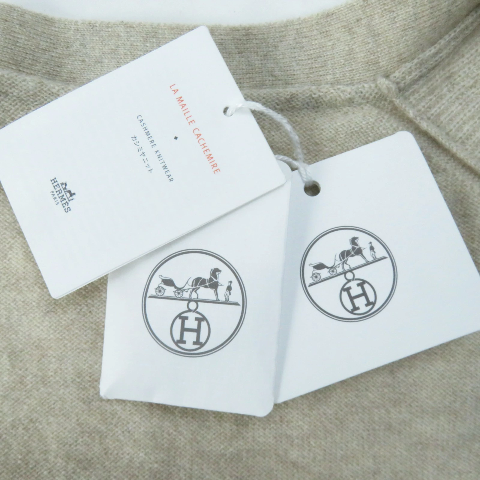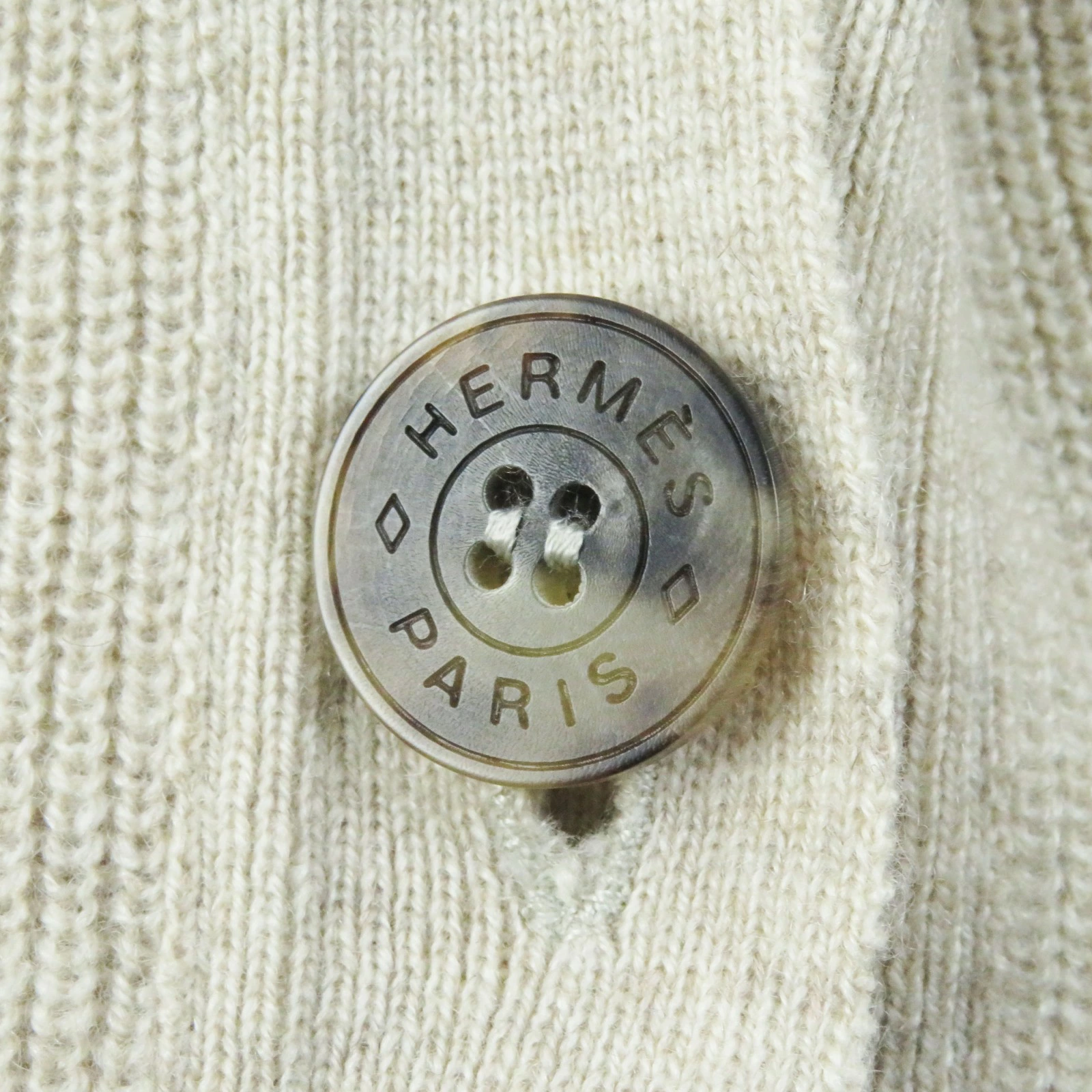 Unused HERMES 24SS 4E2701D1 100% Cashmere Long Sleeve Knit Cardigan with Logo Buttons, Beige, Size 38, Made in UK, Women's [Pre-owned]