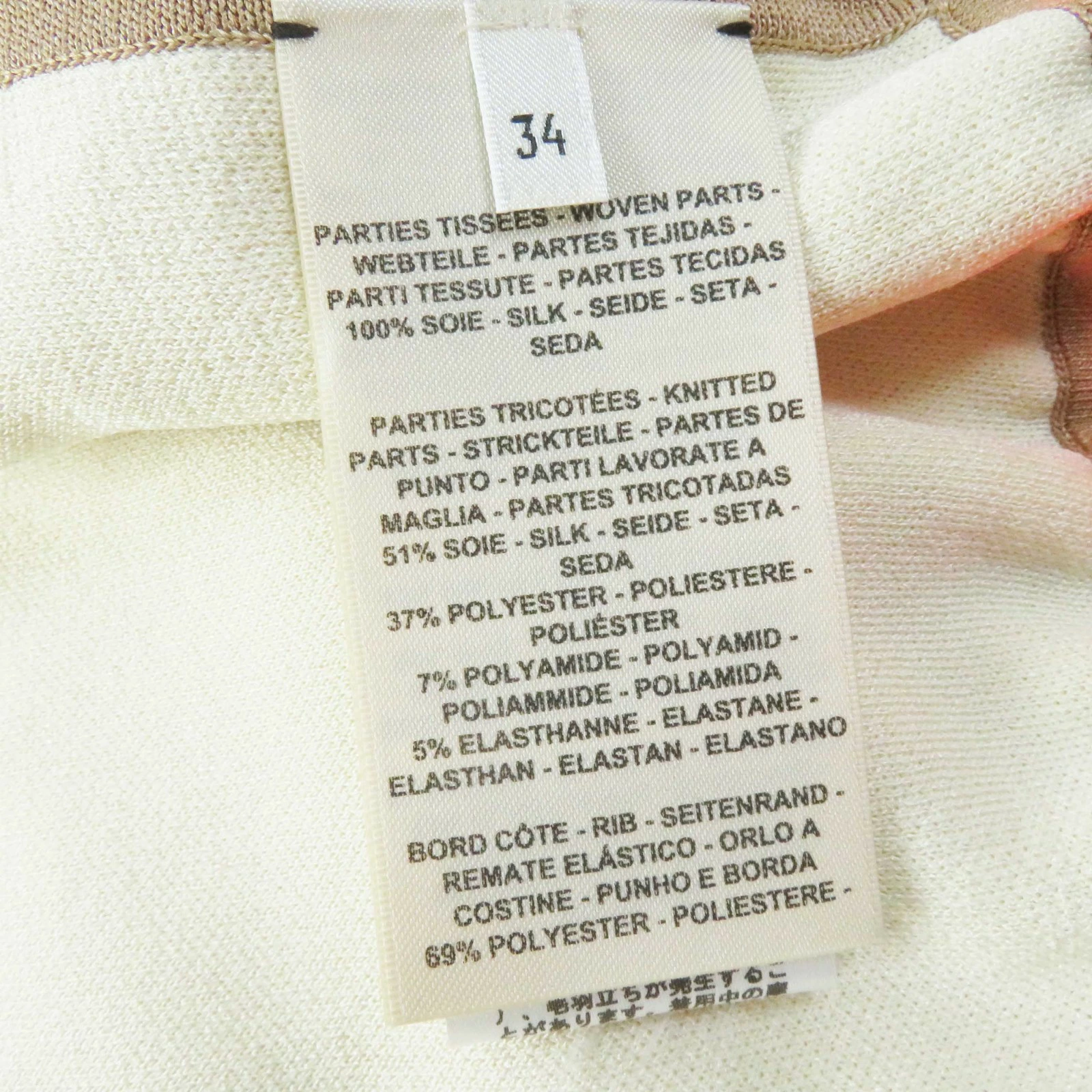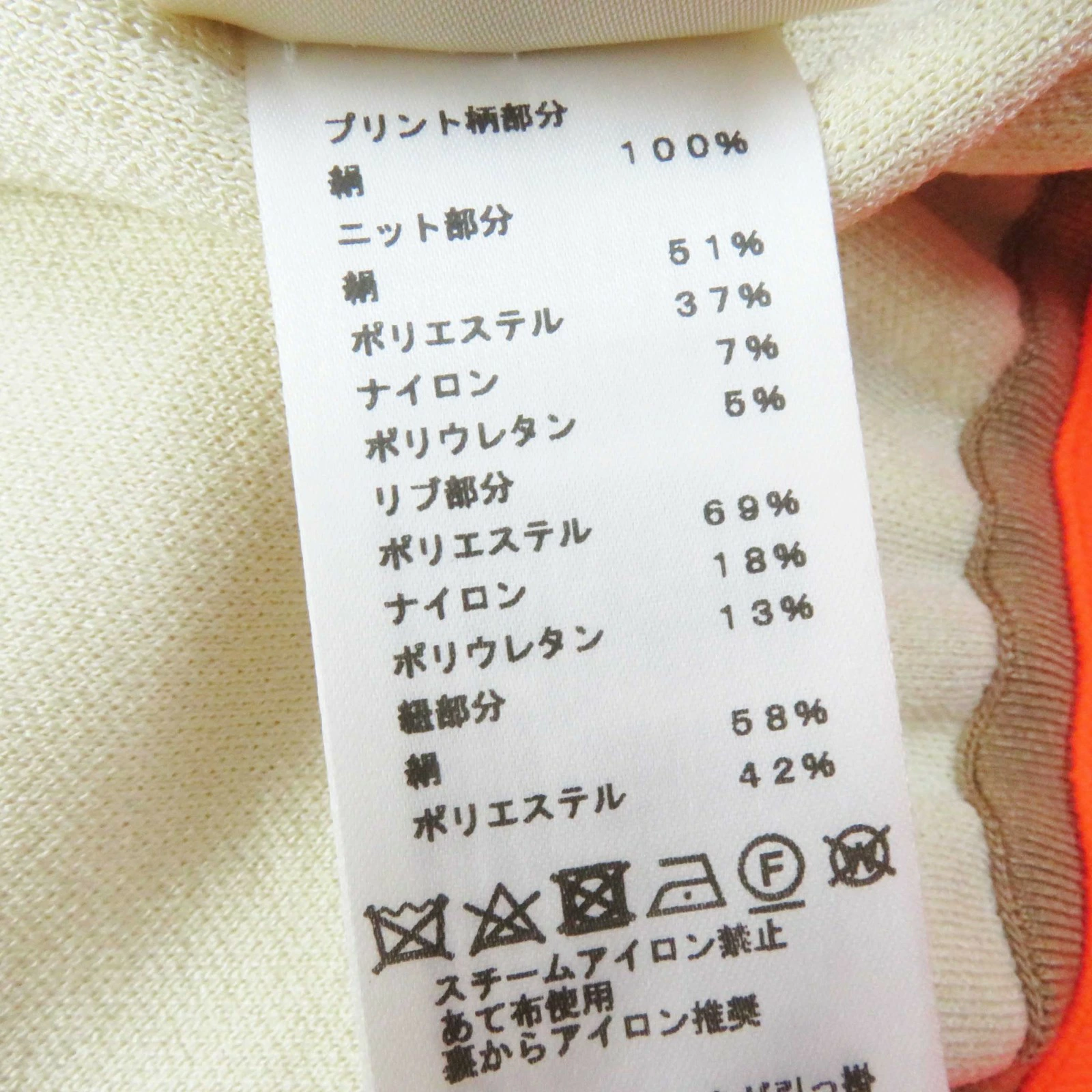 | 素材 (material) | 本体:シルク100% 本体:シルク100% ニット:シルク51%・ポリエステル37%・ナイロン7%・ポリウレタン5% リブ:ポリエステル69%・ナイロン18%・ポリウレタン13% 紐部分:シルク58%・ポリエステル42% | ||||||||||||||||