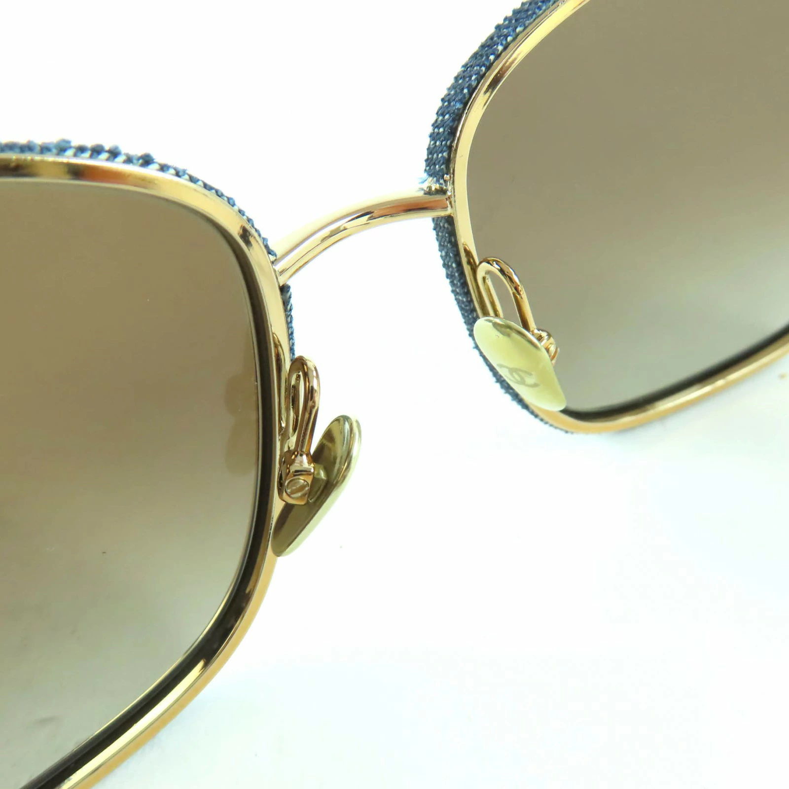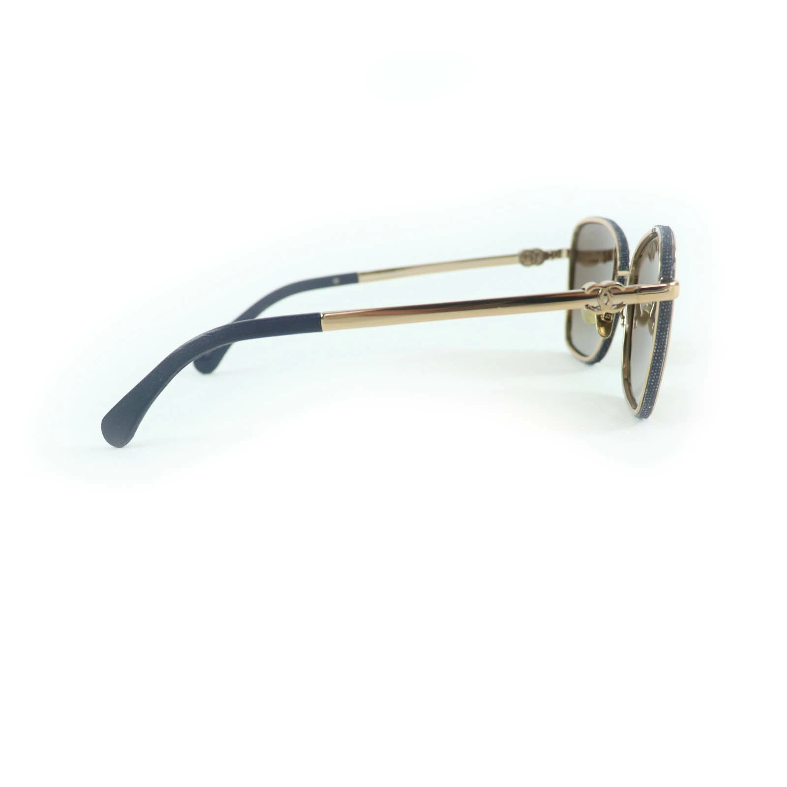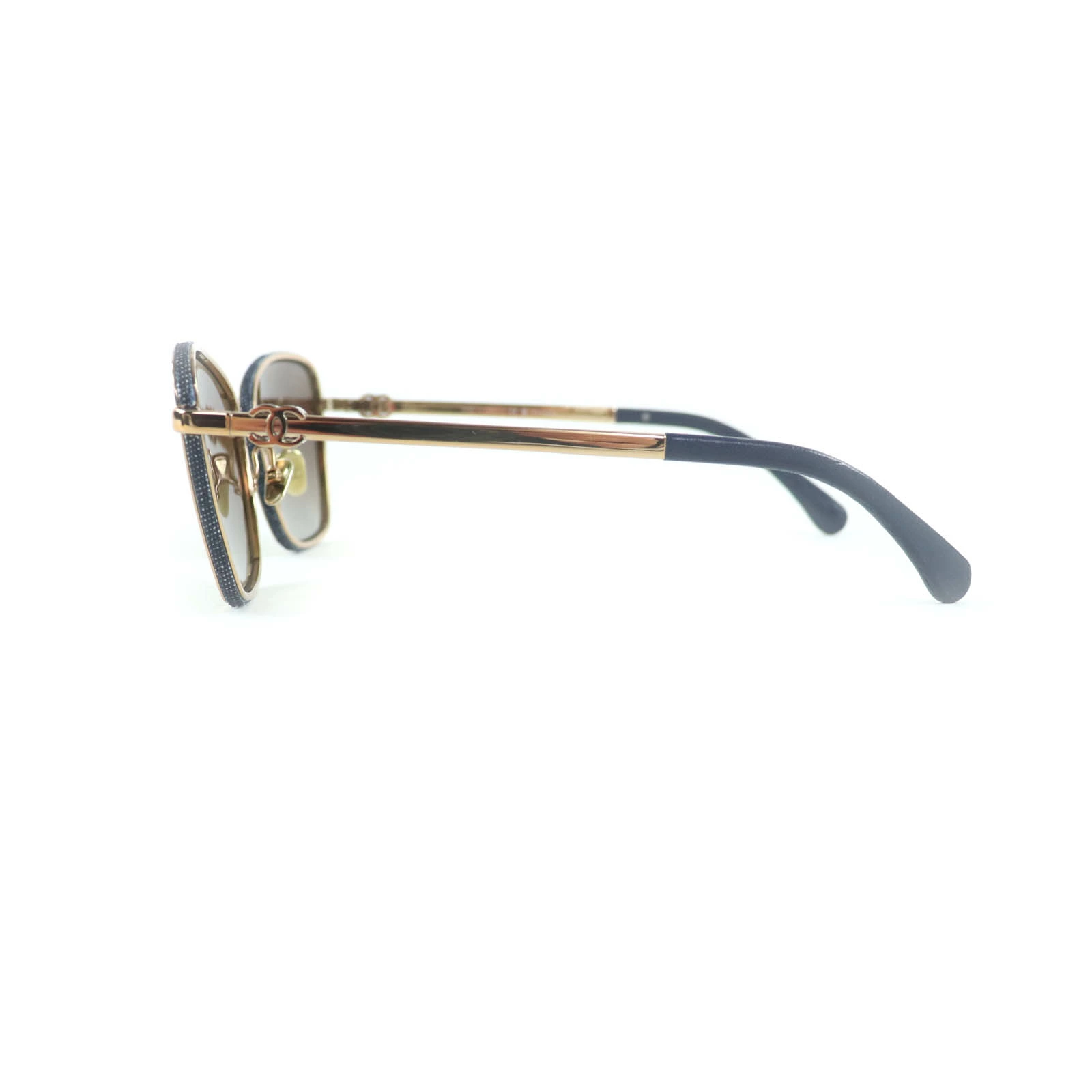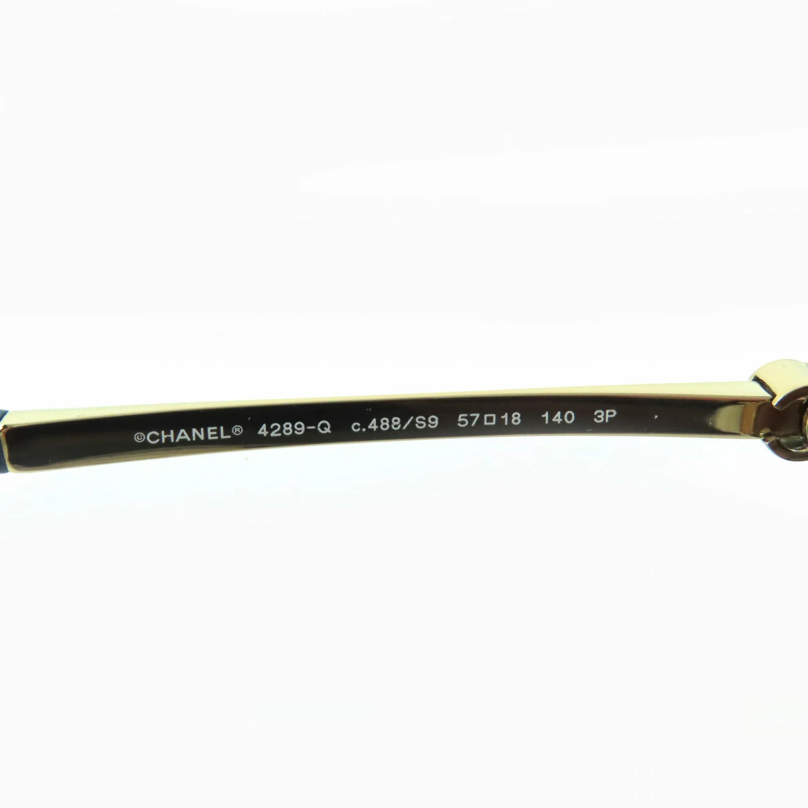 Unused CHANEL 4289-Q Cat-Eye Shape Coco Mark Denim Sunglasses, Navy Gold, Size 57□18 140, Box and Case Included, Made in Italy, Women's [Pre-owned]