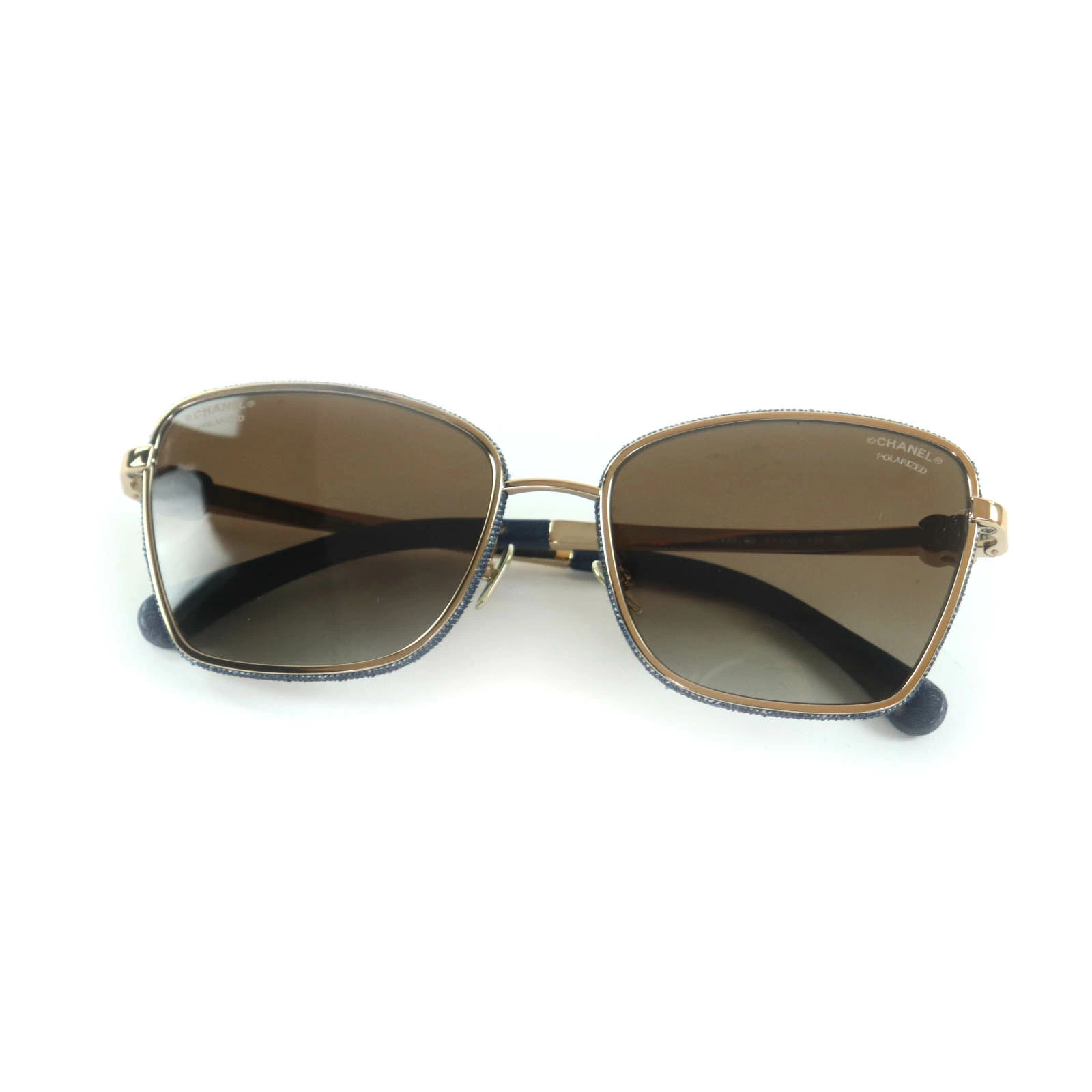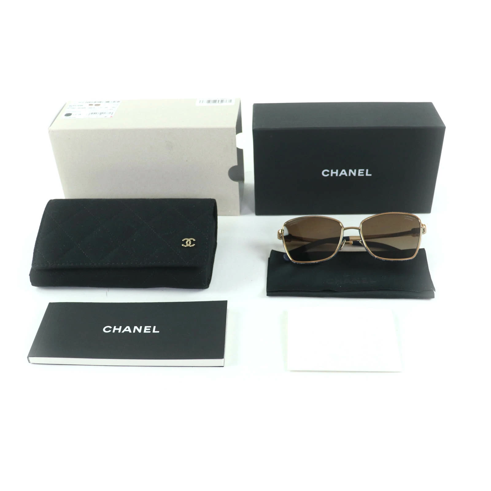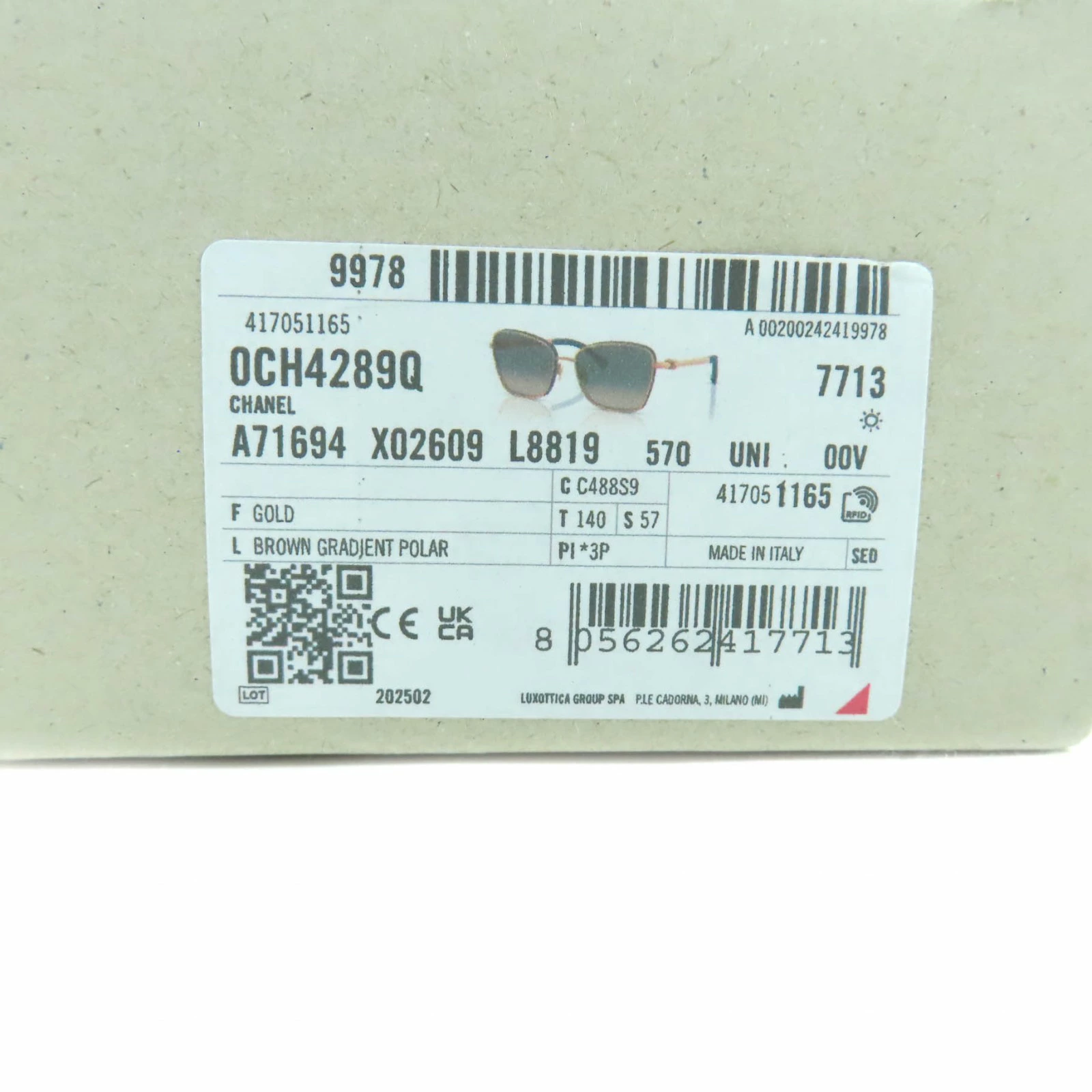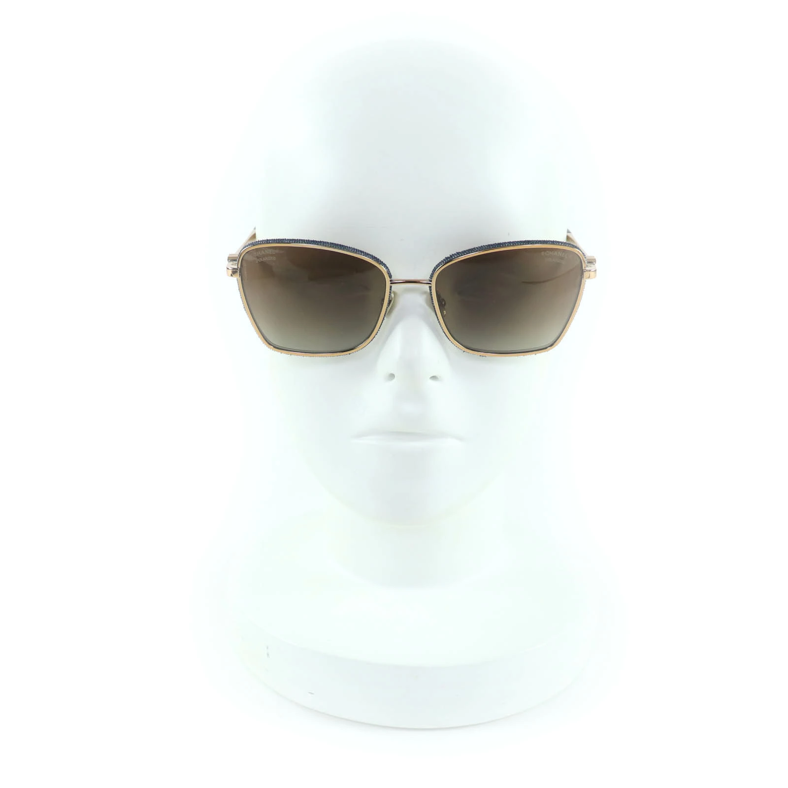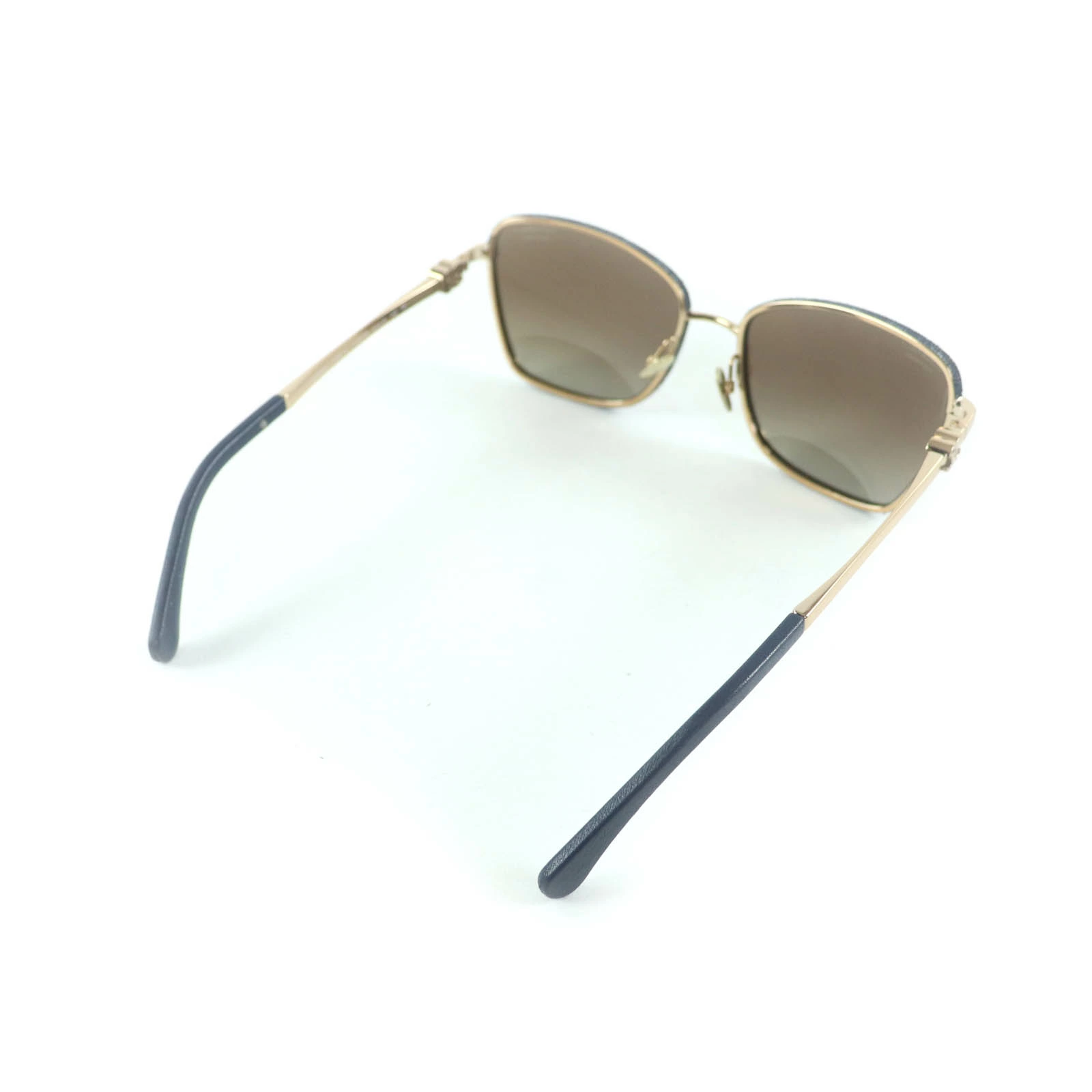 Unused CHANEL 4289-Q Cat-Eye Shape Coco Mark Denim Sunglasses, Navy Gold, Size 57□18 140, Box and Case Included, Made in Italy, Women's [Pre-owned]