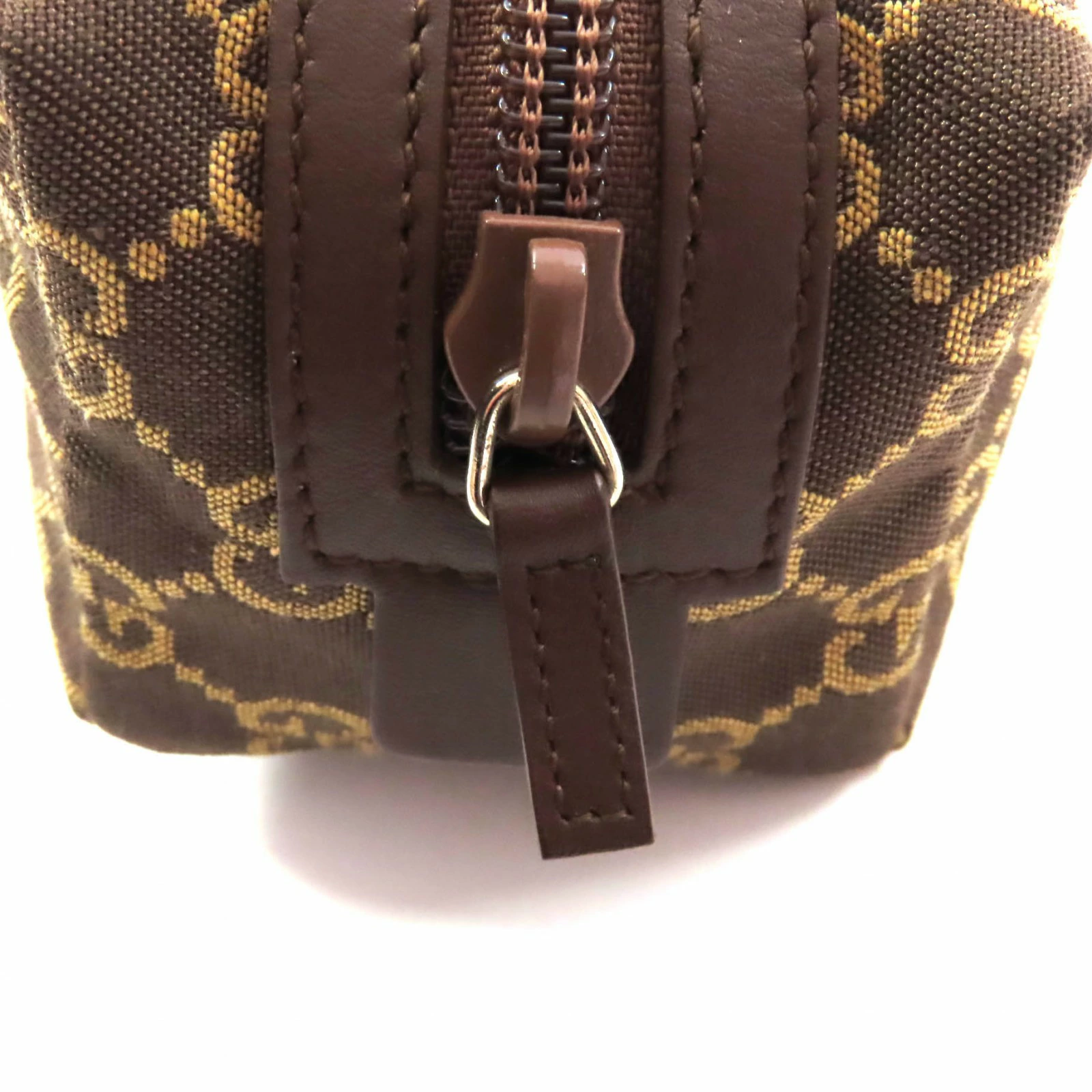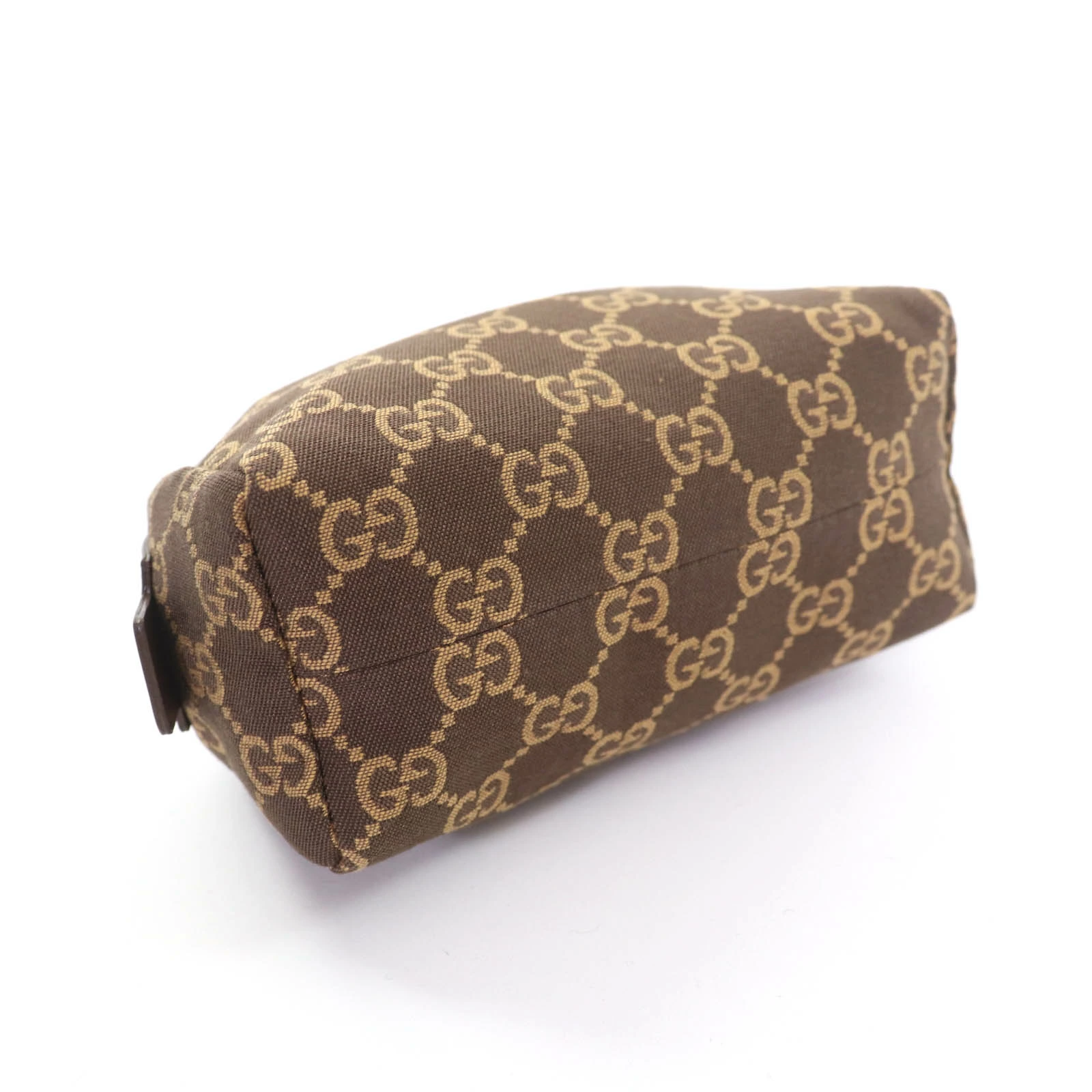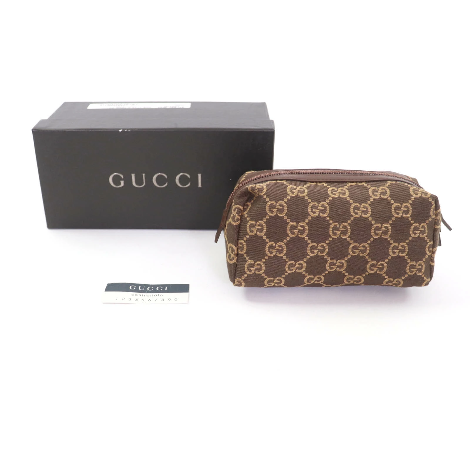 Unused GUCCI 002058 GG Canvas and Leather Cosmetic Pouch, Brown, with Box, Made in Italy, Women's [Pre-owned]