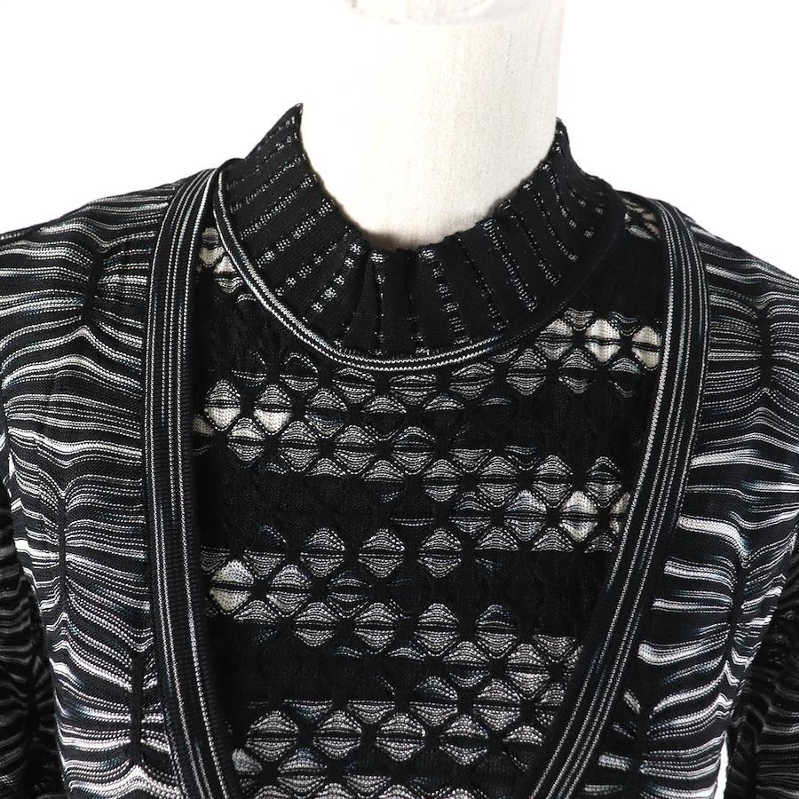 Unused Missoni all-over print V-neck cardigan and sleeveless dress ensemble in black and white, size 40, made in Italy, authentic, women's [pre-owned]