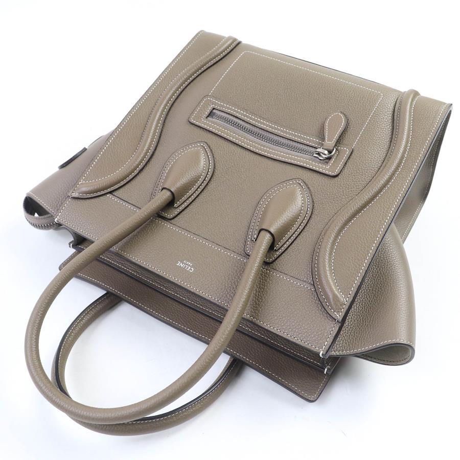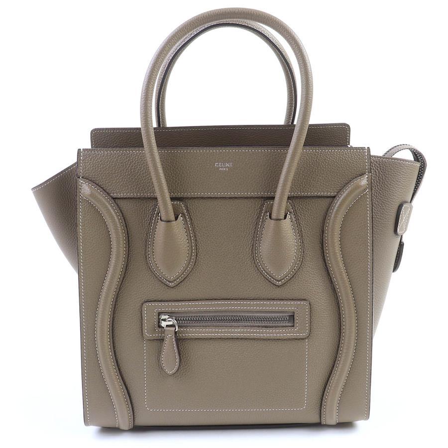 Unused CELINE 18979 Luggage Micro Shopper Handbag in Drummed Calfskin, Suri, Greige, with Dust Bag, Made in Italy, Women's [Pre-owned]