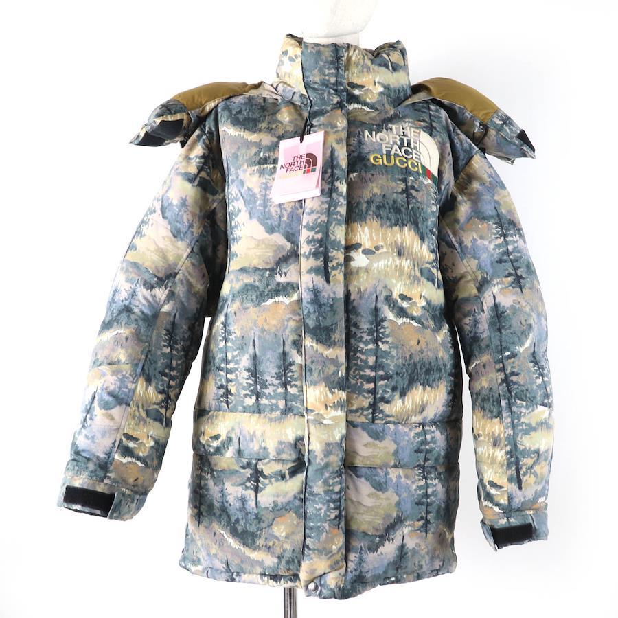 Unused GUCCI x THE NORTH FACE 2021-2022 AW 663921 voluminous forest print hooded down coat, green, size S, includes hanger. Authentic women's item. [Pre-owned]