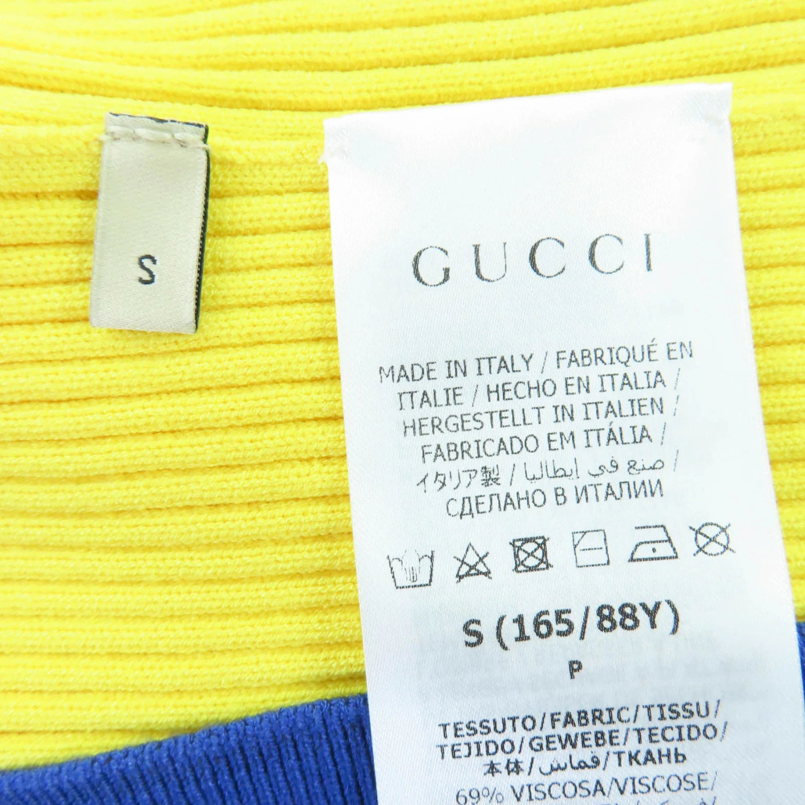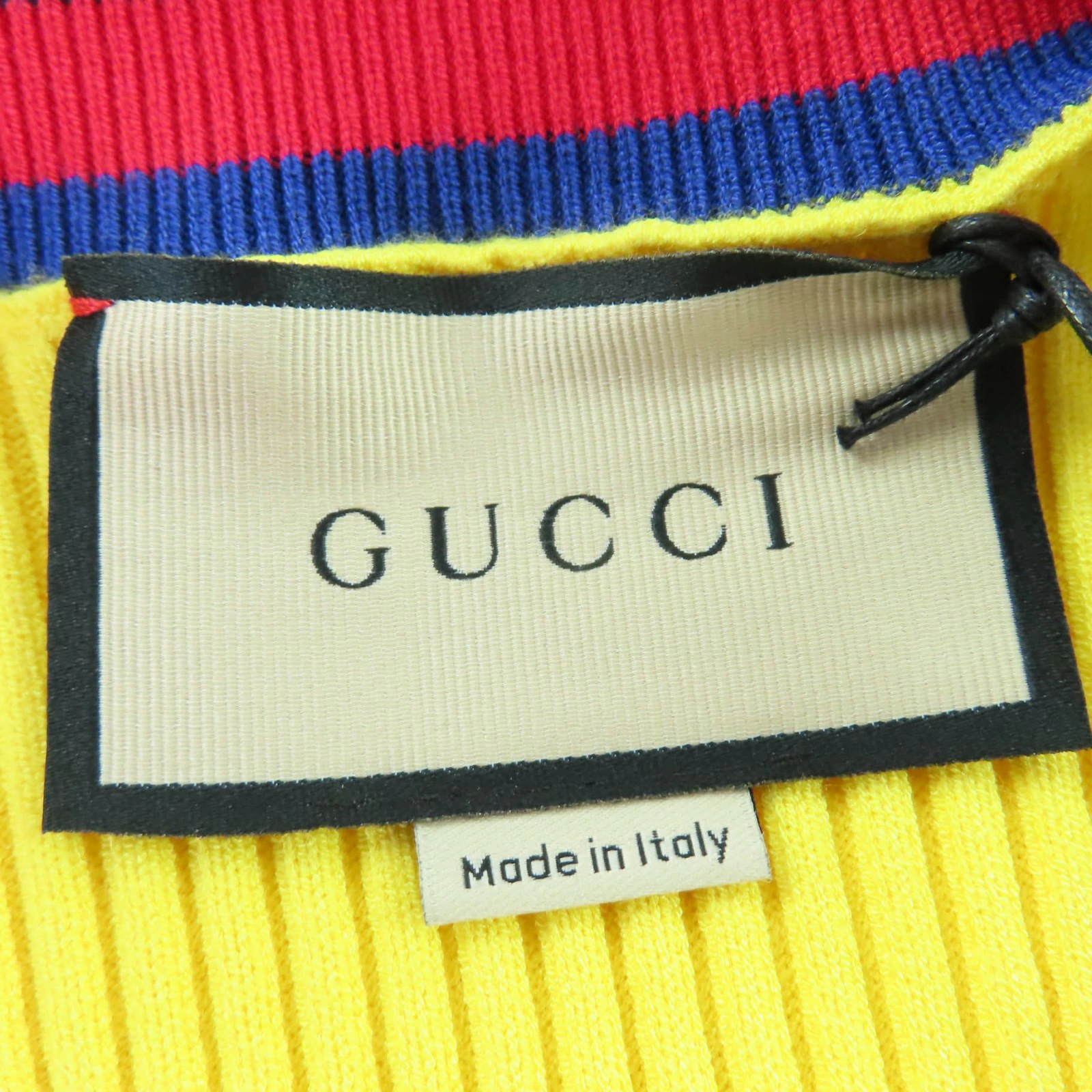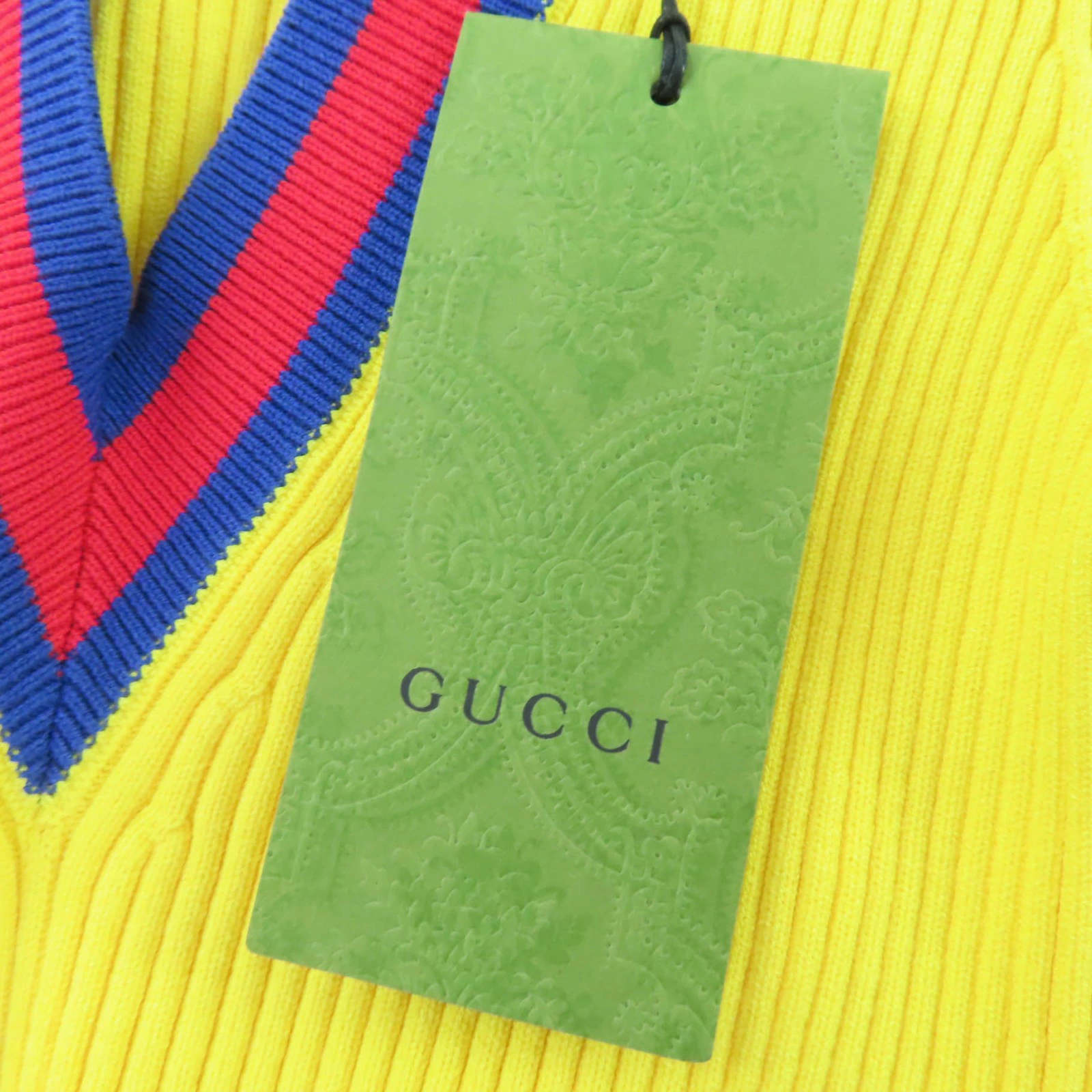 Unused GUCCI 2023 Autumn/Winter 756271 Web-lined V-neck cropped short-sleeve knit top, yellow, size S, made in Italy, authentic, women's [pre-owned]