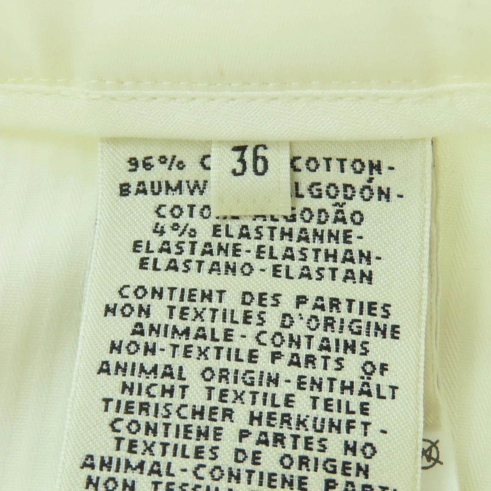 | 素材 (material) | 本体:コットン96% :ポリウレタン4% 裏地:コットン64% :レーヨン33% :ポリウレタン3% 一部:コットン100% | ||||||||||||||||