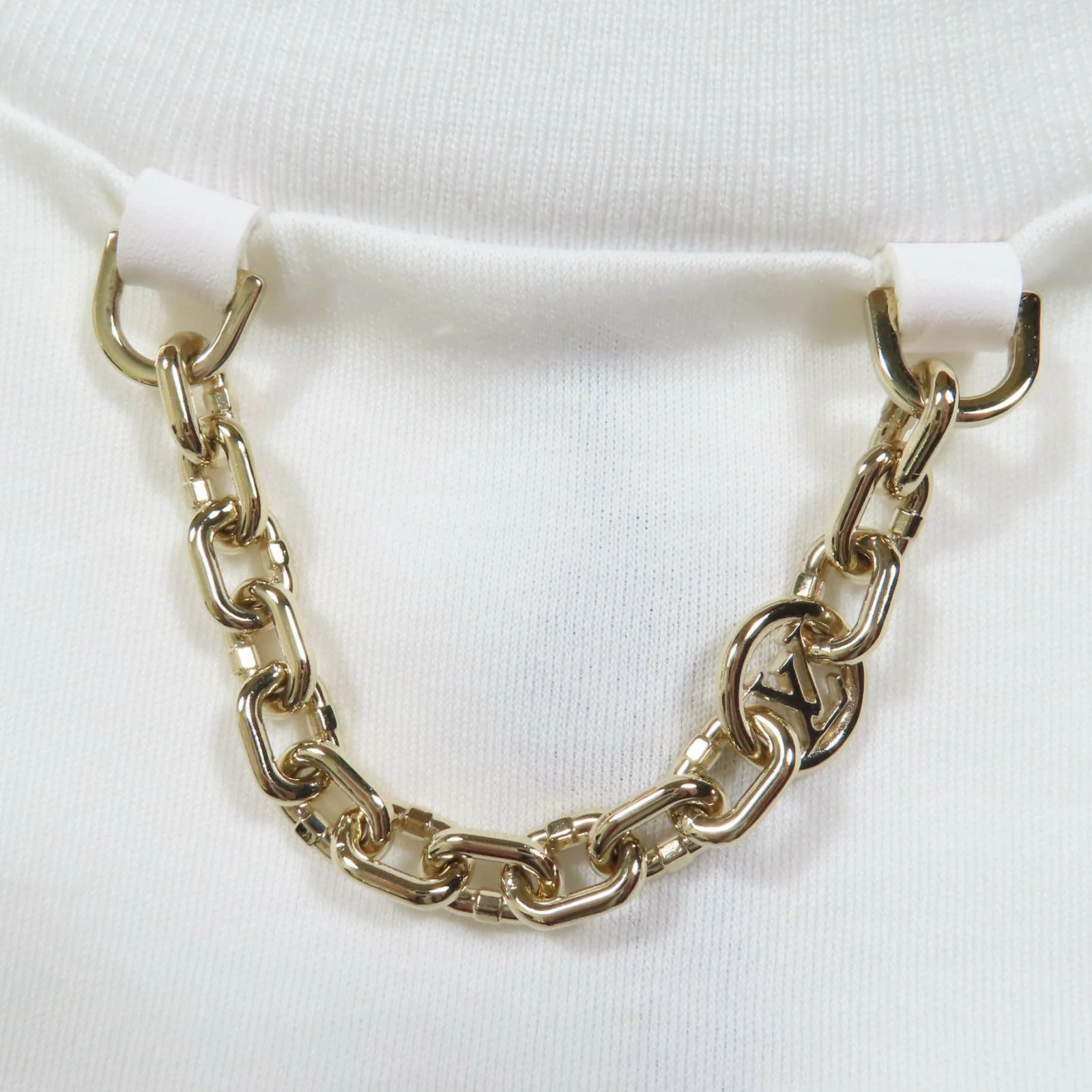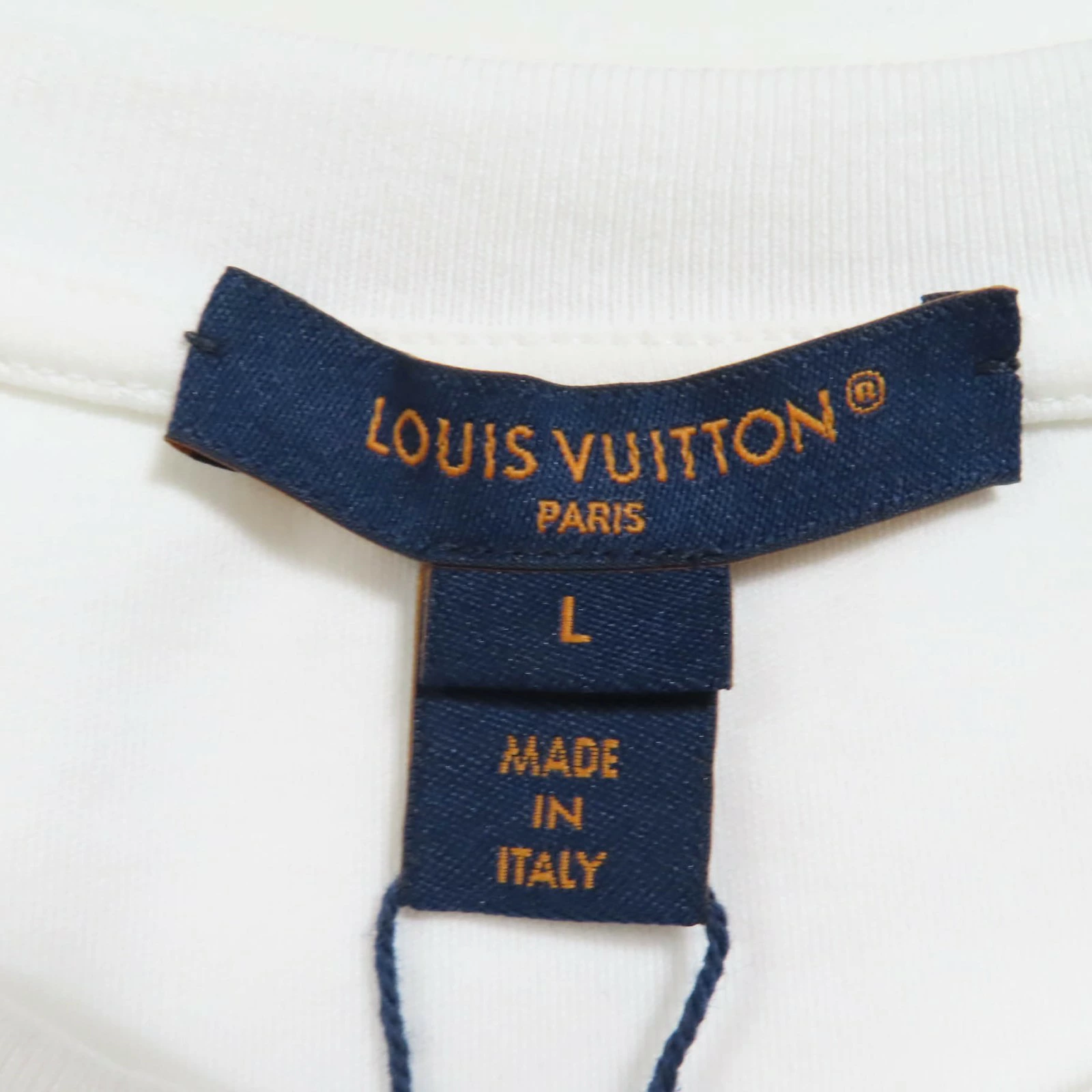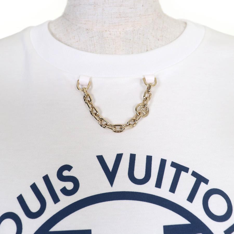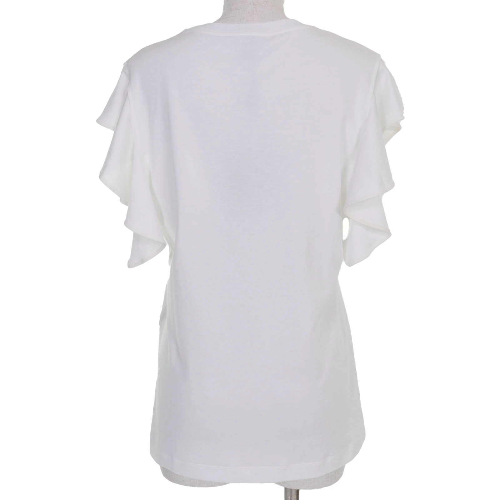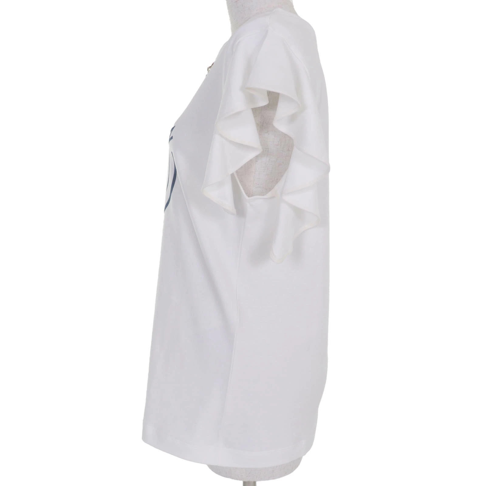 Unused LOUIS VUITTON 2024 Autumn/Winter 100% Cotton Top with LV Logo and Ruffled Sleeves, White, Size L, Made in Italy, Authentic, Women's [Pre-owned]