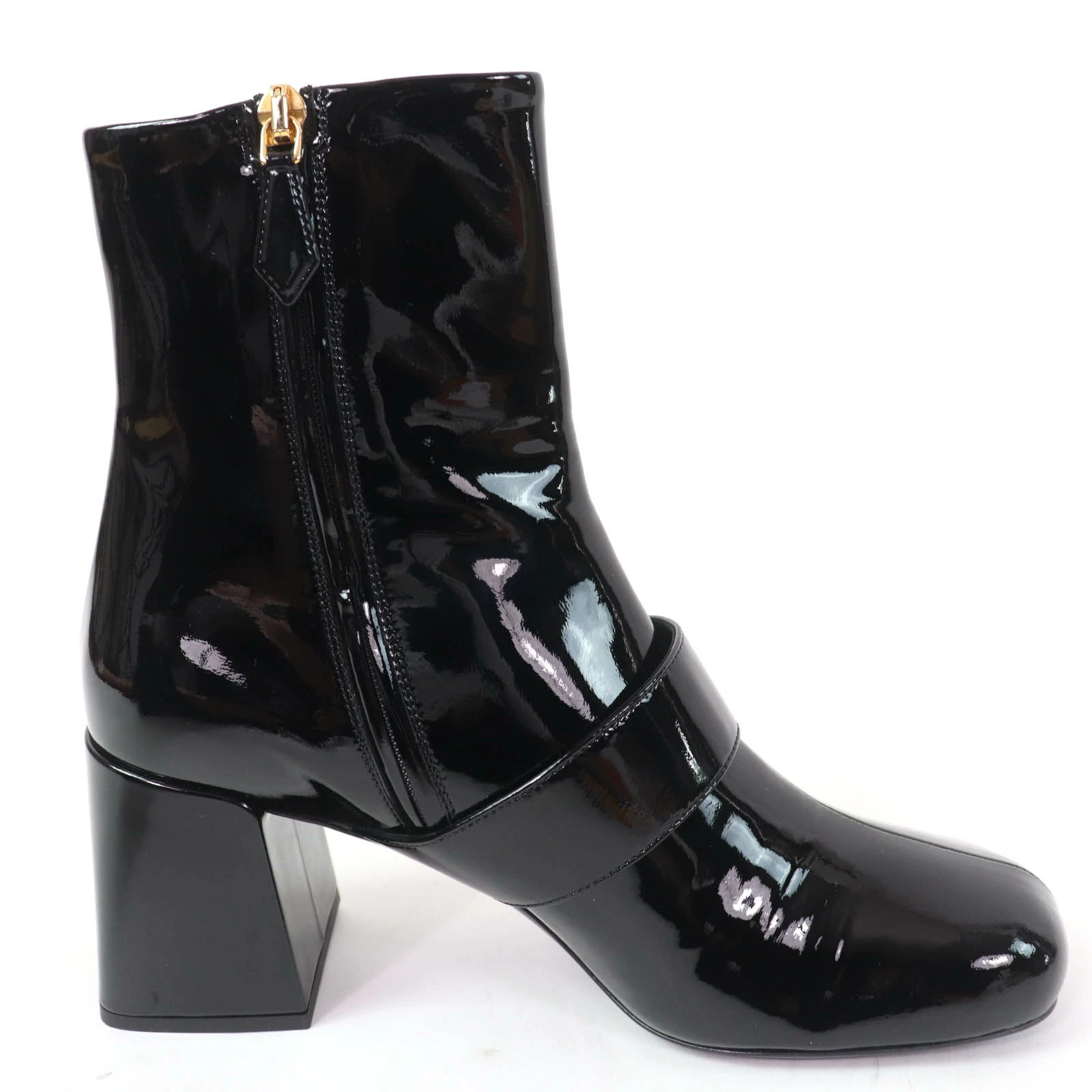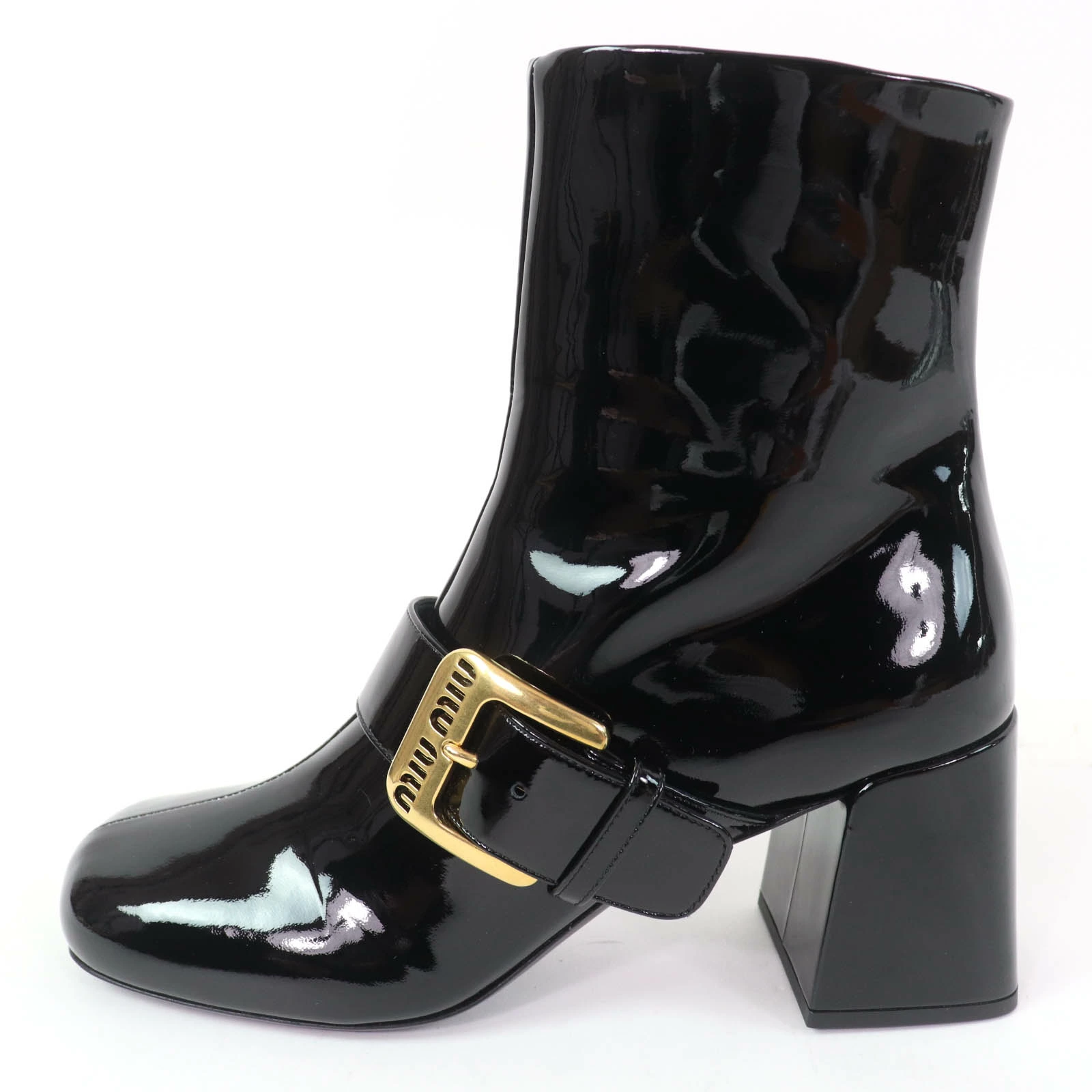 Unused MIUMIU Miu Miu 5T7990D Logo Hardware Side Zip Patent Leather Short Boots Black Size 37.5 Made in Italy with Box and Dust Bag [Pre-owned]