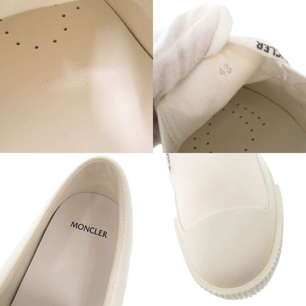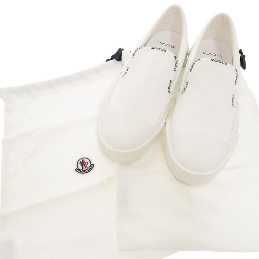 [管理番号]7H1847IZ5m40[ブランド]モンクレール(MONCLER)[タイプ]スリッポン[対象]メンズ[カラー]ホワイト[モデル]GLISSIERE TRI[生産国]スペイン[サイズ]全長:約約29.5cm表記サイズ:43くつ幅:約10cm[素材]キャンバス ラバー[付属品]保存袋