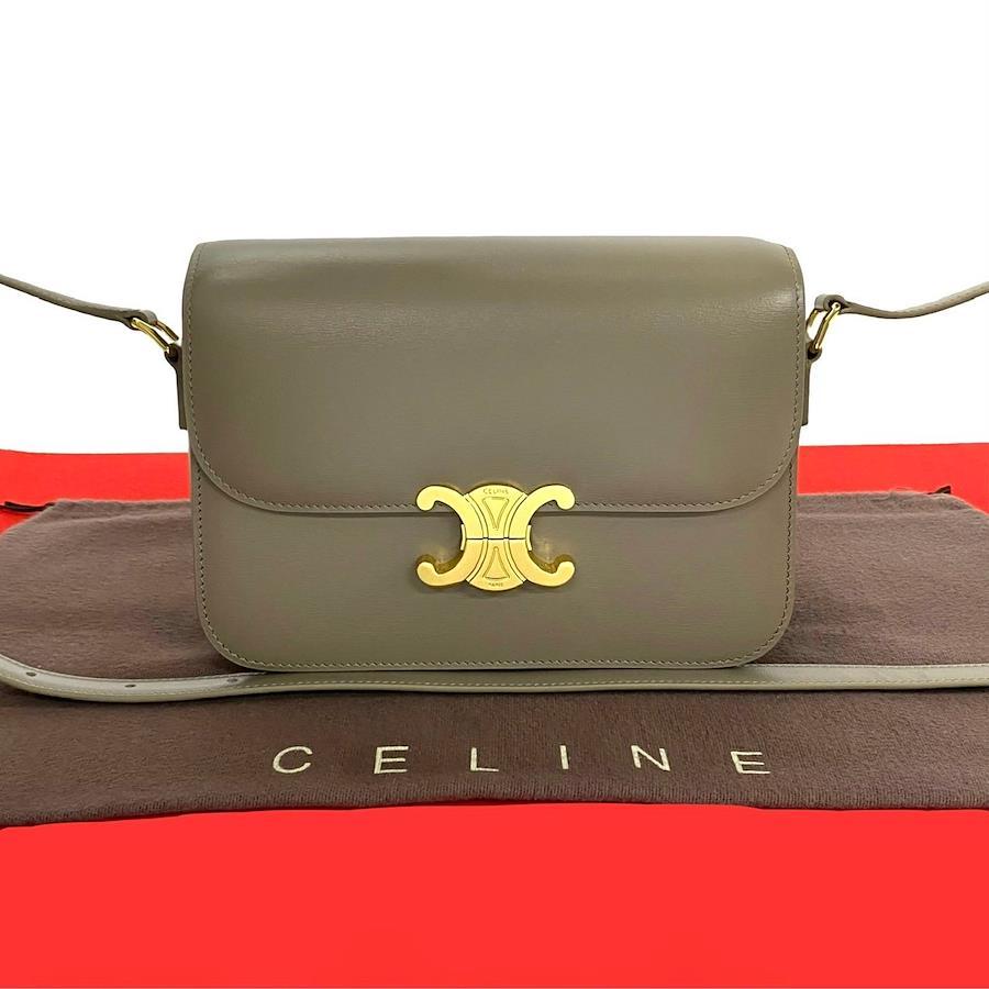 Unused, stored, rare item CELINE Classic Triomphe logo metal fittings leather genuine leather mini shoulder bag sacoche beige 68561