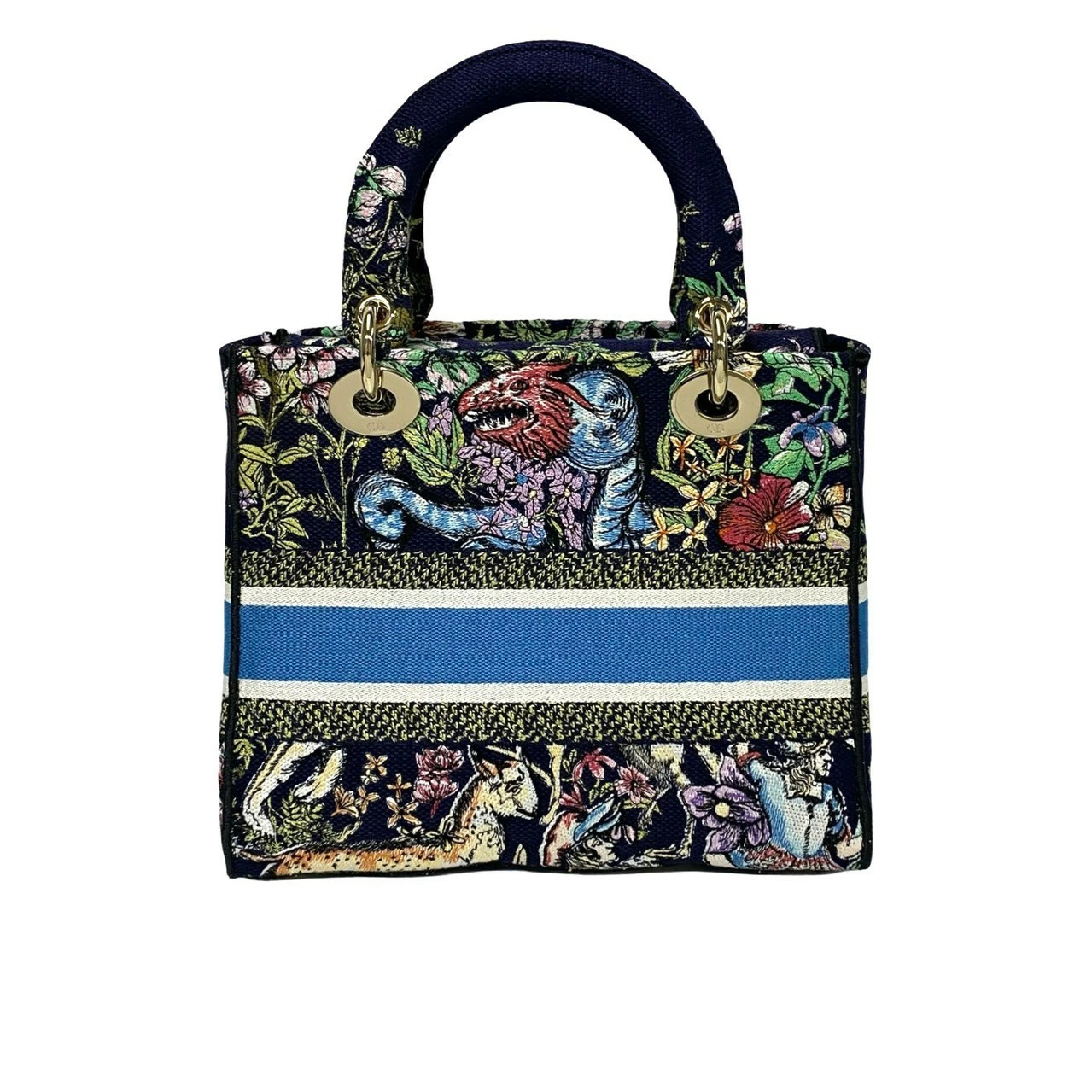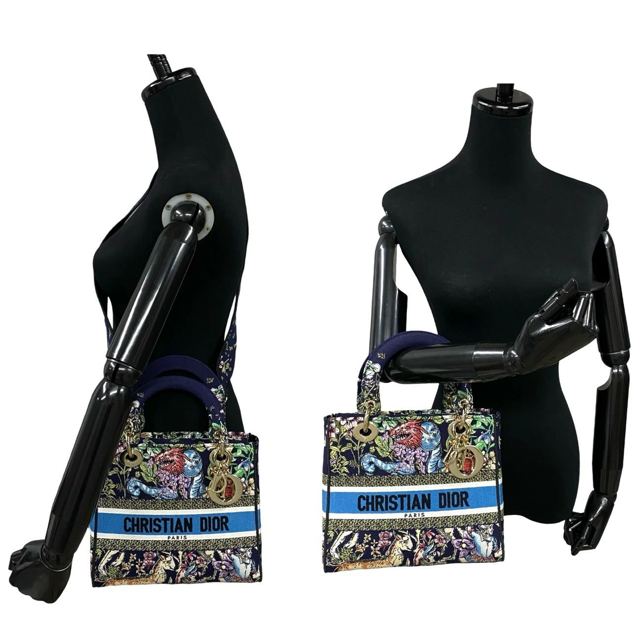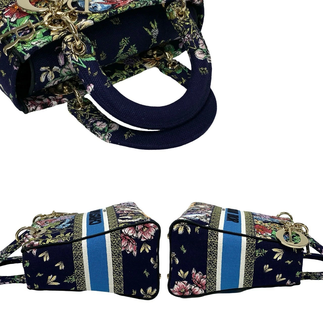 Earn double points! Unused, stored, rare Christian Dior Lady Dior Cannage canvas 2-way shoulder bag, blue, 40722 (pre-owned).