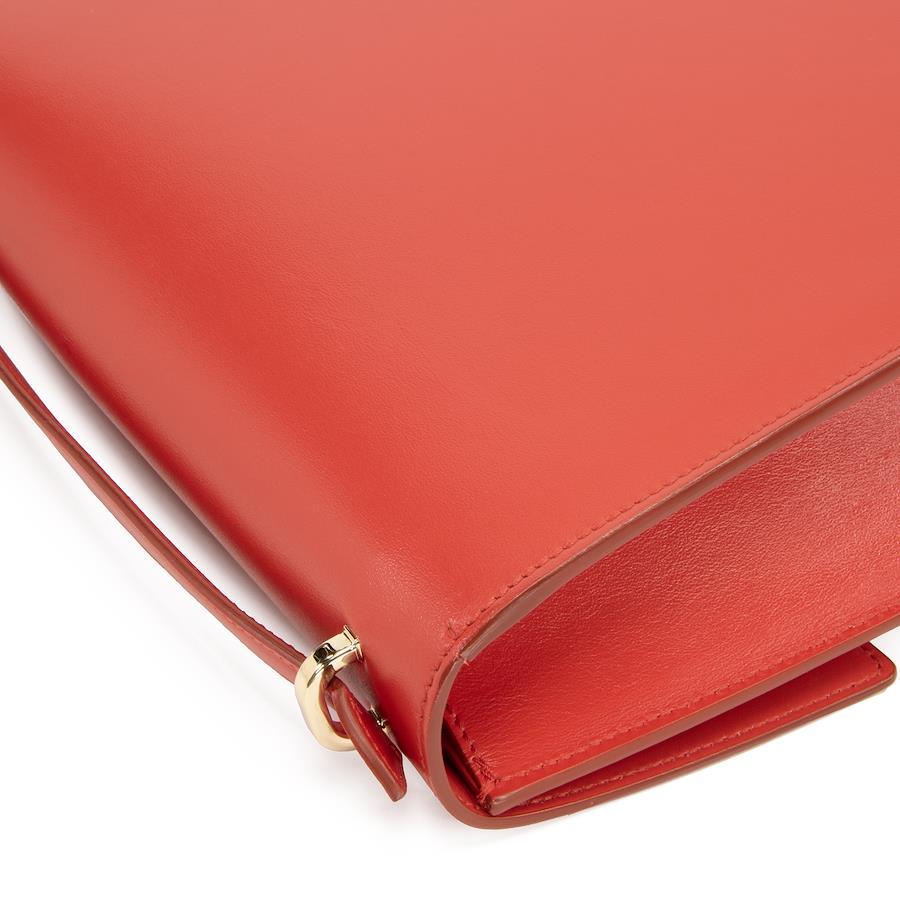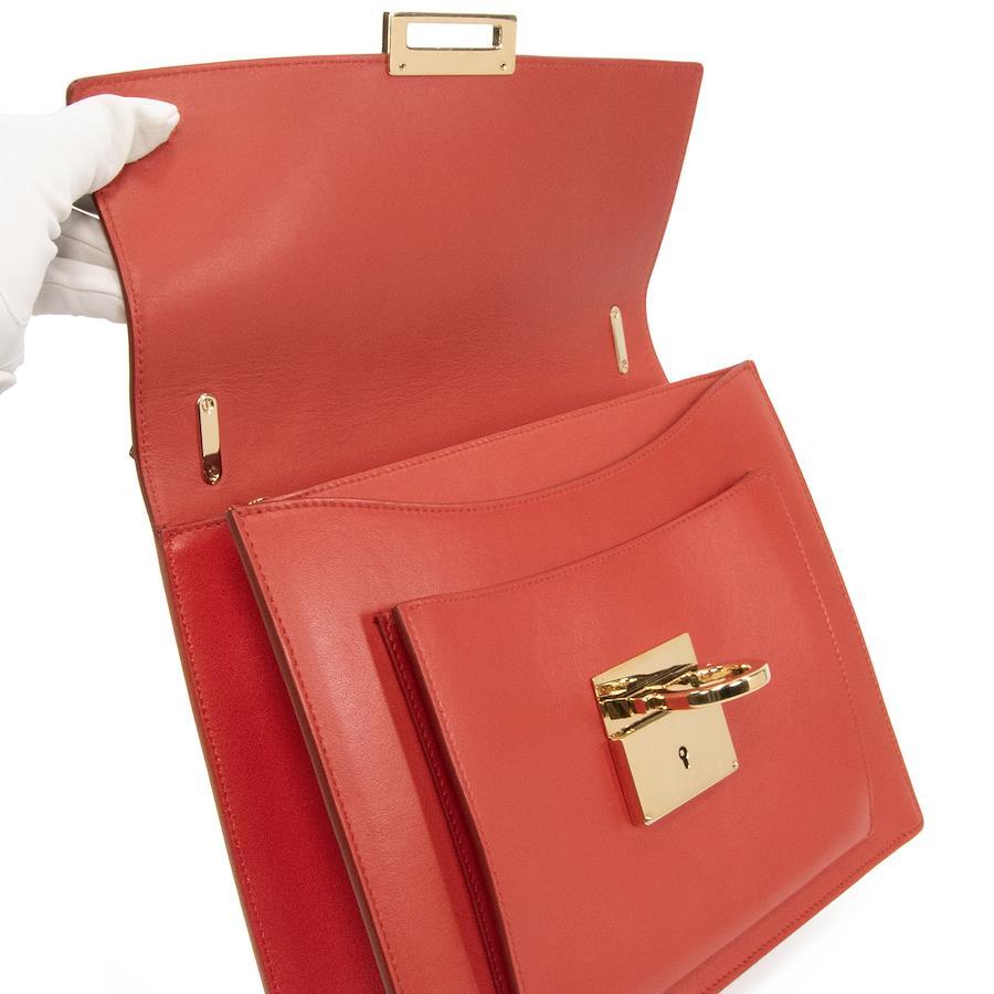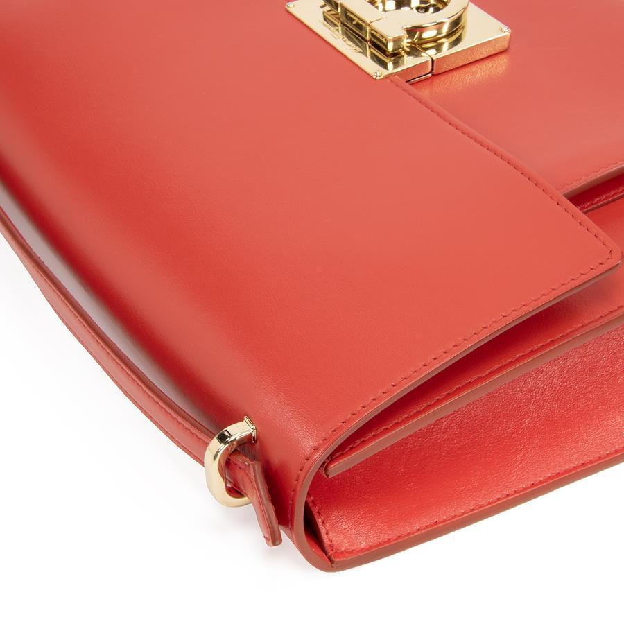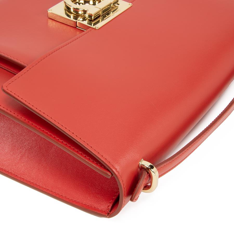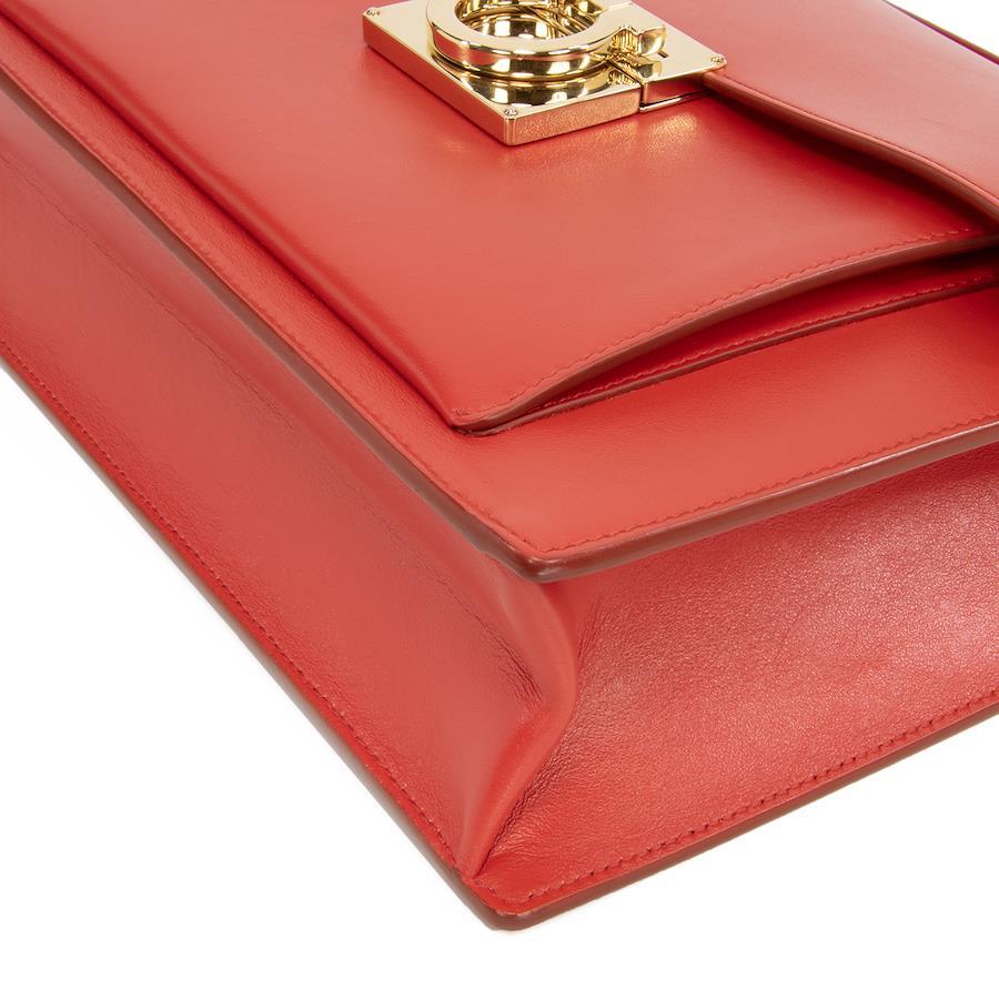 正品 Ferragamo 女士手提包,小牛皮 Gancini 皮革,紅色,流行且稀有,標誌,金色五金配件,獨立,結構精美,包包 F221