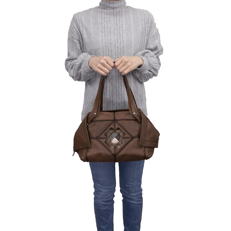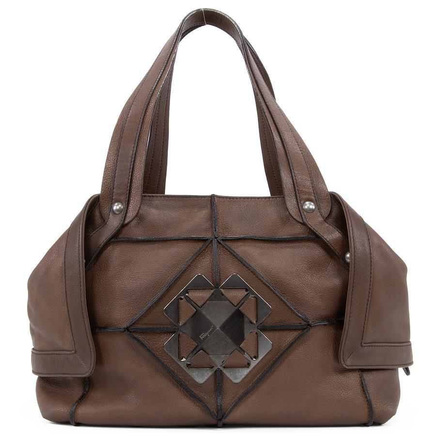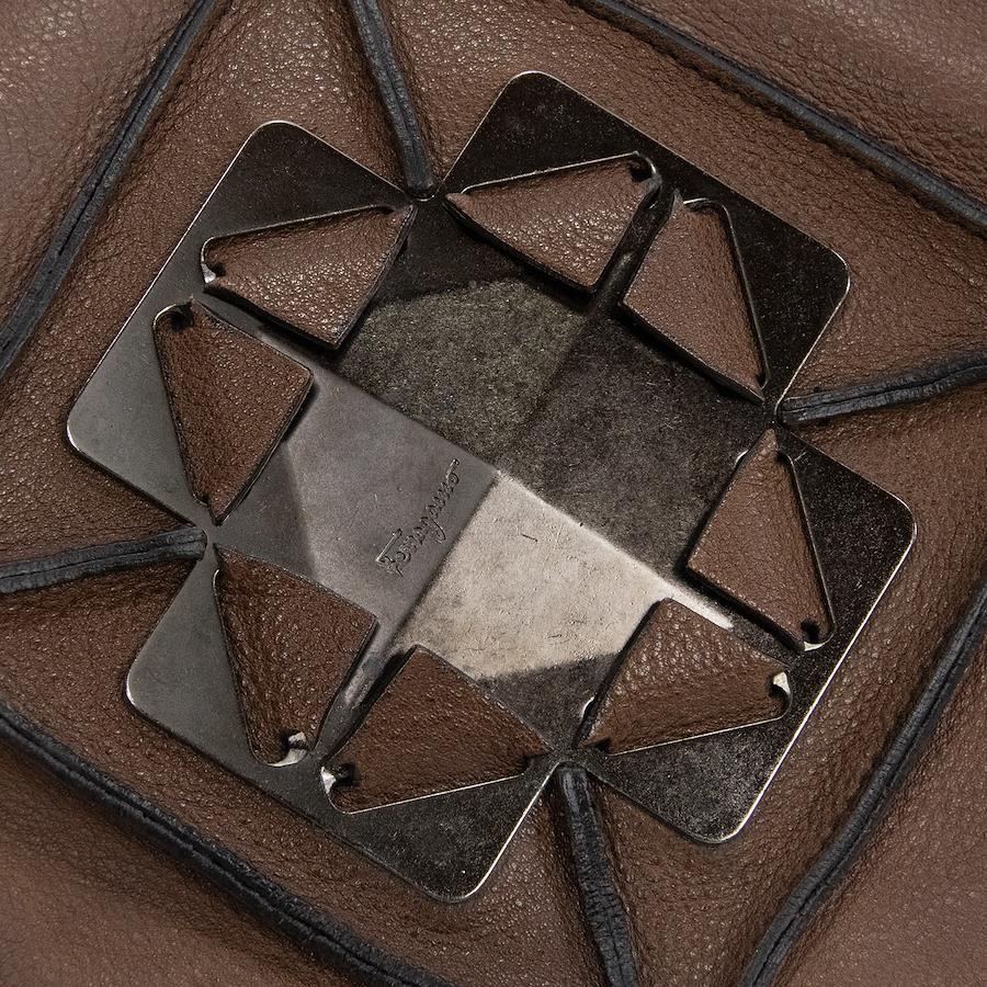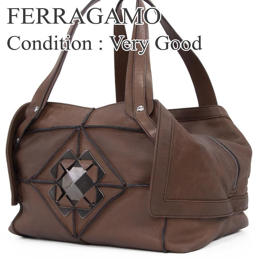 正品菲拉格慕女士手提包/半肩包,棕色小牛皮,稀有罕見,可獨立立起,飾有Gancini標誌、鑽石和槍色金屬配件。這款時尚高階的包款(售價430歐元)是每位時尚達人的必備單品。
