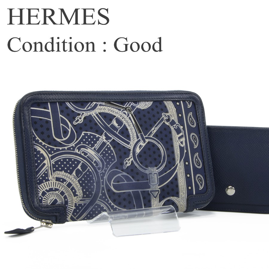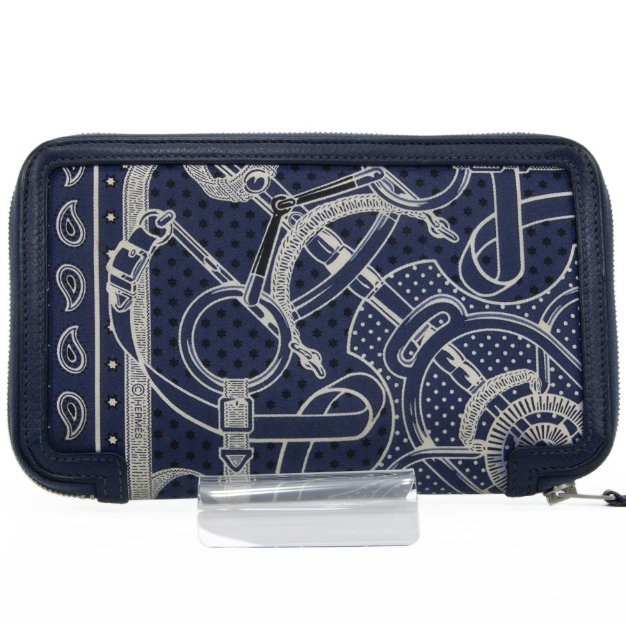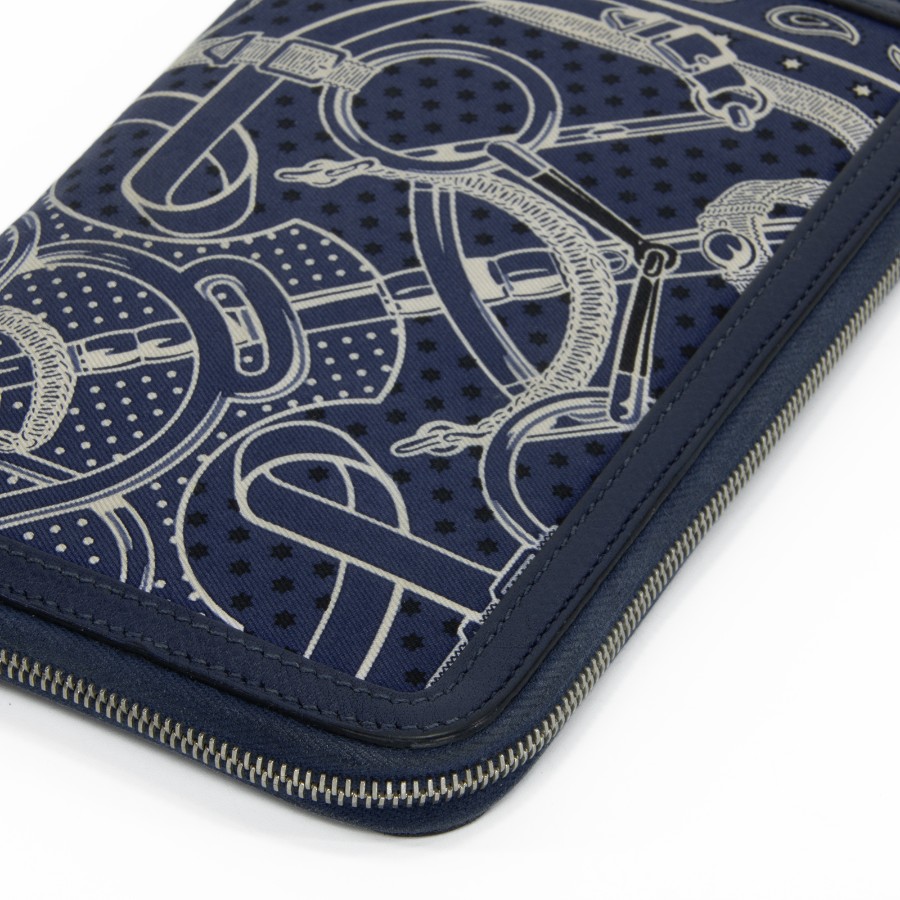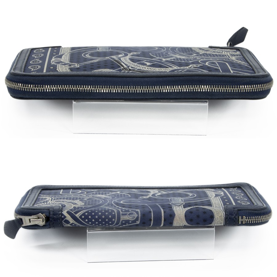 こちらは、エルメスのスカーフで大人気のデザイン「黄金の拍車」をあしらった、エルメスのソワクール 17・長財布でございます。