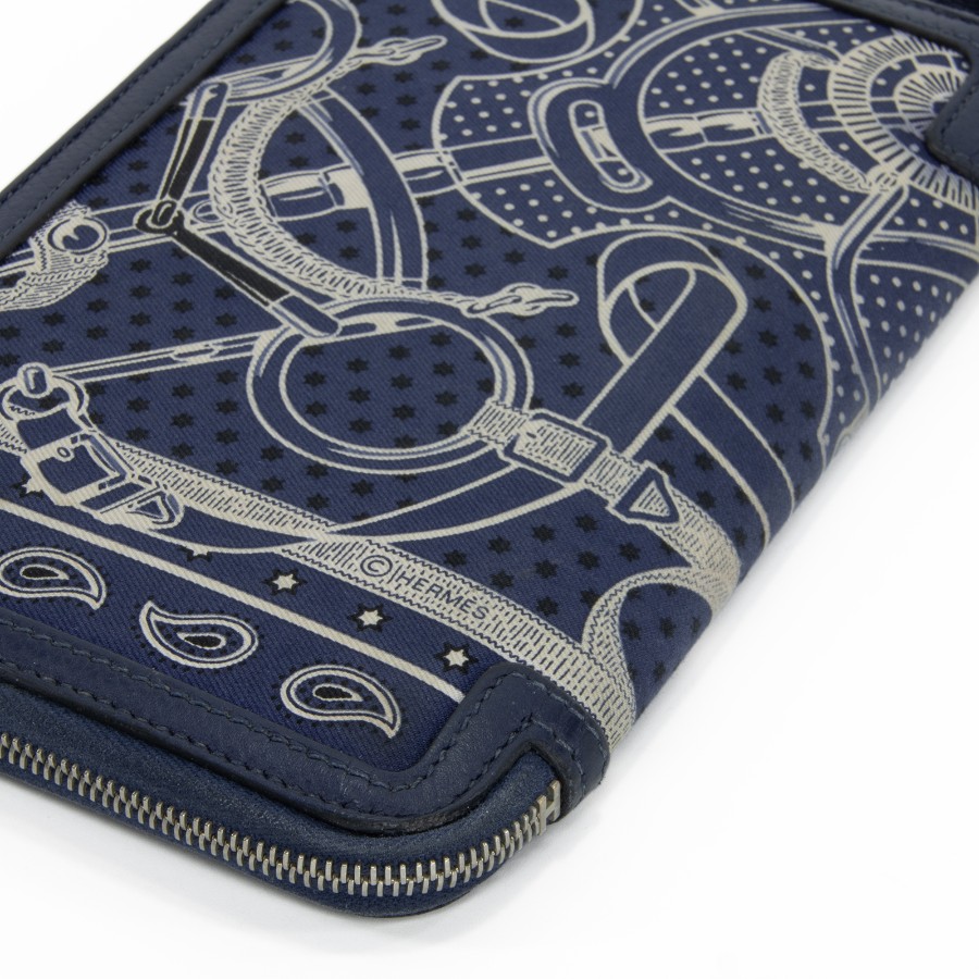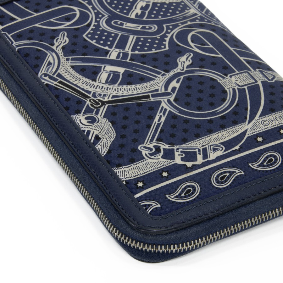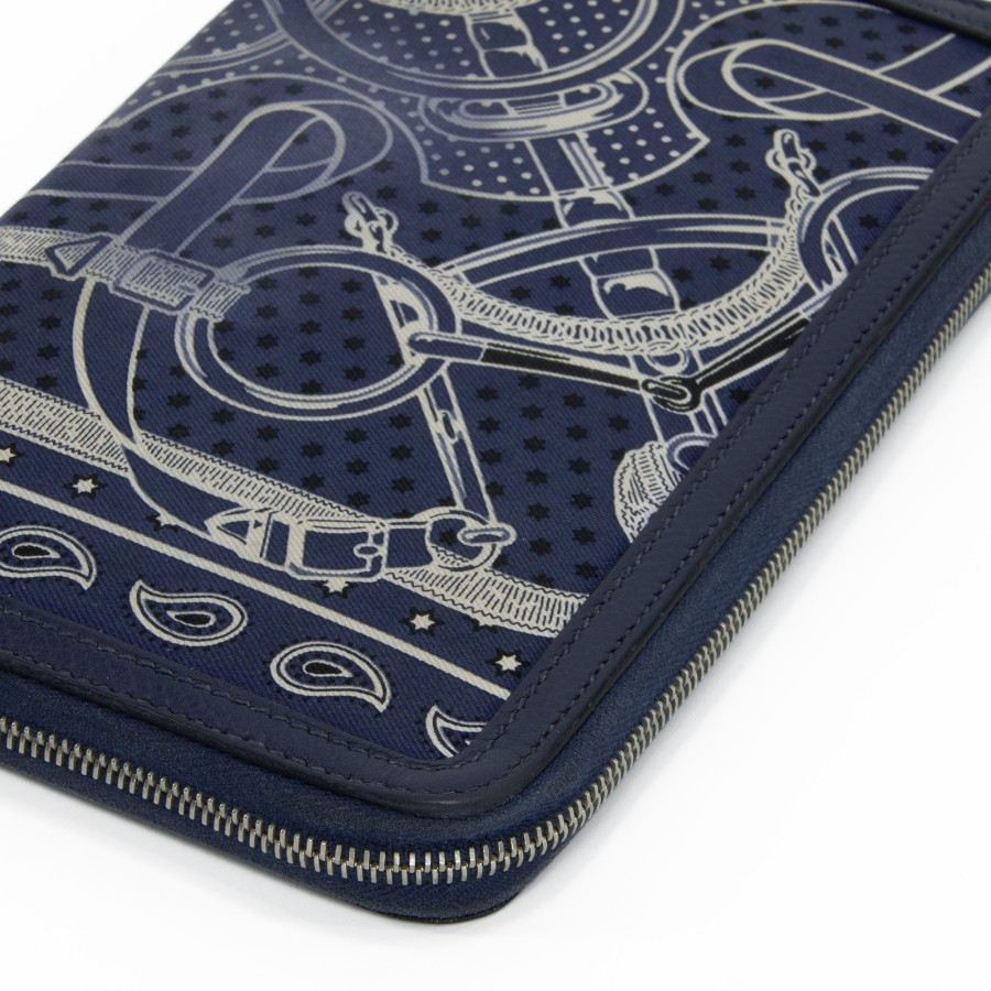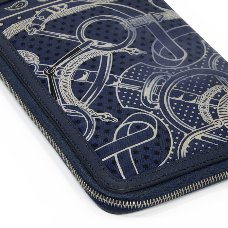 こちらは、エルメスのスカーフで大人気のデザイン「黄金の拍車」をあしらった、エルメスのソワクール 17・長財布でございます。