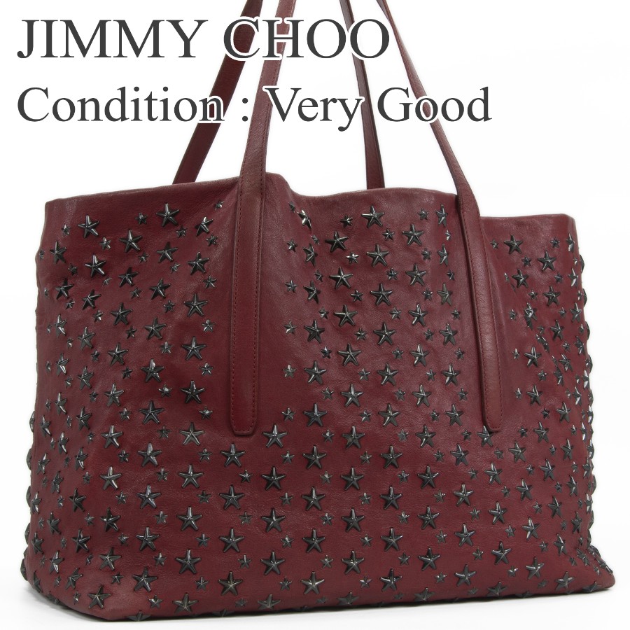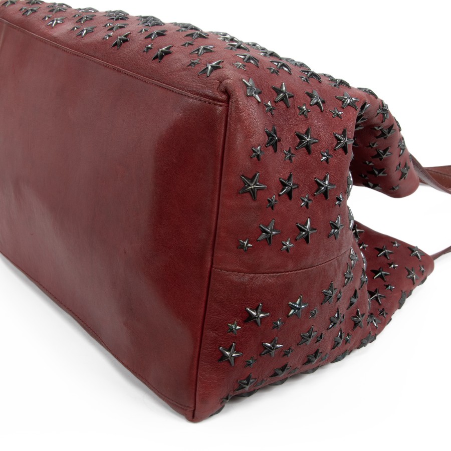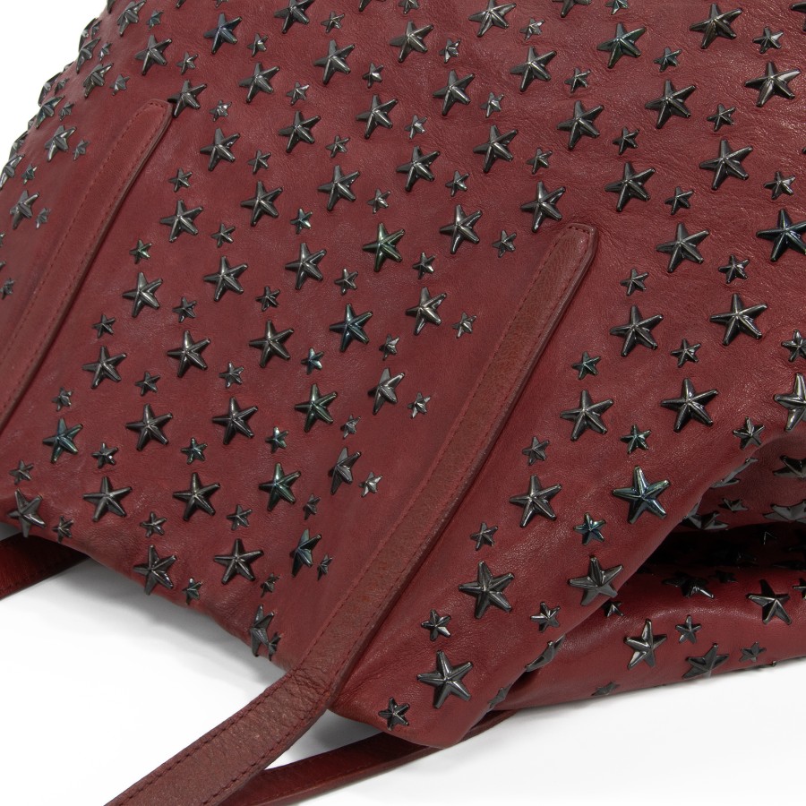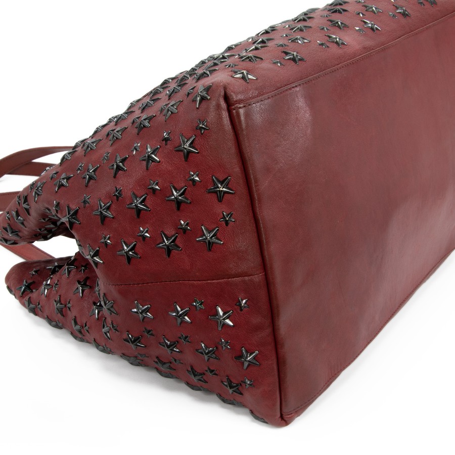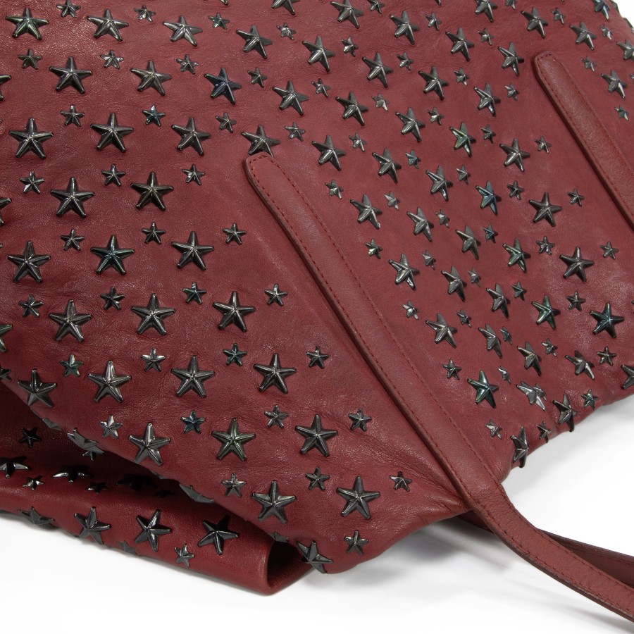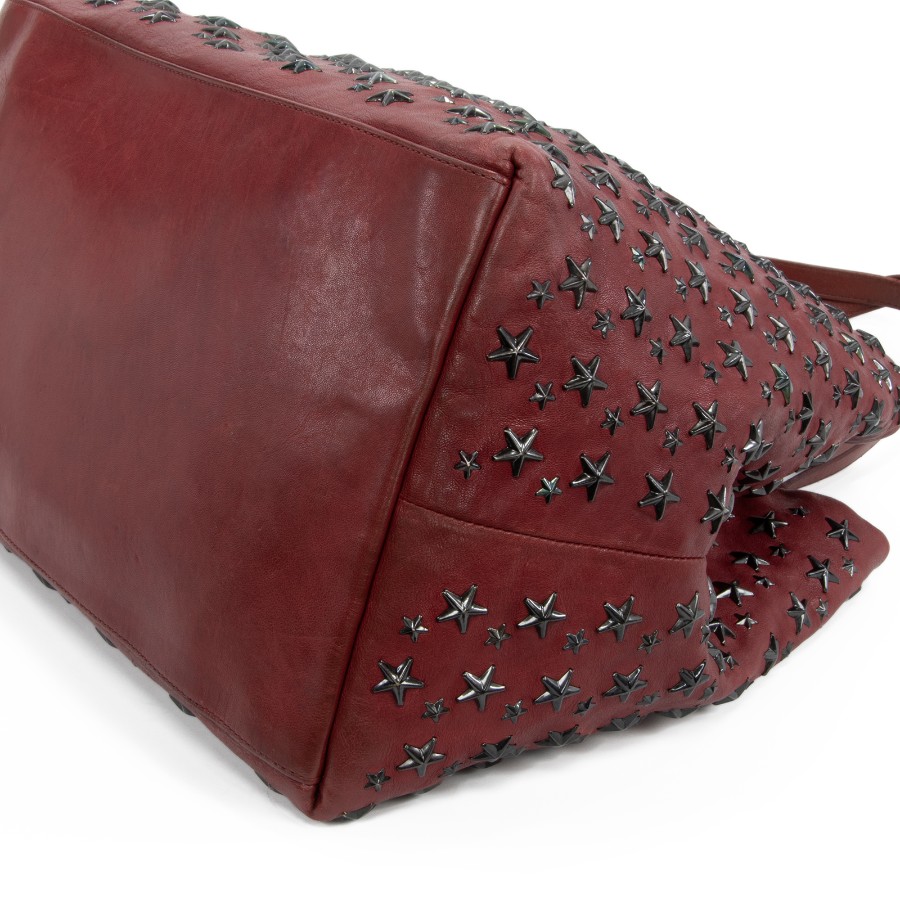 正品 JIMMY CHOO 手提包/托特包/肩包,男女通用,小牛皮材質,Pimlico L 碼,紅色,熱門稀有款式,Y2K、00 年代、90 年代風格,可容納 A4 紙張,旅行必備,大容量,飾有星形鉚釘,迷彩圖案,真皮材質,美觀大方,灰色五金配件,高端品牌,7