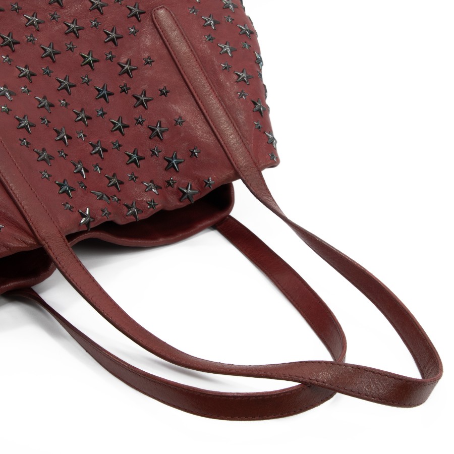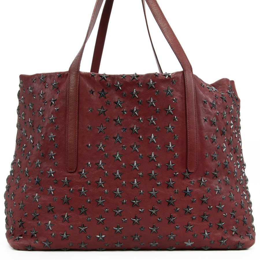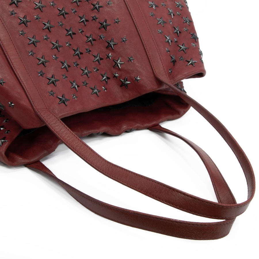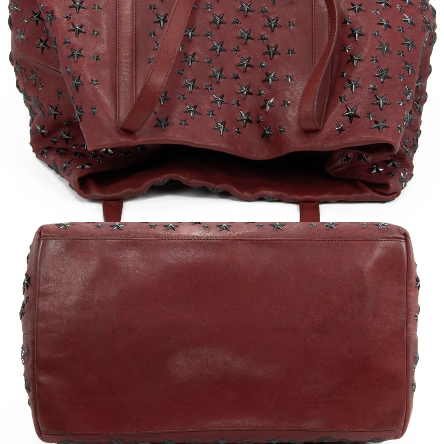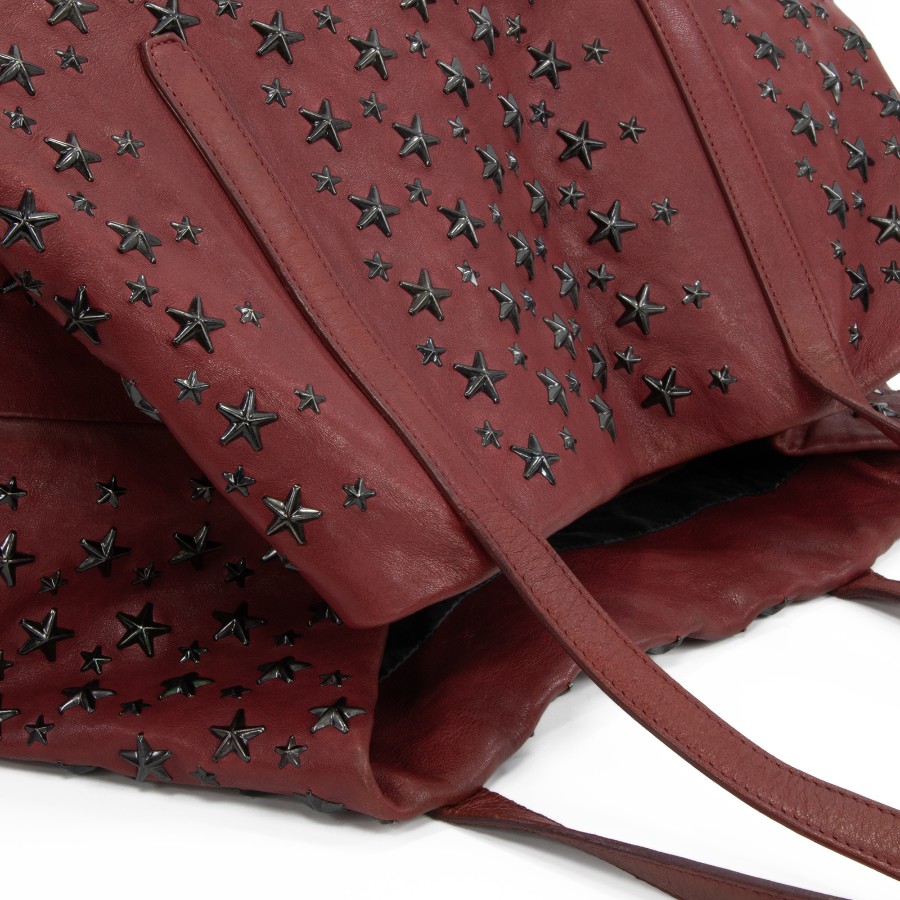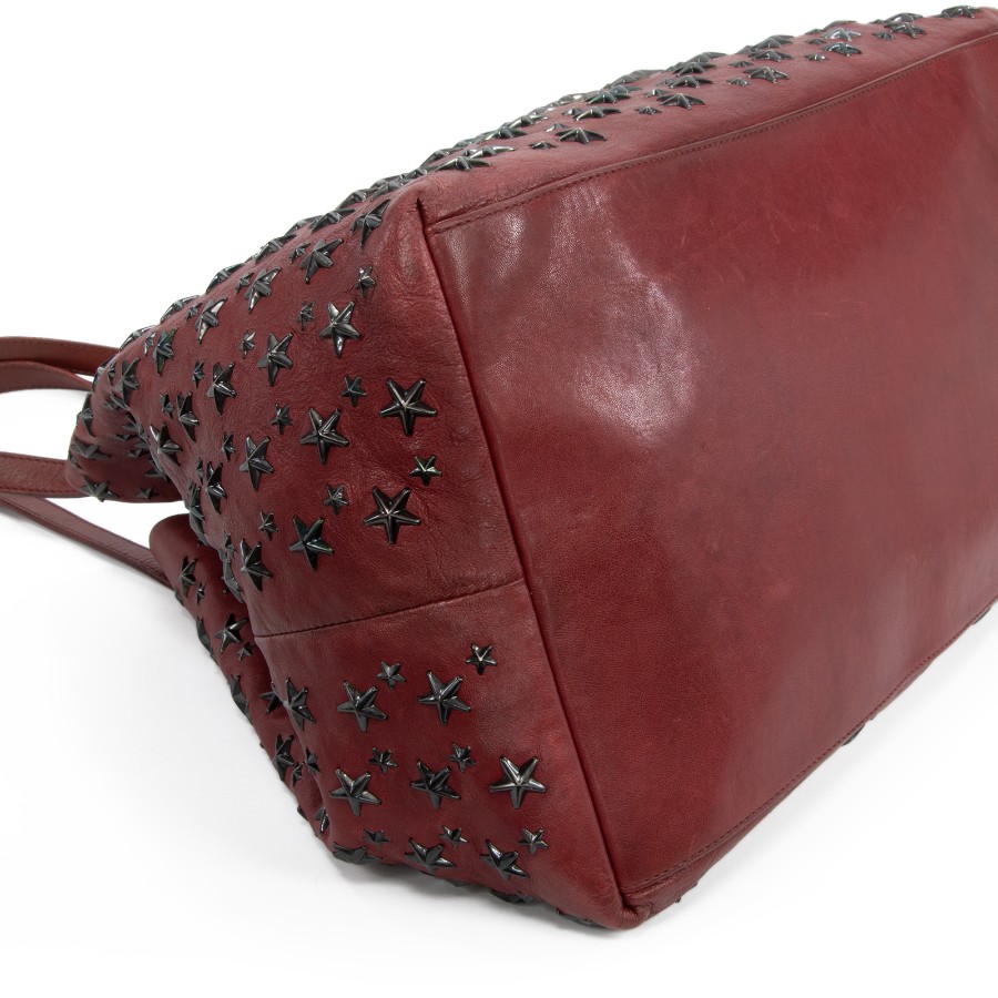 正品 JIMMY CHOO 手提包/托特包/肩包,男女通用,小牛皮材質,Pimlico L 碼,紅色,熱門稀有款式,Y2K、00 年代、90 年代風格,可容納 A4 紙張,旅行必備,大容量,飾有星形鉚釘,迷彩圖案,真皮材質,美觀大方,灰色五金配件,高端品牌,7