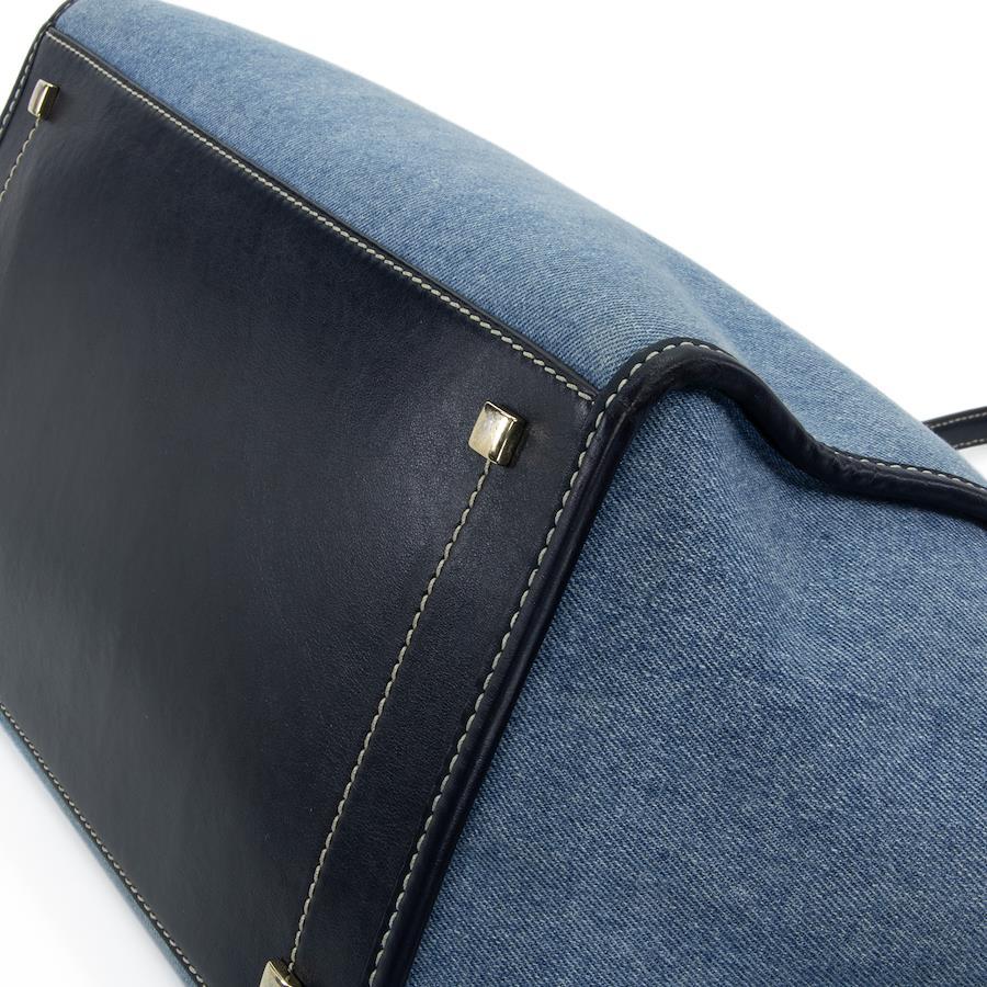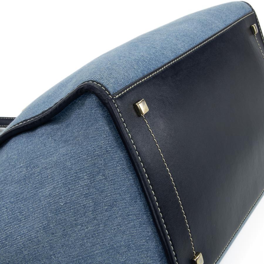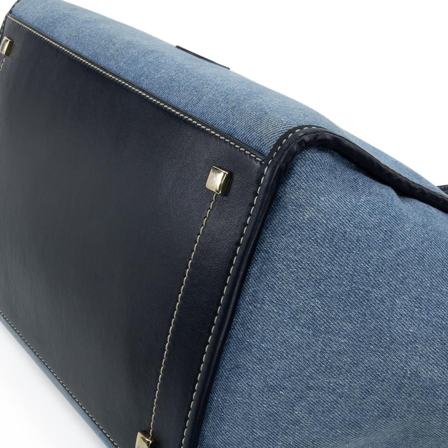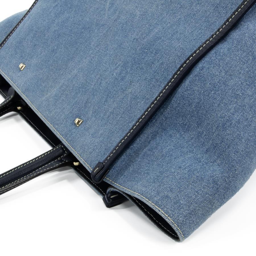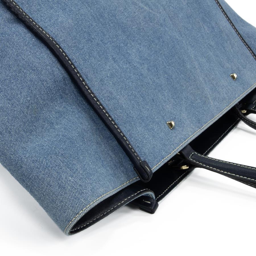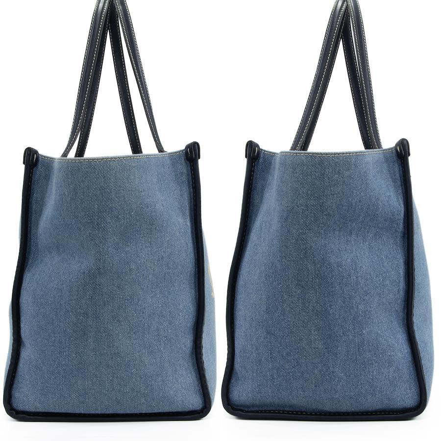 正品 JIMMY CHOO 手提包、托特包、肩背包,男女皆宜。 Varenne 托特包,淺藍色、米白色和藏藍色牛仔小牛皮材質。稀有獨特款式。可容納 A4 紙張,適合通勤和旅行。大容量,飾有超大 logo。真皮材質,搭配精美銀色五金配件。高端品牌。時尚包款。 B327