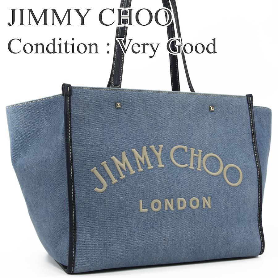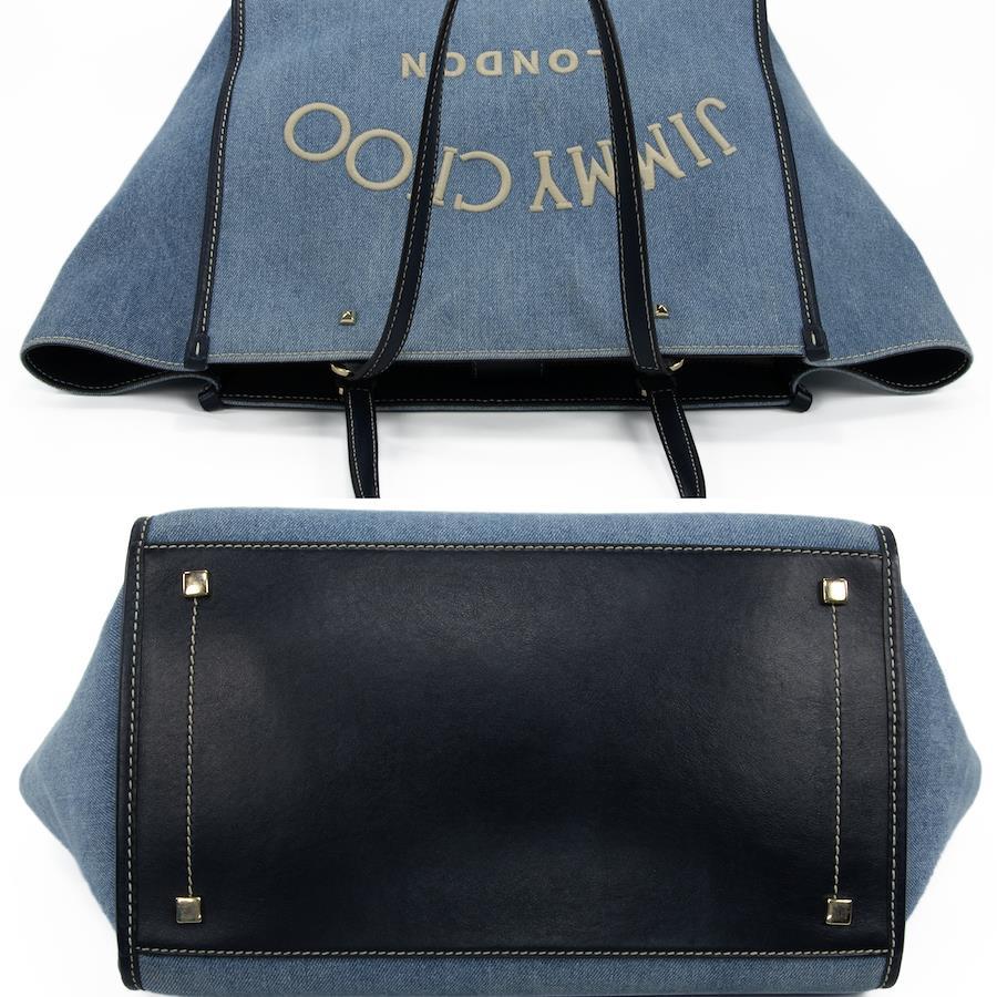 こちらは、デニム素材に特大のロゴが映えカジュアルな中にも気品が漂う、ジミーチュウのヴァレンヌ・トートバッグでございます。