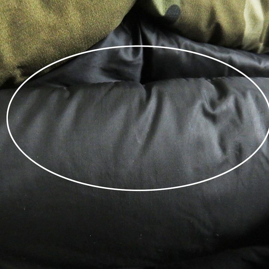 | 素材 (material) | 表地:ナイロン100% 中綿:ダウン72% :レーヨン20% :フェザー8% 裏地:ナイロン100% | ||||||||||||||||