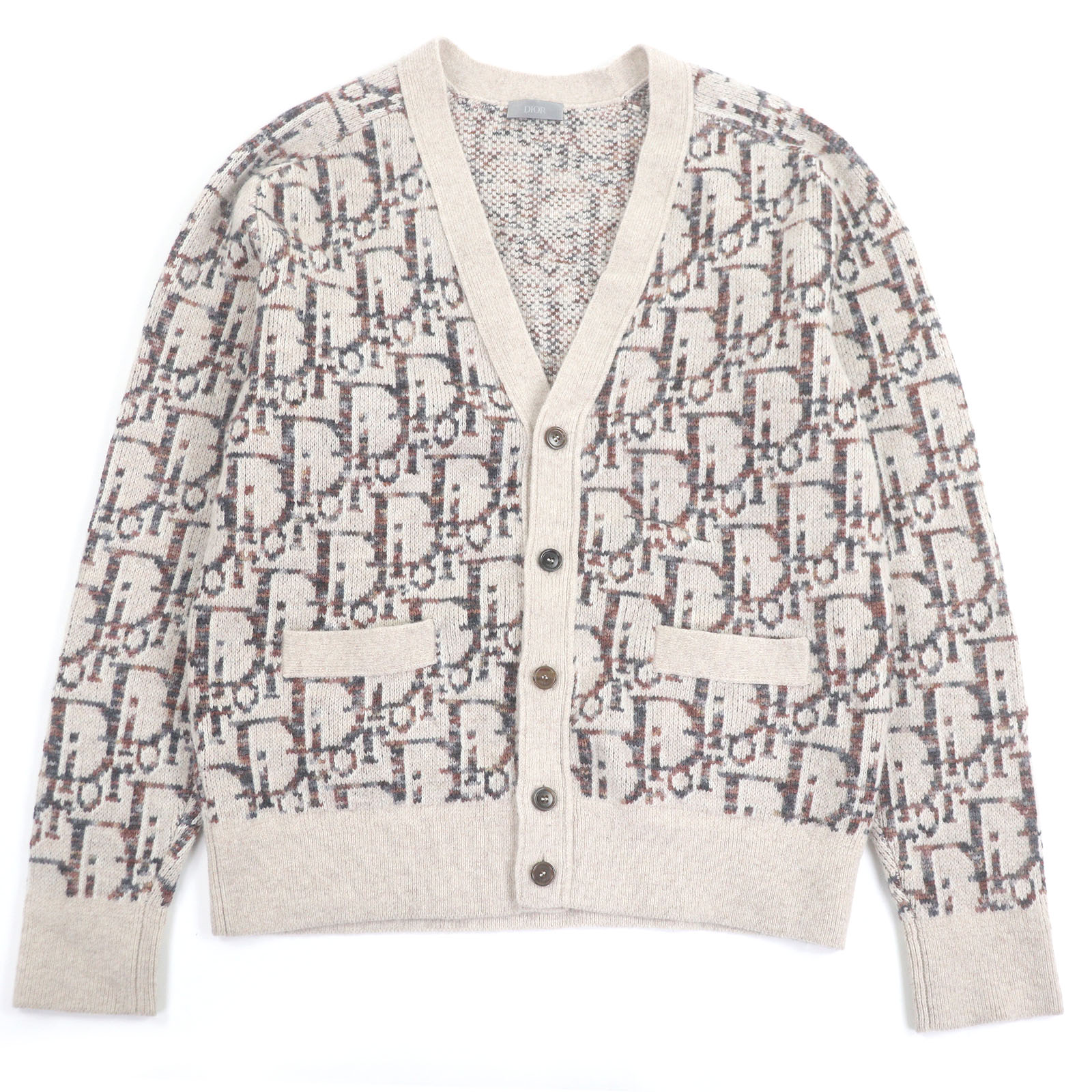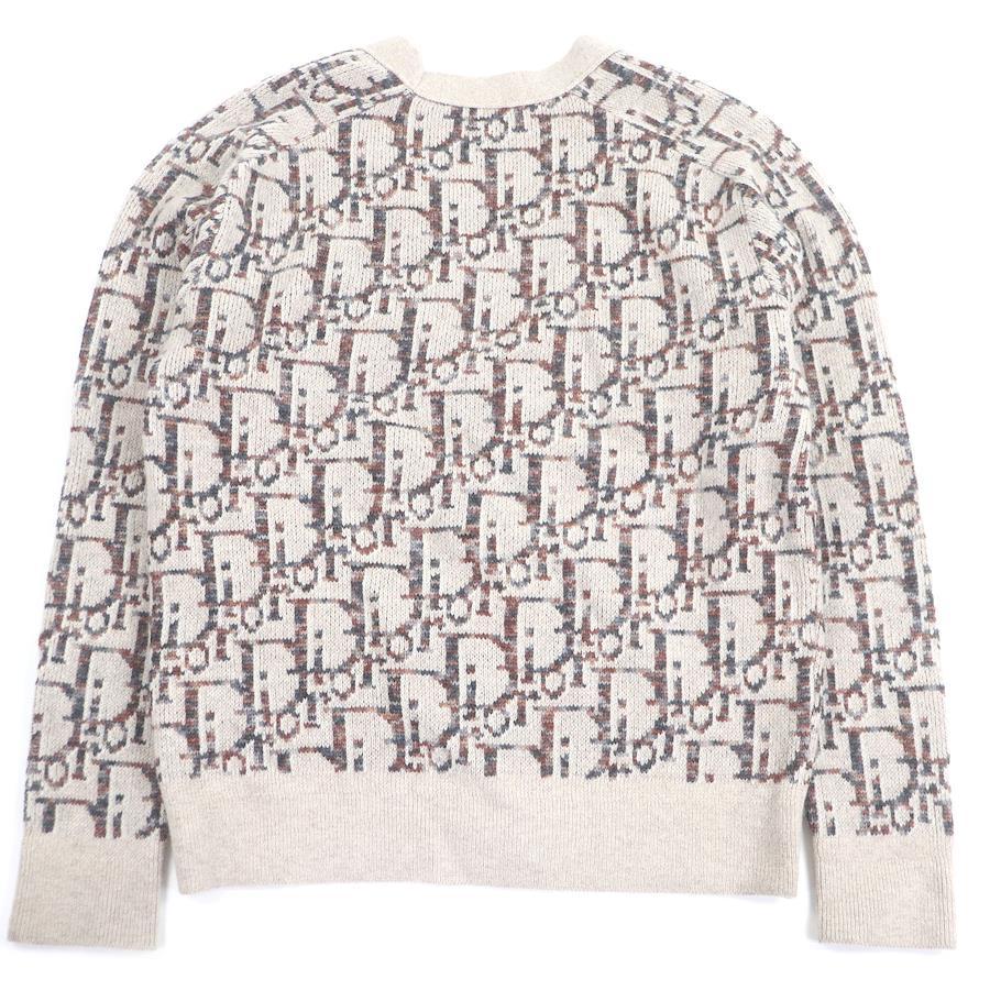 Excellent condition DIOR Homme 213M233AT662 100% wool oblique all-over print knit cardigan, beige, size L, made in Italy, authentic, men's [pre-owned]