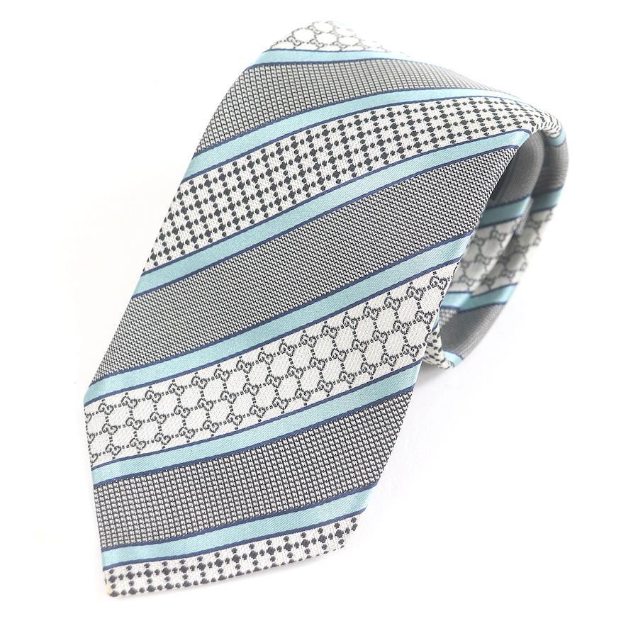 Excellent condition GUCCI silk and cupro interlocking G regimental stripe tie, black, with box, made in Italy, men's [pre-owned]