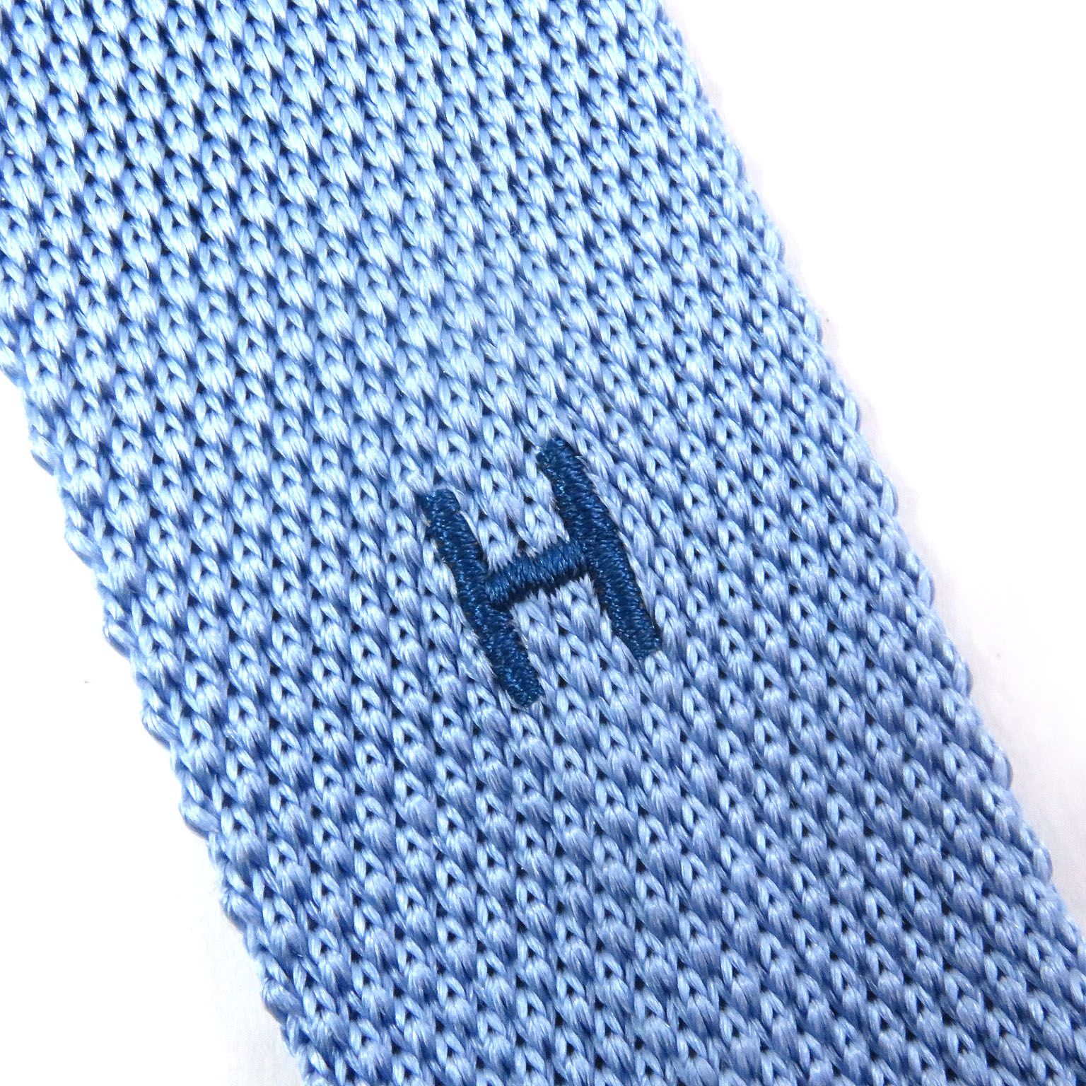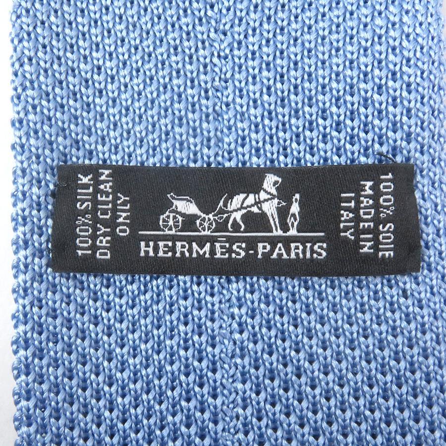 Excellent condition Hermès Tête à Tête Equestre silk horse print H logo knit tie, light blue, with box, made in Italy, men's [pre-owned]