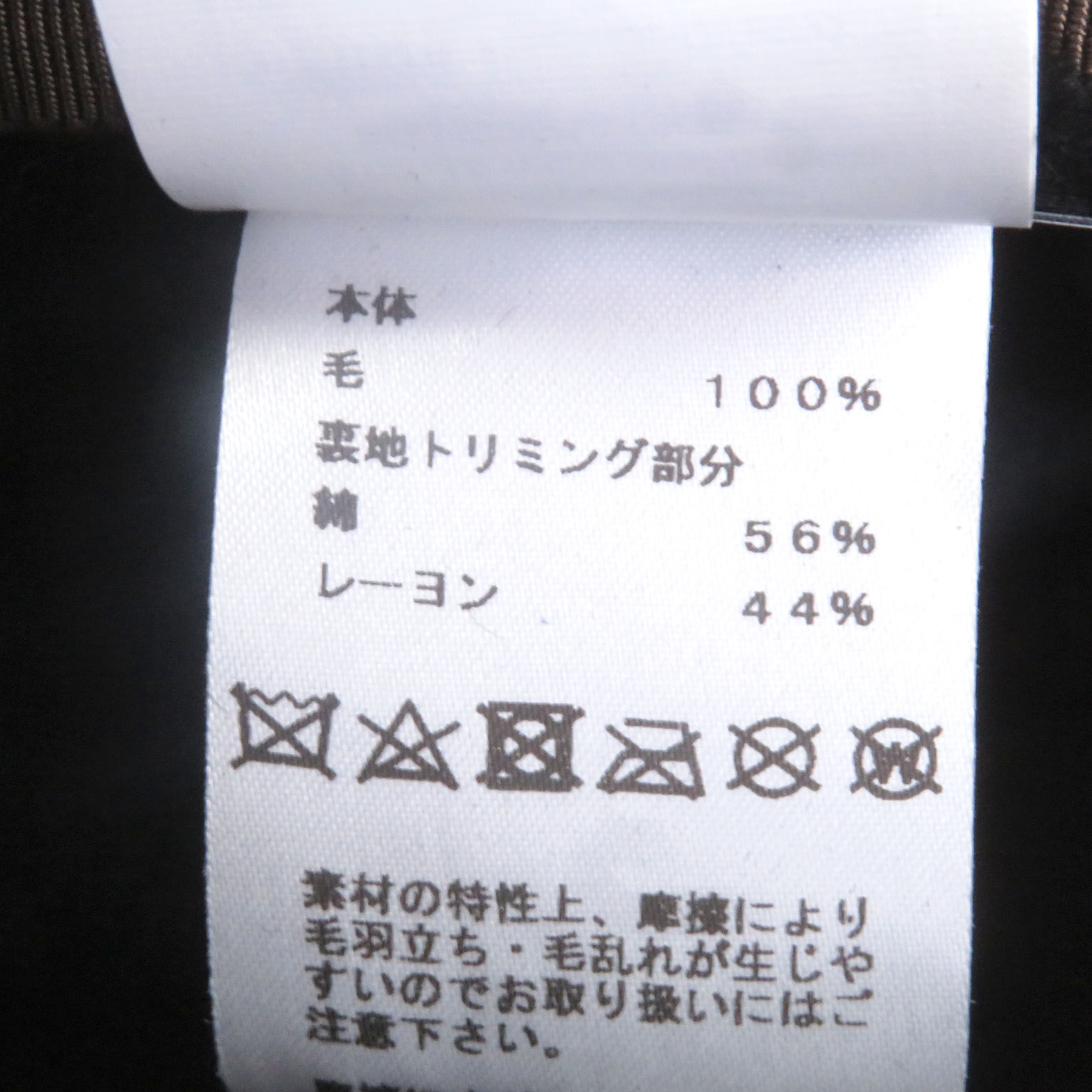 | 素材 (material) | 本体:ラパン100% 裏地:コットン56% :レーヨン44」% | ||||||||||||||||
