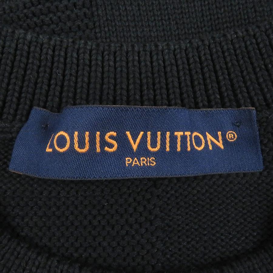 Excellent condition LOUIS VUITTON 2024 Spring/Summer Damier crew neck long-sleeve knit sweater, black, size M, authentic, made in Italy, men's [pre-owned]