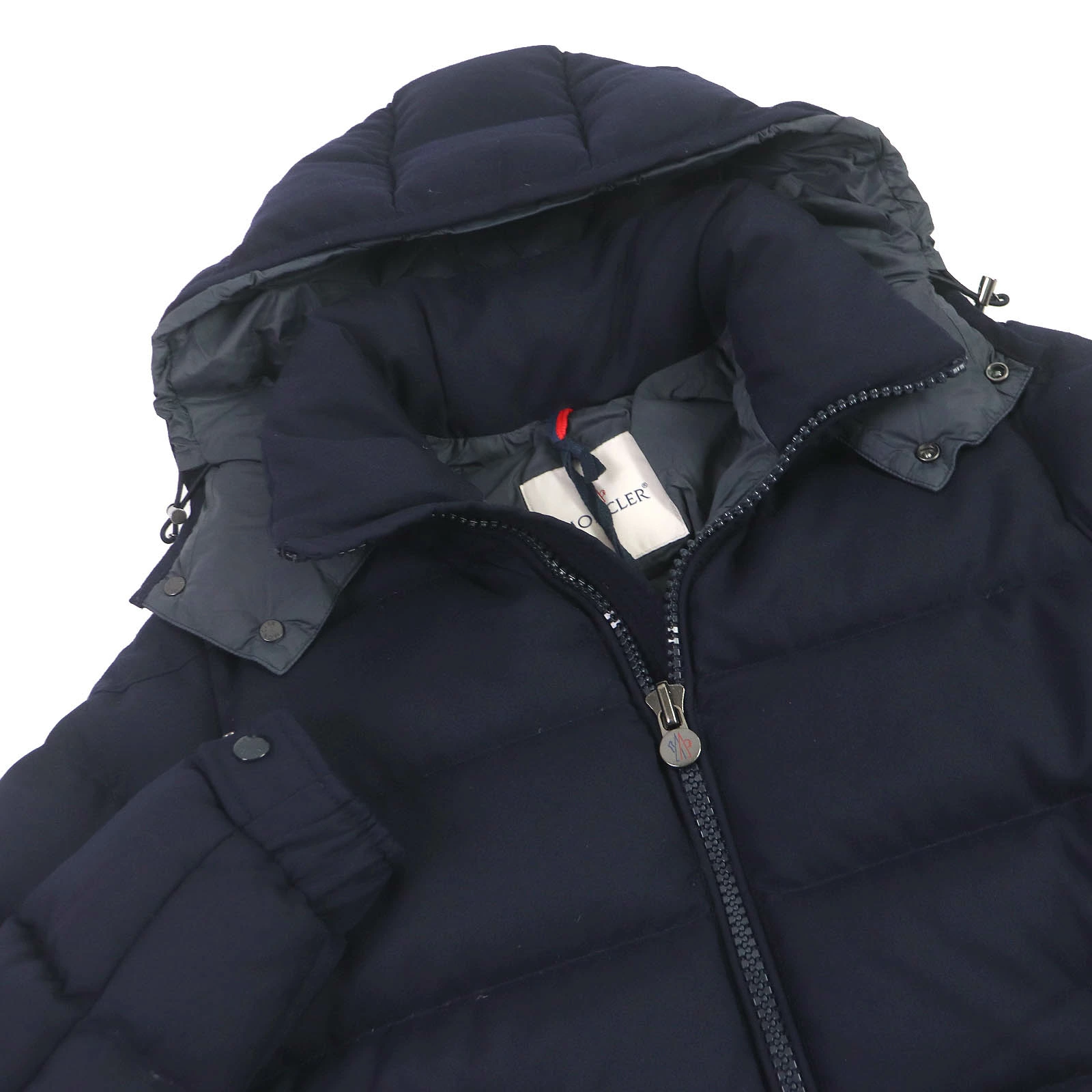 Excellent condition: MONCLER MONTGENEVRE wool hooded down jacket with logo patch, navy, size 0, authentic Japanese domestic product, men's, pre-owned.