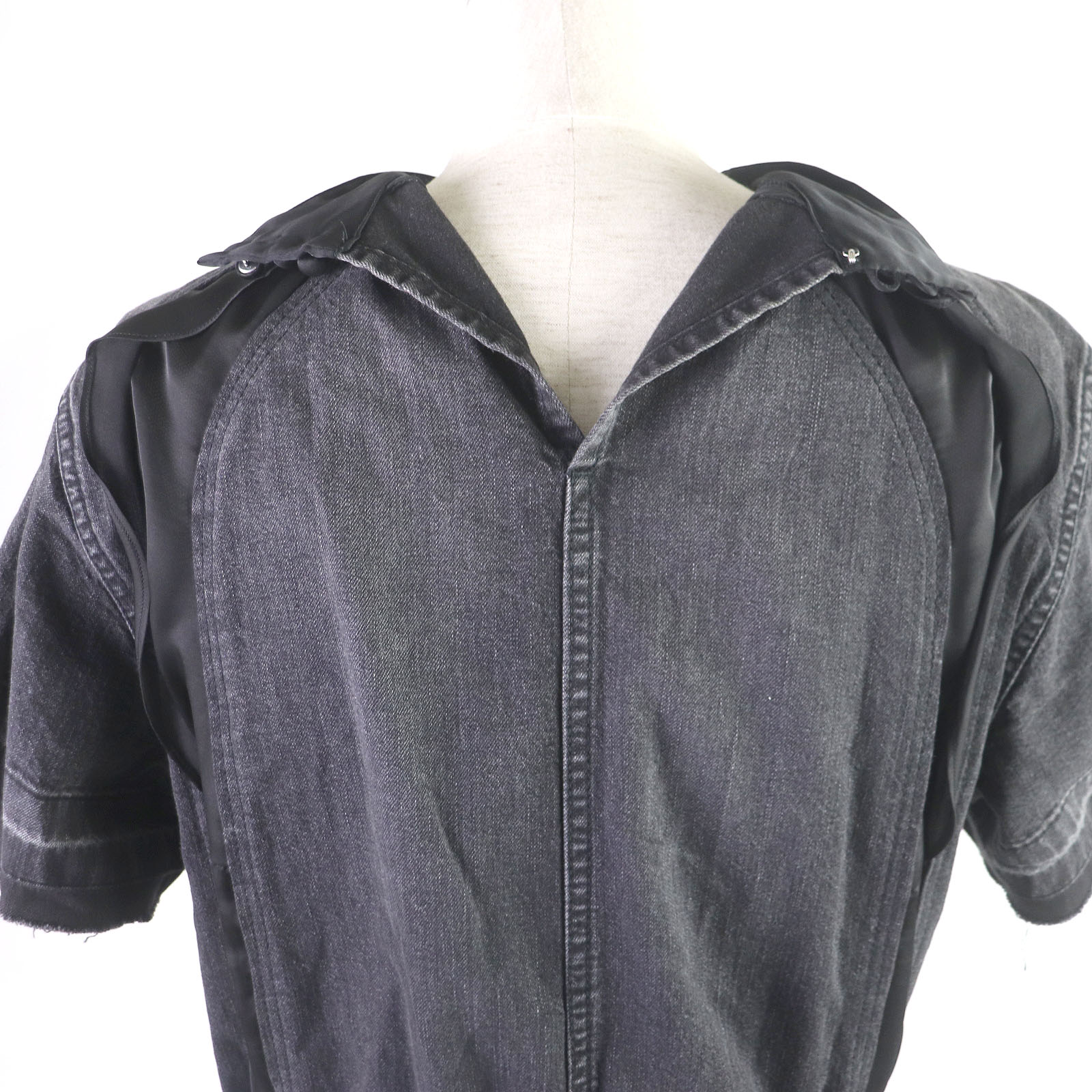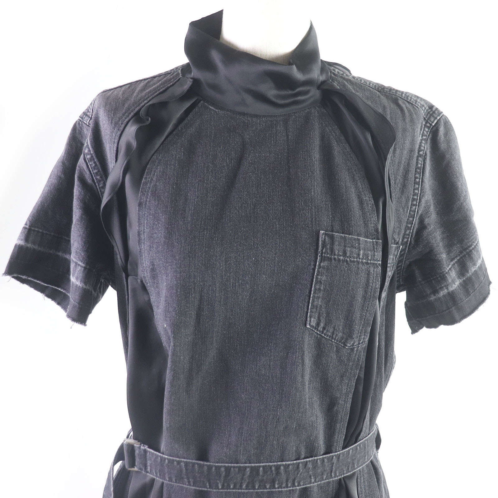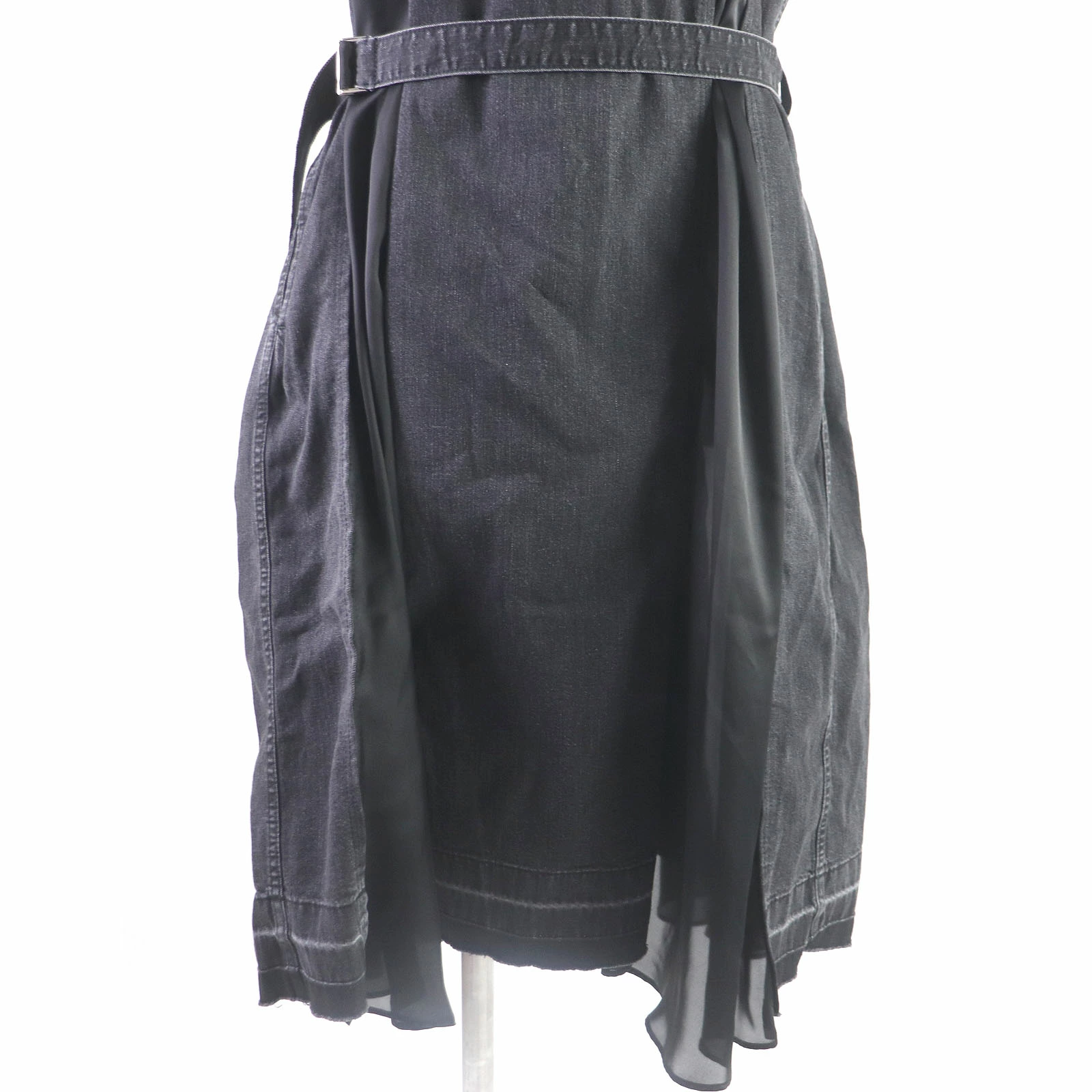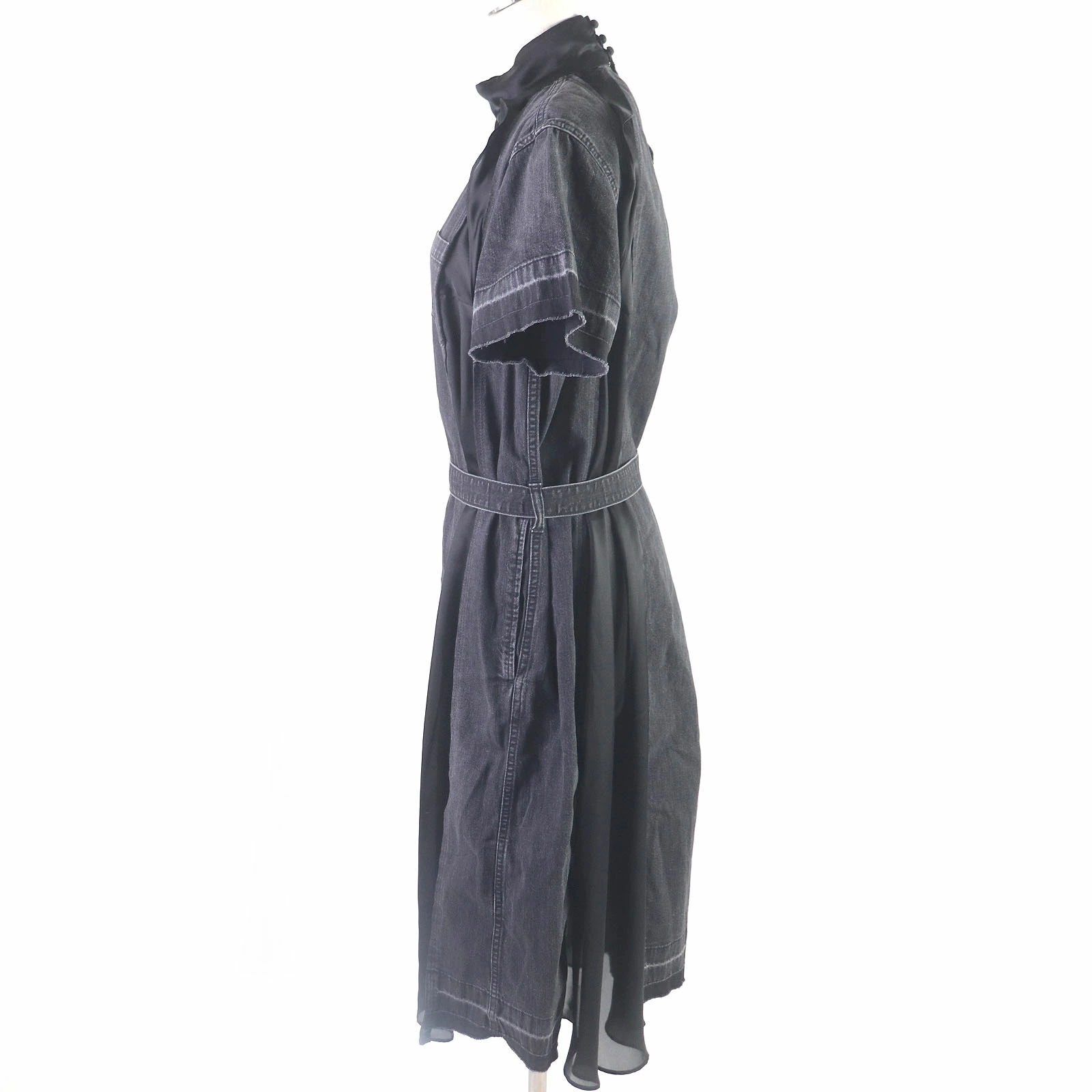 Excellent condition: Sacai 19-04572 Cotton Chiffon Short Sleeve Denim Dress, Black, Size 1, Made in Japan, Authentic, Women's [Pre-owned]