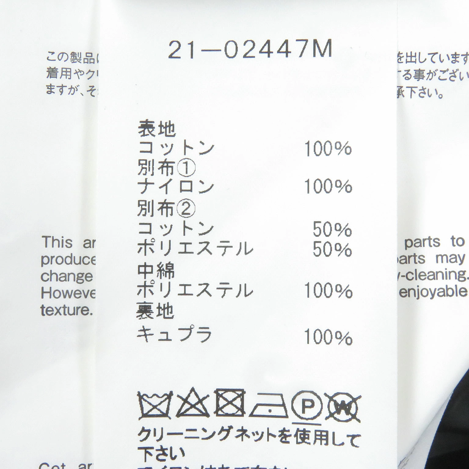 | 素材 (material) | 本体:コットン100% 一部:ナイロン100% :コットン50% :ポリエステル50% 裏地:キュプラ100% 中綿:ポリエステル100% | ||||||||||||||||