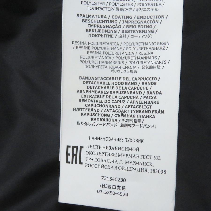 | 素材 (material) | 表地:ポリエステル100% 一部:ウール85% :ポリエステル10% :ポリアミド5% 裏地:ナイロン100% 中綿:ダウン80% :フェザー20% | ||||||||||||||||