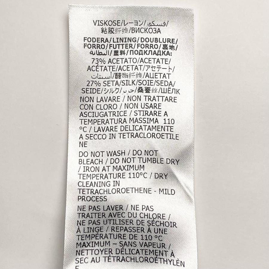| 素材 (material) | 本体:ウール68% :シルク32% 一部:アクリル50% :ビスコース50% 裏地:アセテート73% :シルク27% | ||||||||||||||||
