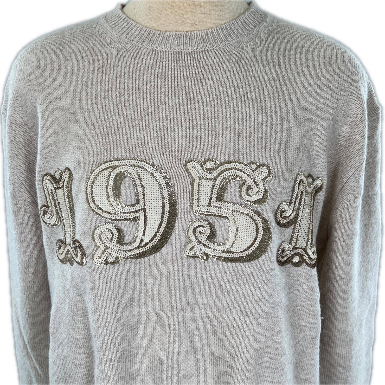 Excellent condition: Max Mara 2024 Autumn/Winter wool/cashmere blend long-sleeve knit with sequin details, beige, size S, authentic, women's [pre-owned]