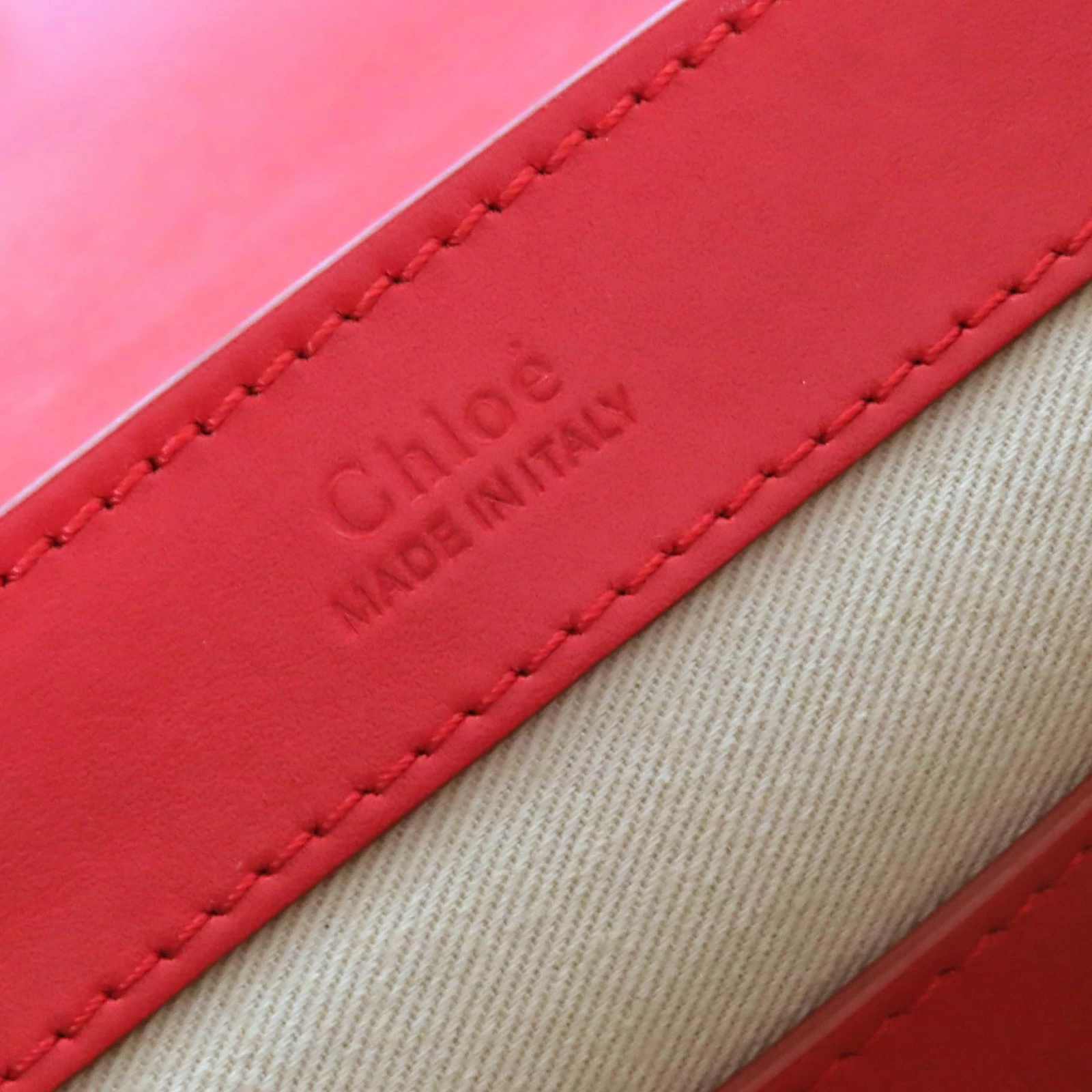 Excellent condition: Chloe CHC19SS192A37640 C logo suede leather and leather chain shoulder bag in red with gold hardware. Includes dust bag. Made in Italy. Pre-owned.
