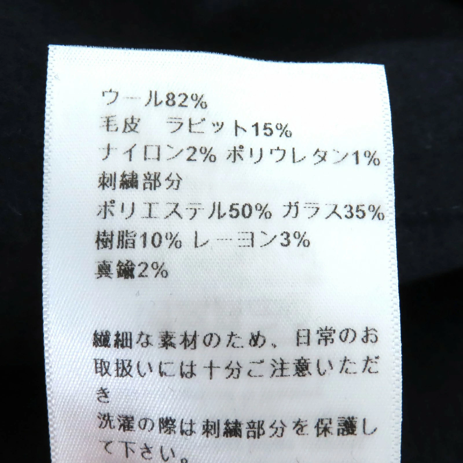 | 素材 (material) | 本体:ウール82% :ラビット15% :ナイロン2% :ポリウレタン1% 一部:ポリエステル50% :ガラス35% :合成樹脂10% :レーヨン3% :真鍮2% | ||||||||||||||||