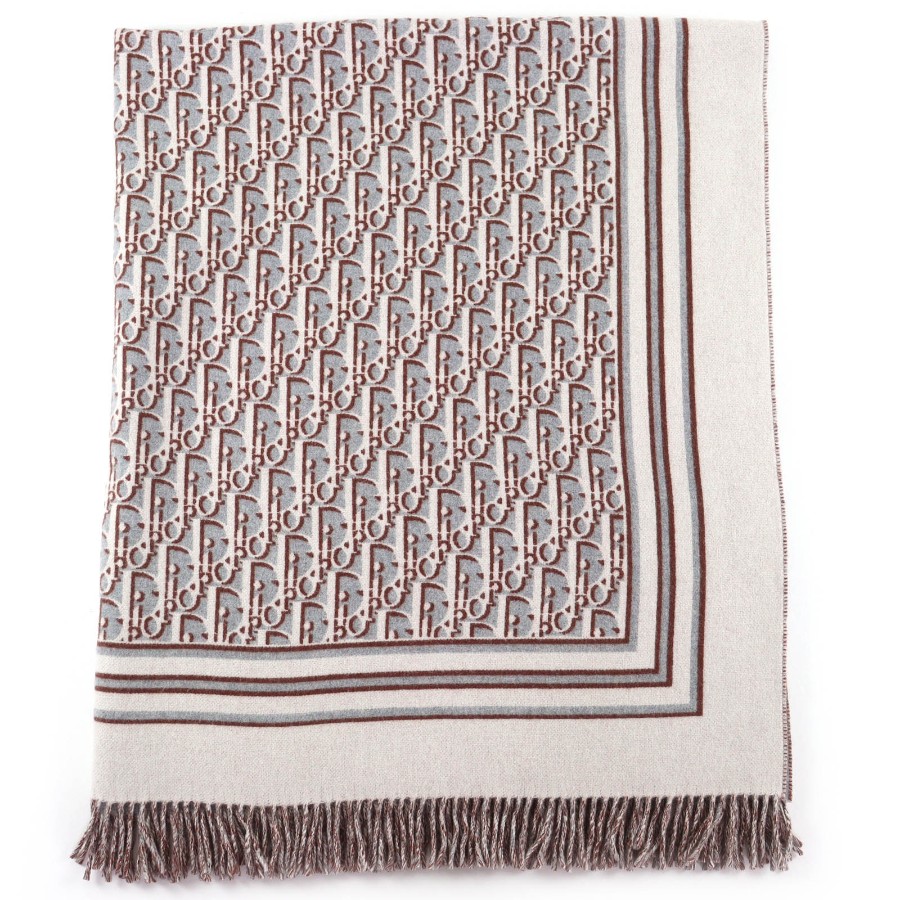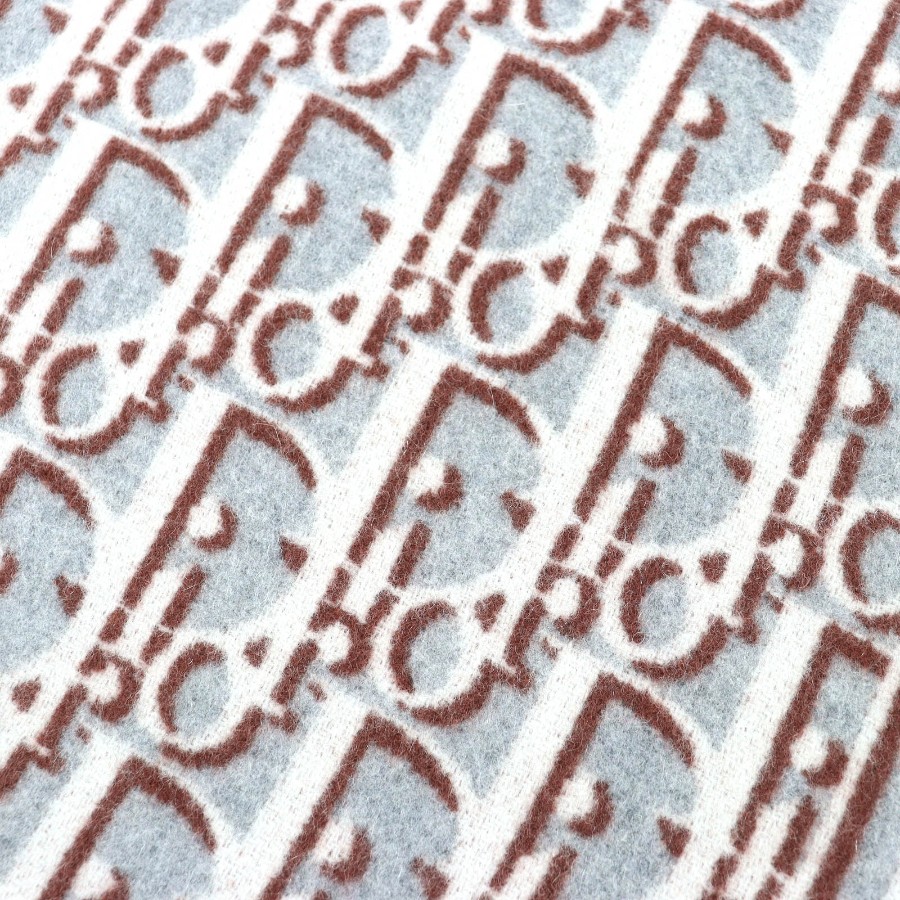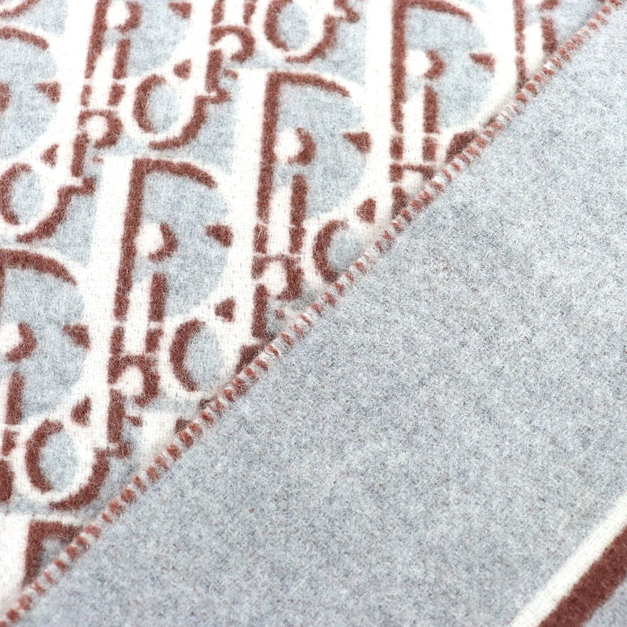 Excellent condition △ DIOR Dior Homme 34Z0002A0900 Wool Cashmere Oblique Fringe Large Blanket/Throw, Gray Beige Brown, 181 x 145 cm, Made in Italy, Men's/Women's, Recommended ◎ [Used]