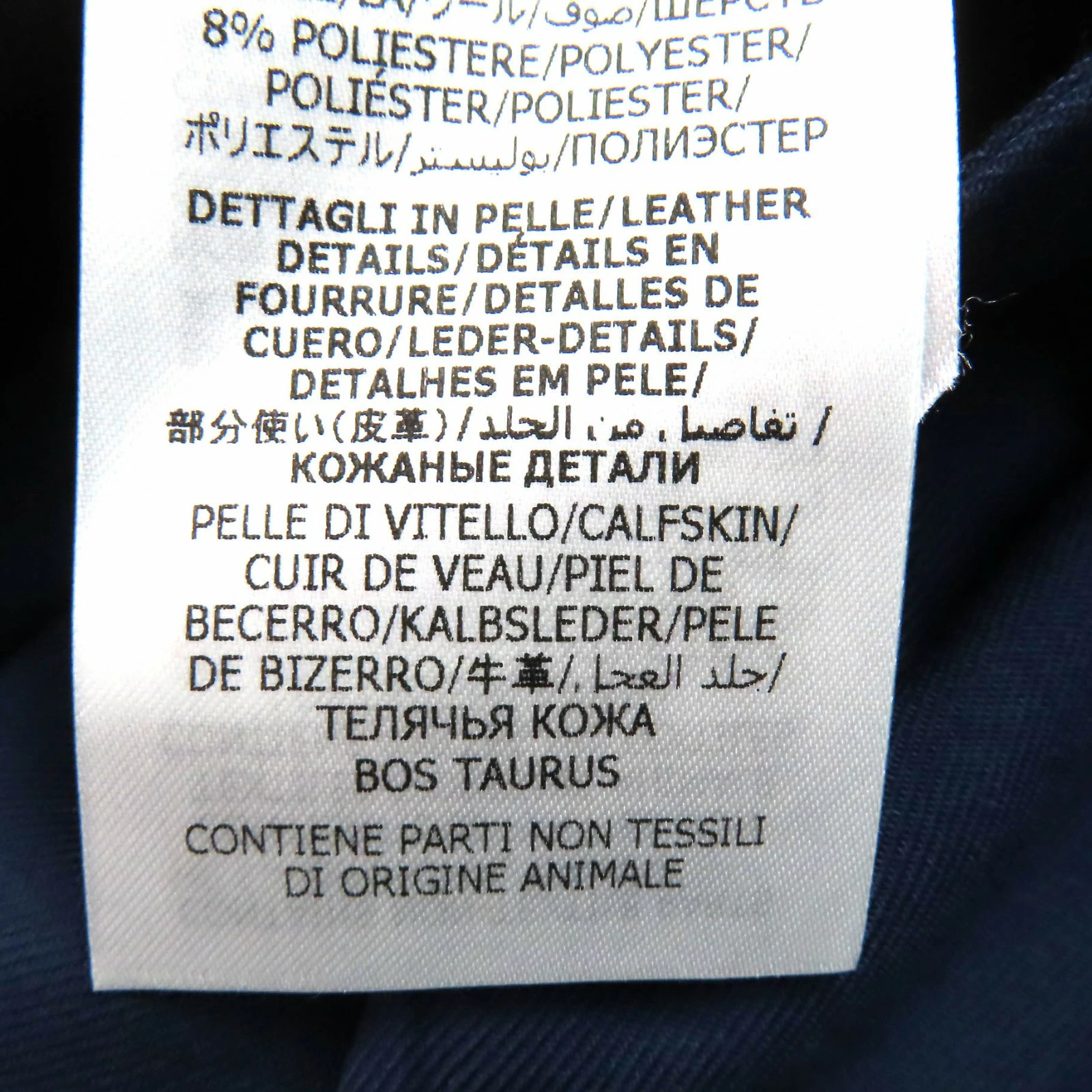 | 素材 (material) | 表地:ウール80% :モヘア16% 一部:アクリル46% :ウール46% :ポリエステル8% 皮革部分:牛革 | ||||||||||||||||